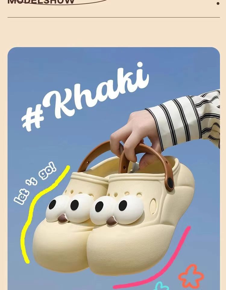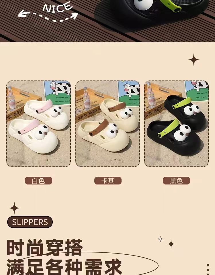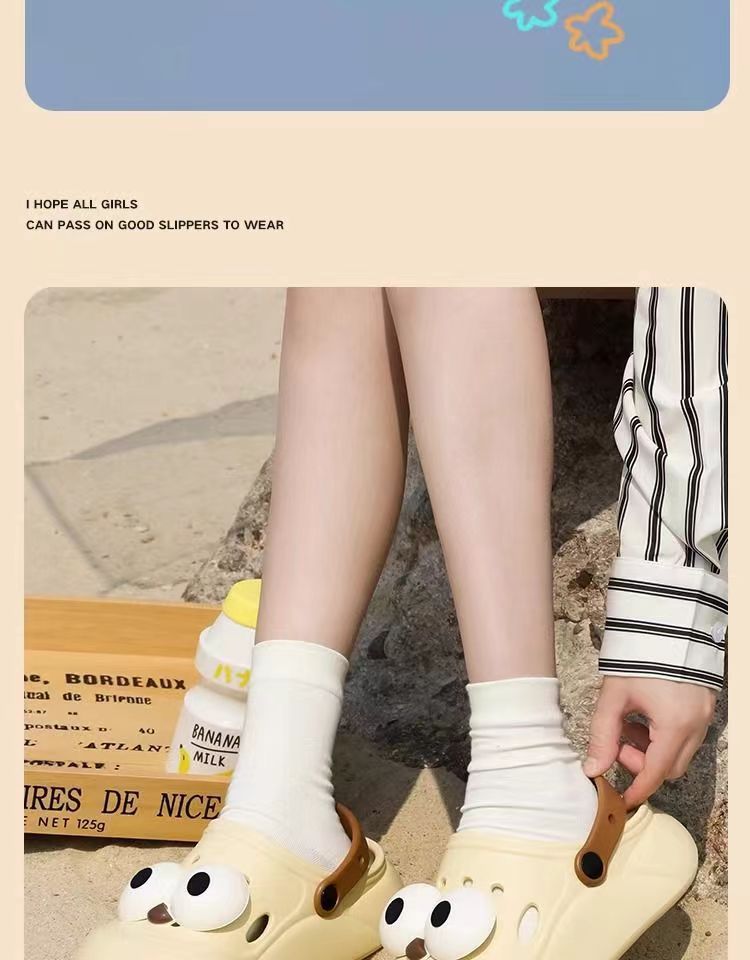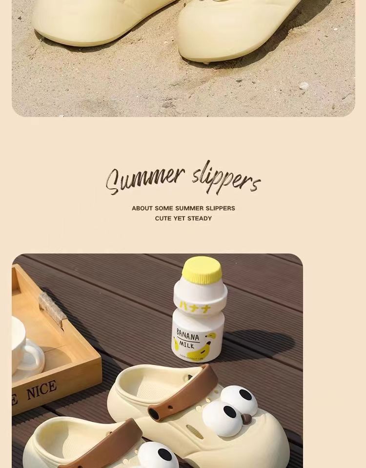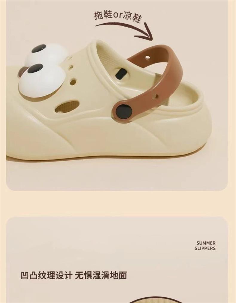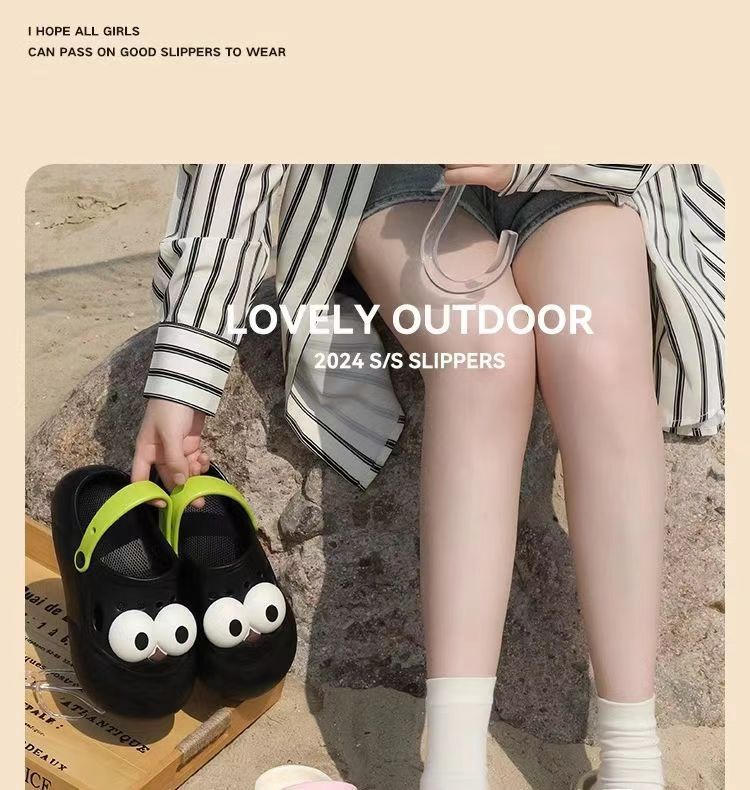 2024 여름 새로운 귀여운 만화 큰 눈 구멍 신발 여자의 외부 착용 두꺼운 유일한 미끄럼 방지 슬리퍼