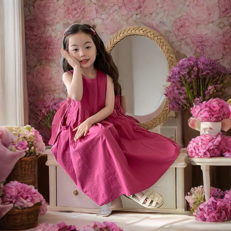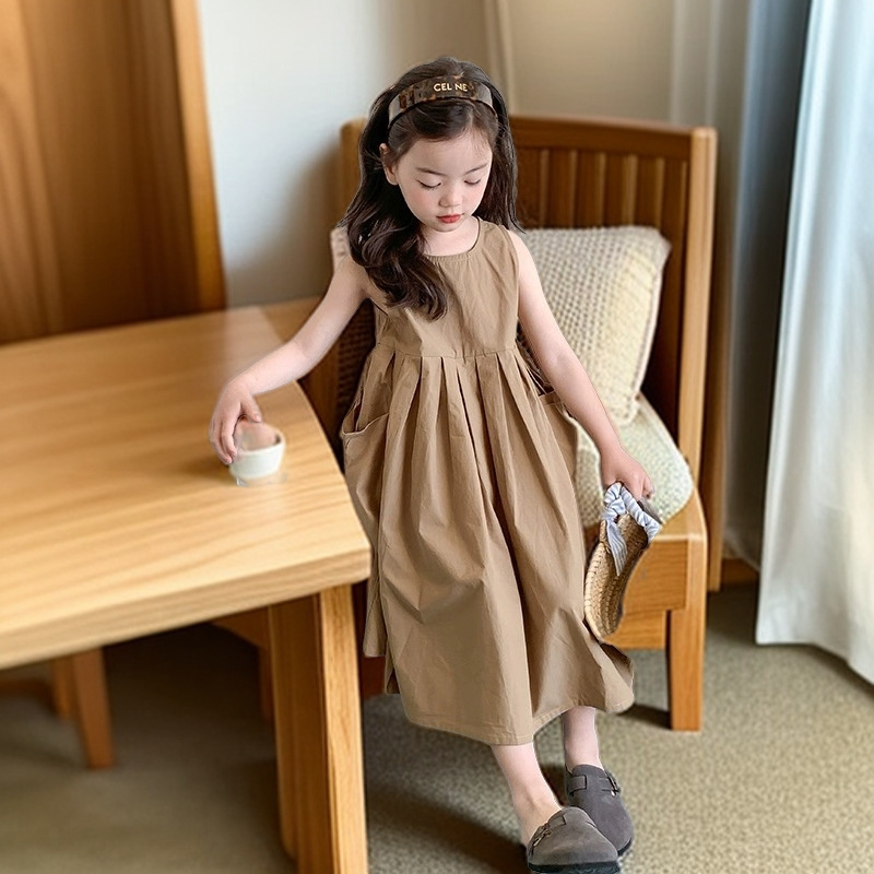고급 순면 소녀의 원피스 여름 스커트 한국 스타일 어린이 공주 스커트 큰 어린이 민소매 얇은 보라스토어 가기