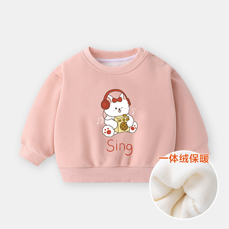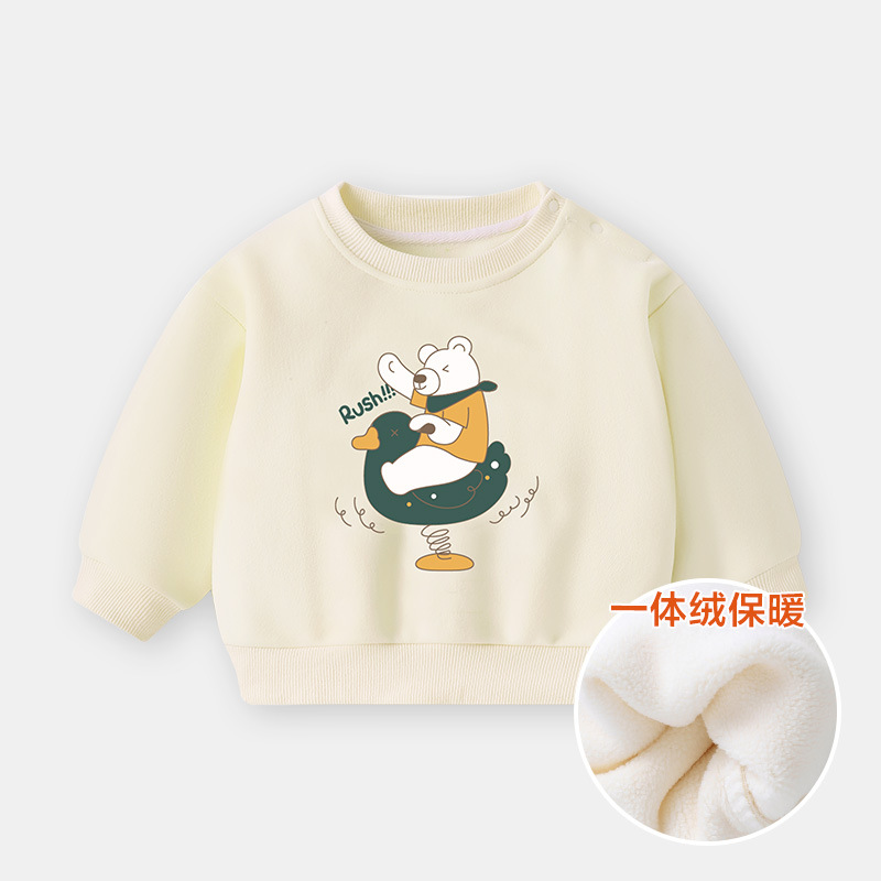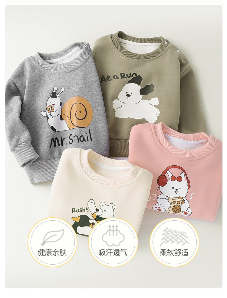 가을과 겨울 아기 옷 소년의 둥근 목 기모 스웨터 긴 소매 겨울 옷 가을과 겨울 어린이 여성 아기 따뜻한베이스 셔츠스토어 가기