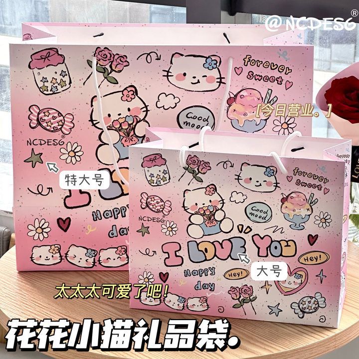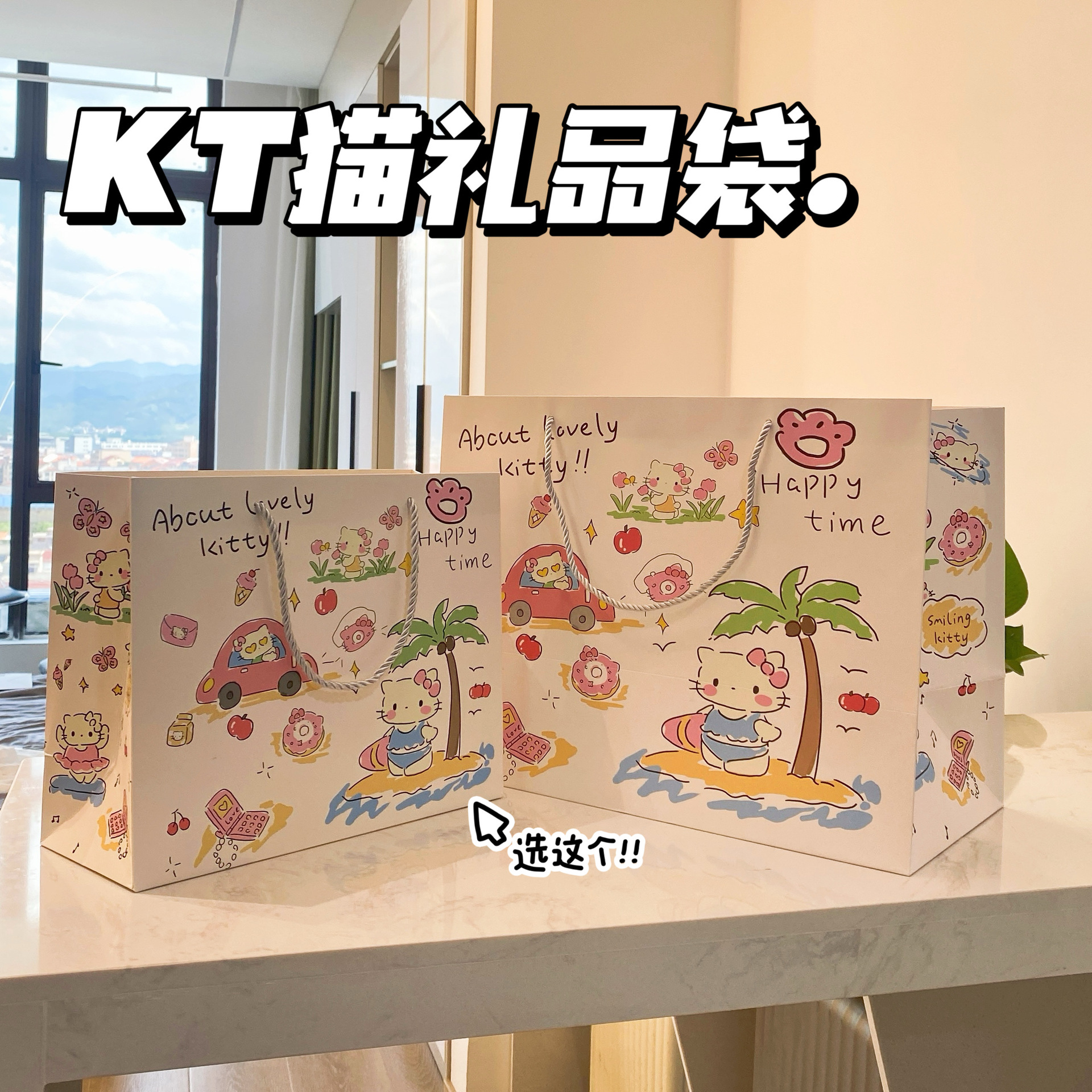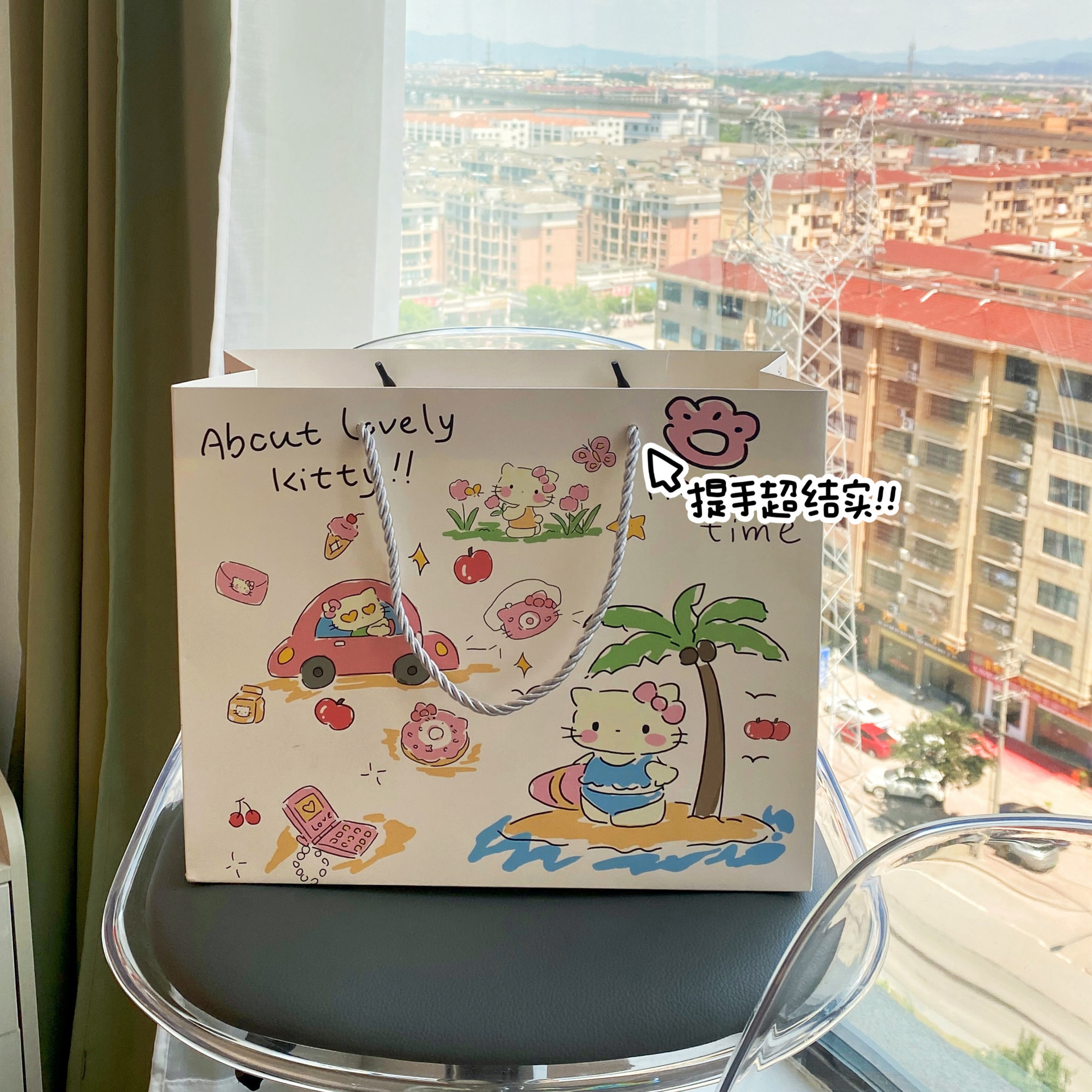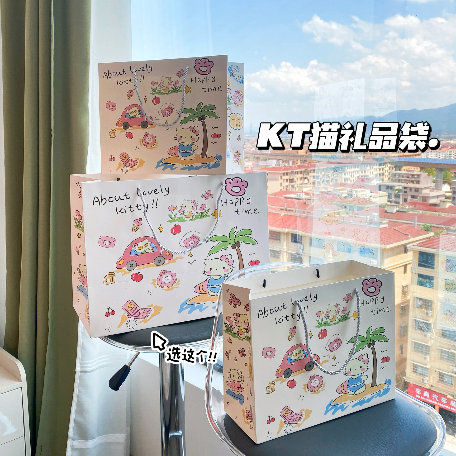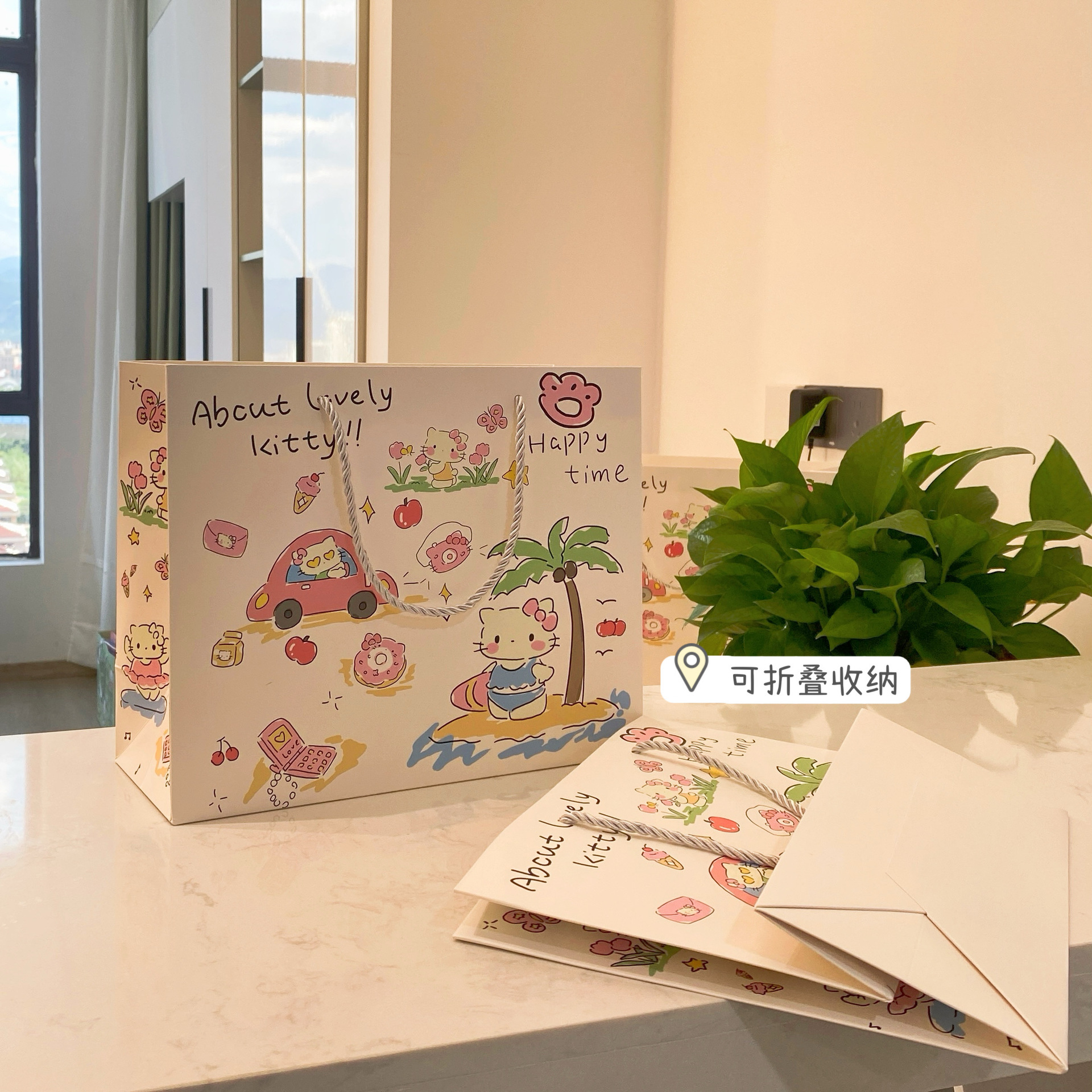 휴가 KT 낙서 선물 가방 인 스타일 귀여운 선물 포장 가방 친구 신발 상자 대형 휴대용