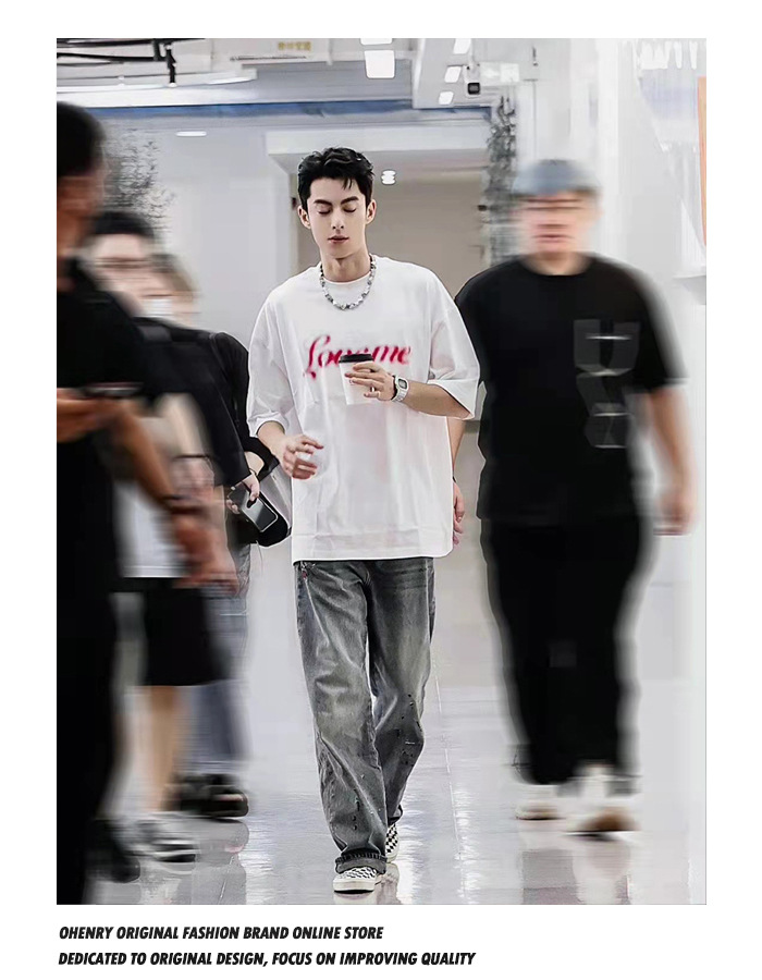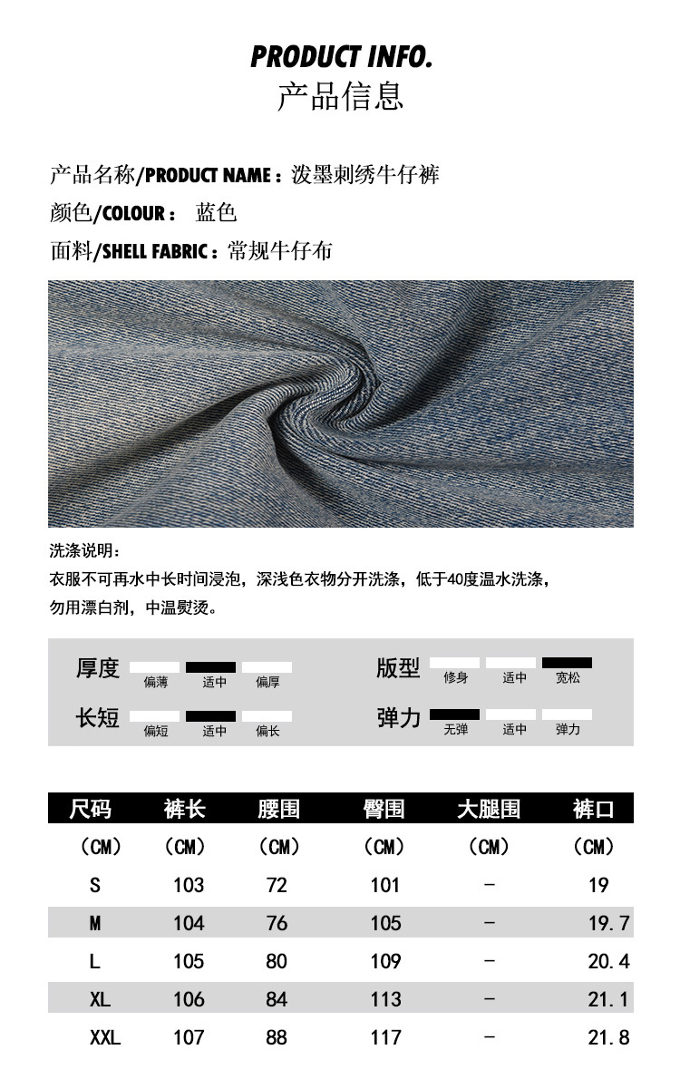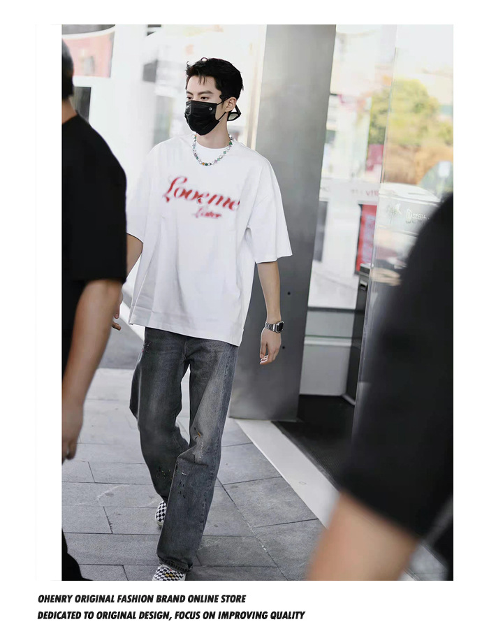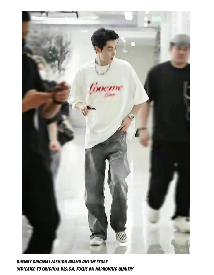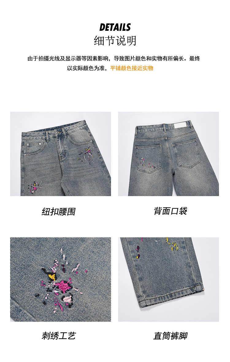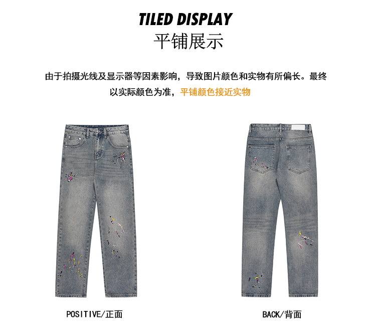 2024 남성 패션 바지 스플래시 잉크 자수 세척 느슨한 직선 청바지 미국 캐주얼 바지 남성 캐주얼스토어 가기
