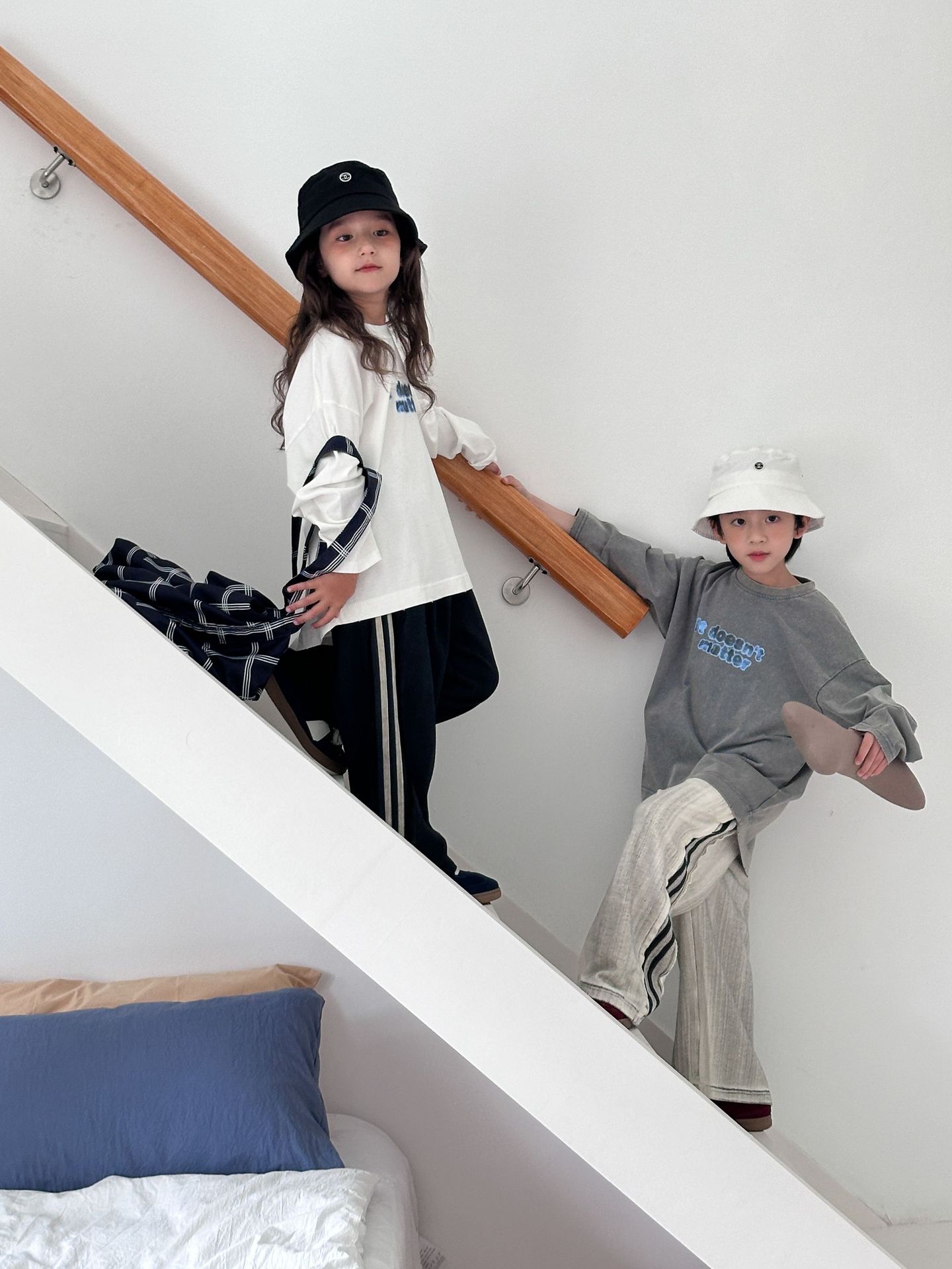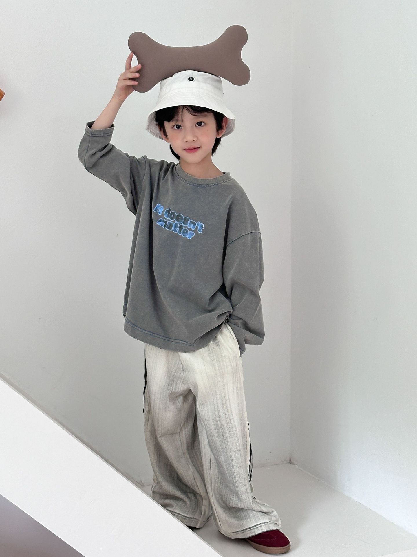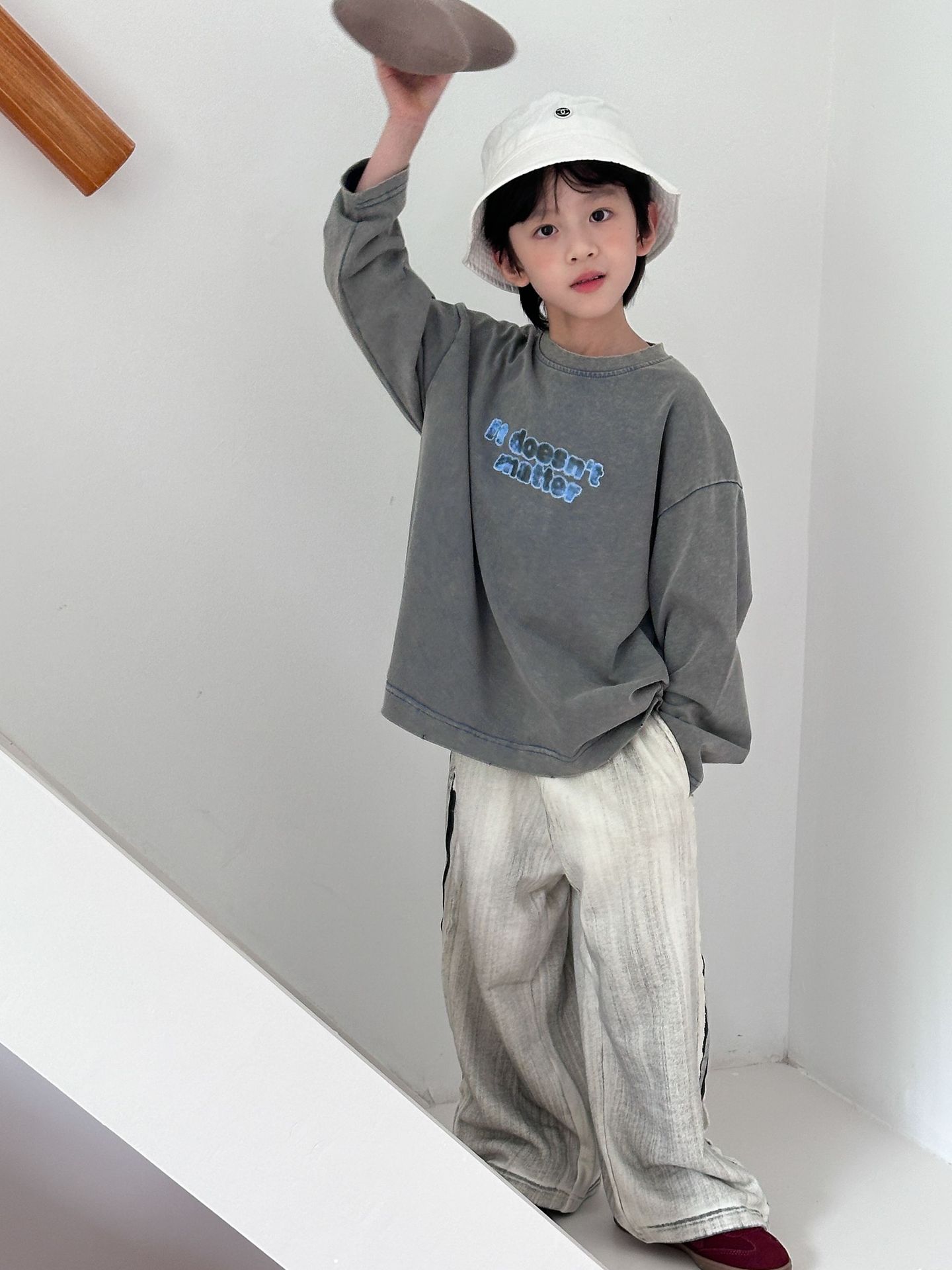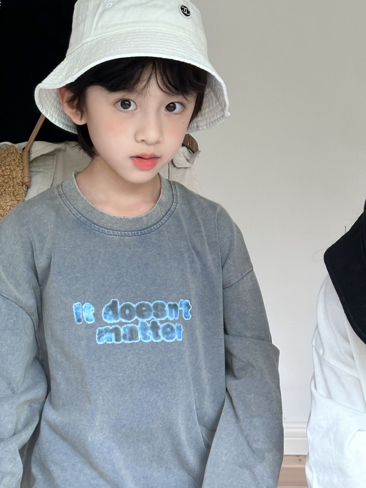 2025 봄 새로운 한국 스타일 어린이 오래된 편지 티셔츠 소년 다목적 라운드 넥 긴 소매 소녀 캐주얼 탑스토어 가기