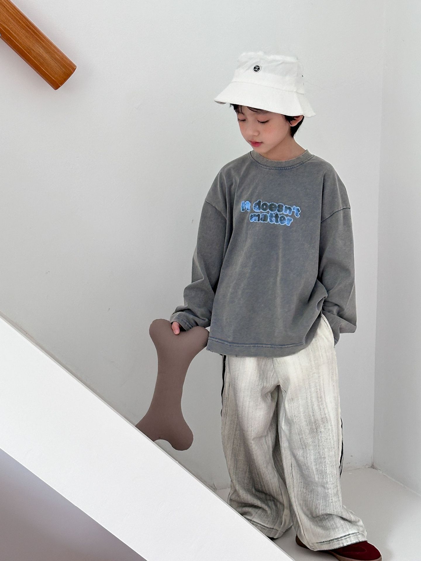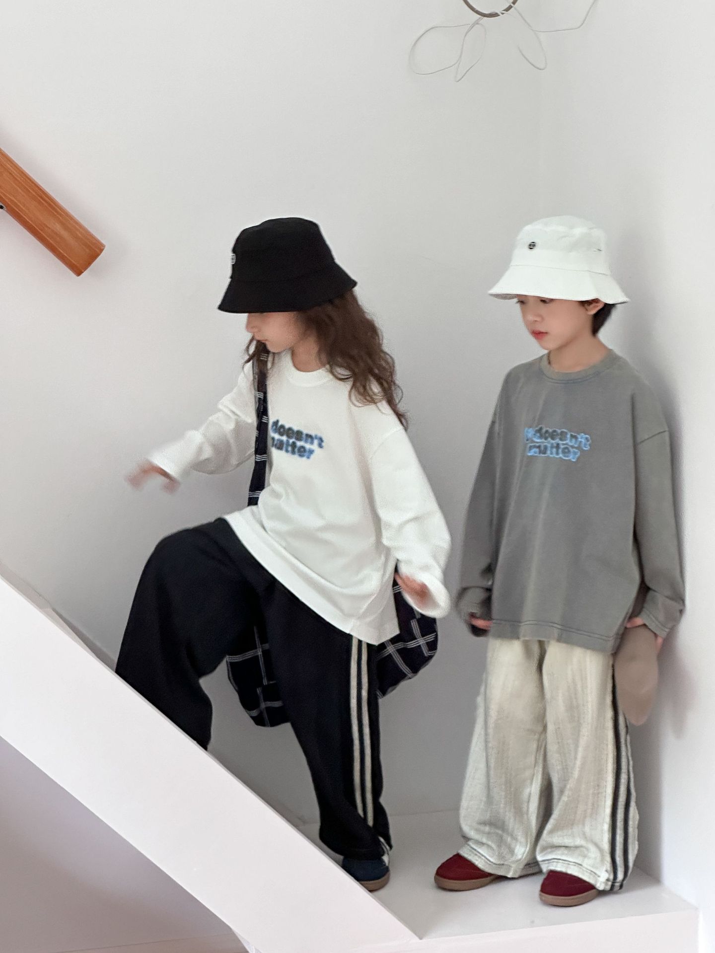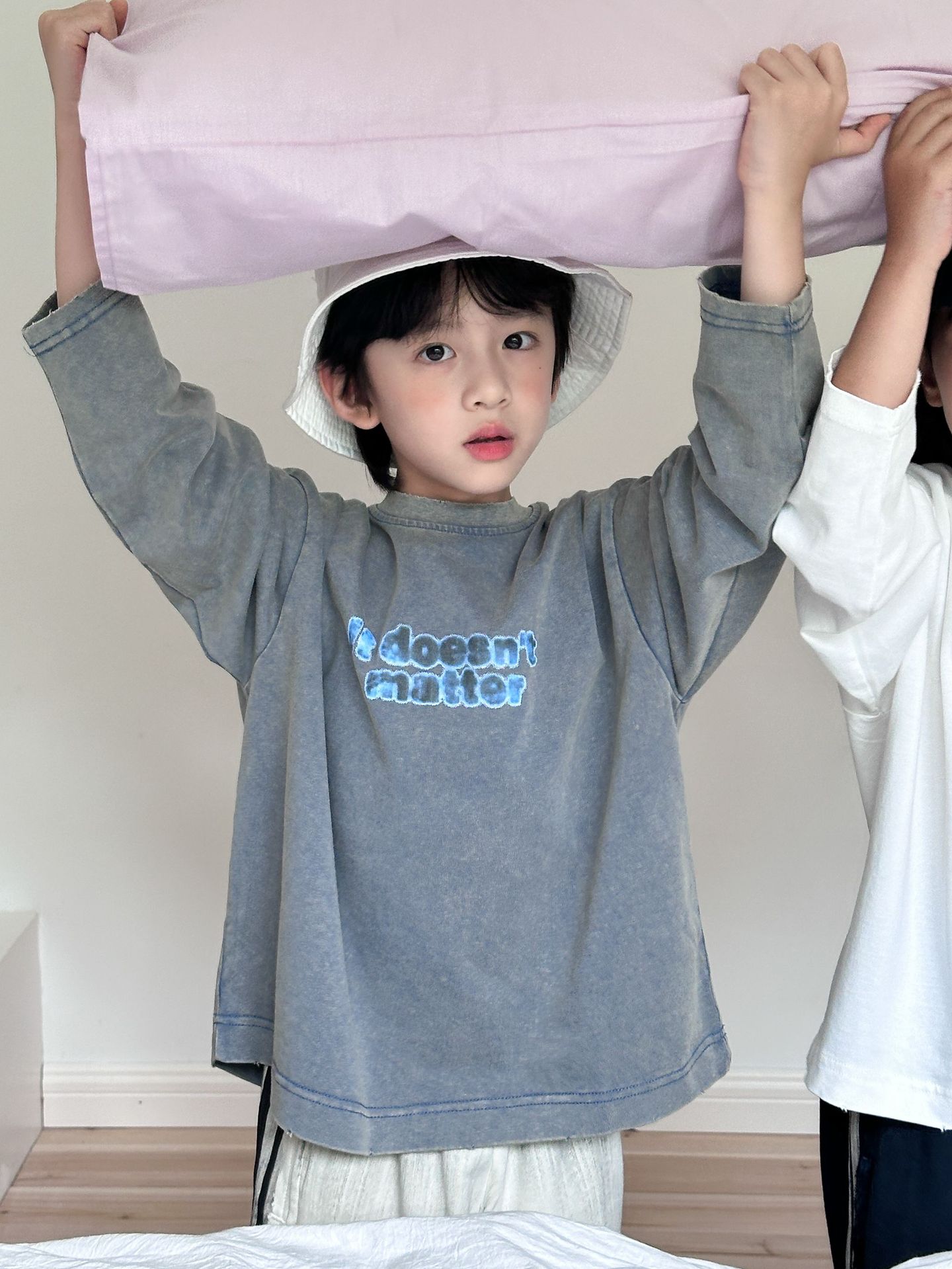 2025 봄 새로운 한국 스타일 어린이 오래된 편지 티셔츠 소년 다목적 라운드 넥 긴 소매 소녀 캐주얼 탑