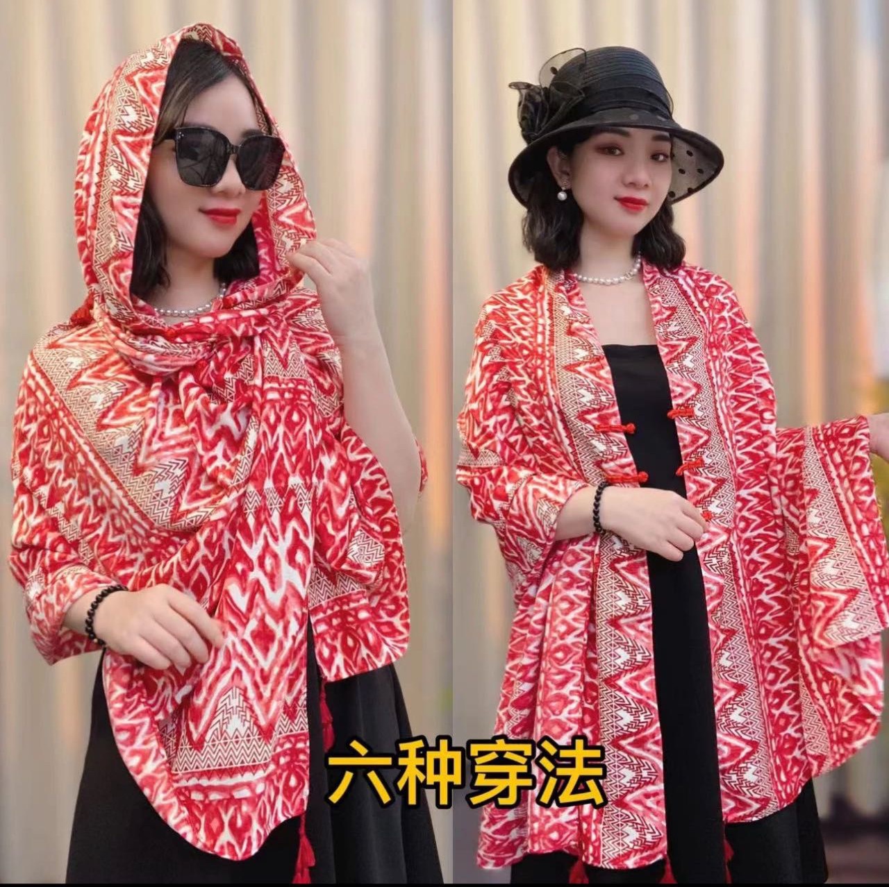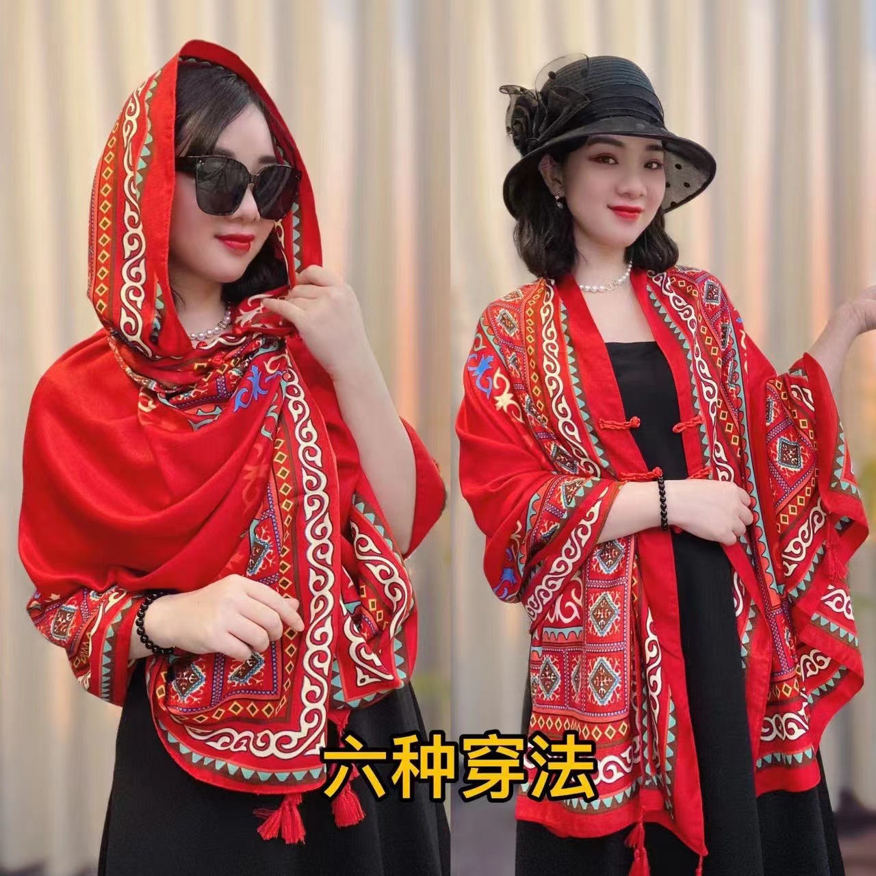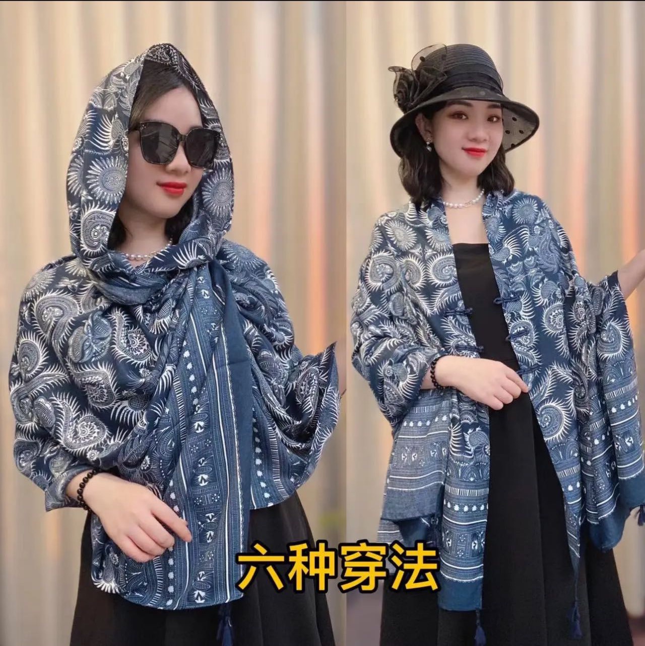 봄과 여름 대초원 여행 사진 민족 스타일면 및 린넨 차양 긴 스카프 여성의 선 스크린 목도리 이중 목적 실크 스카프 거즈스토어 가기