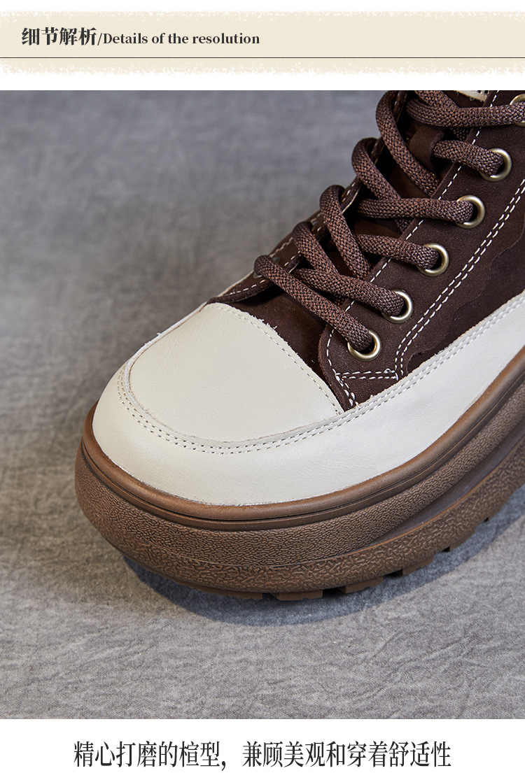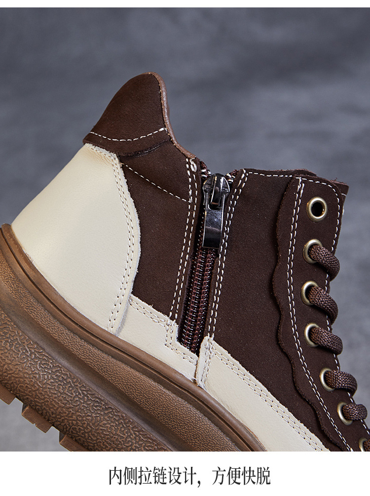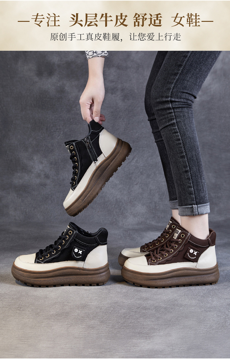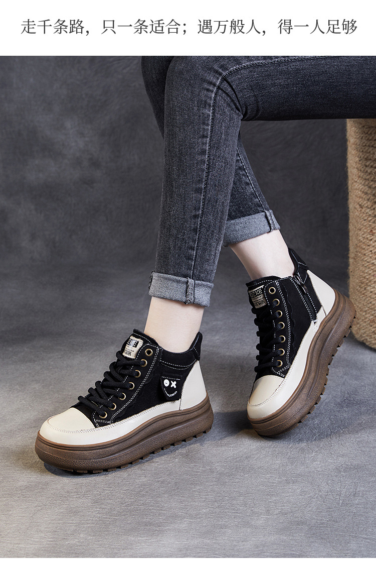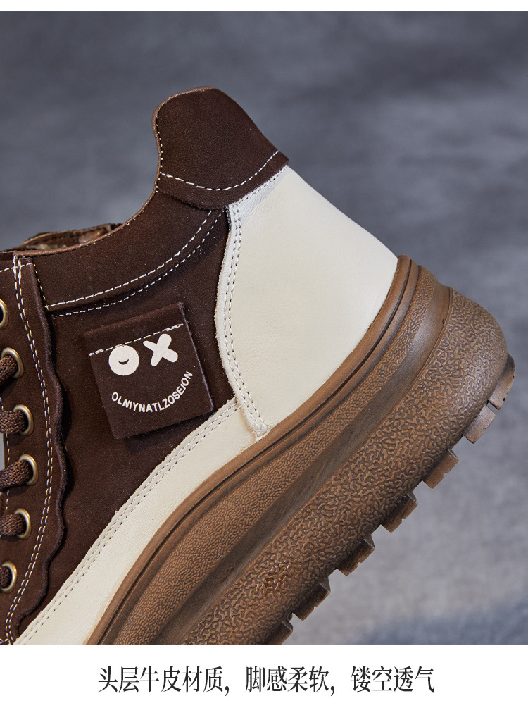 정품 가죽 여성 신발 탑 레이어 Cowhide 2024 새로운 스타일 신발 가을 및 겨울 두꺼운 단독 캐주얼 레이스 업 하이 탑 가죽 신발 마틴 발목 부츠