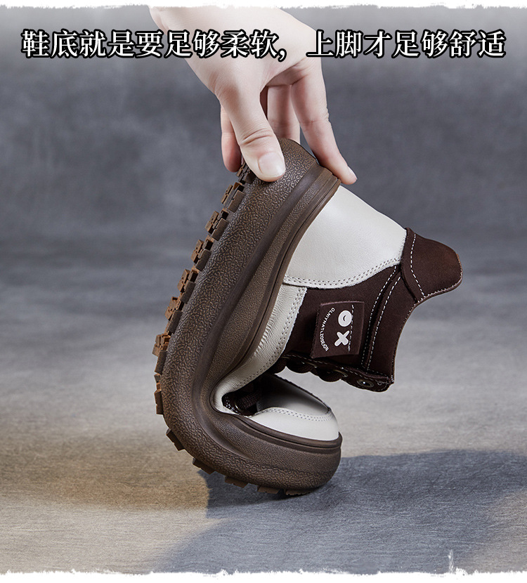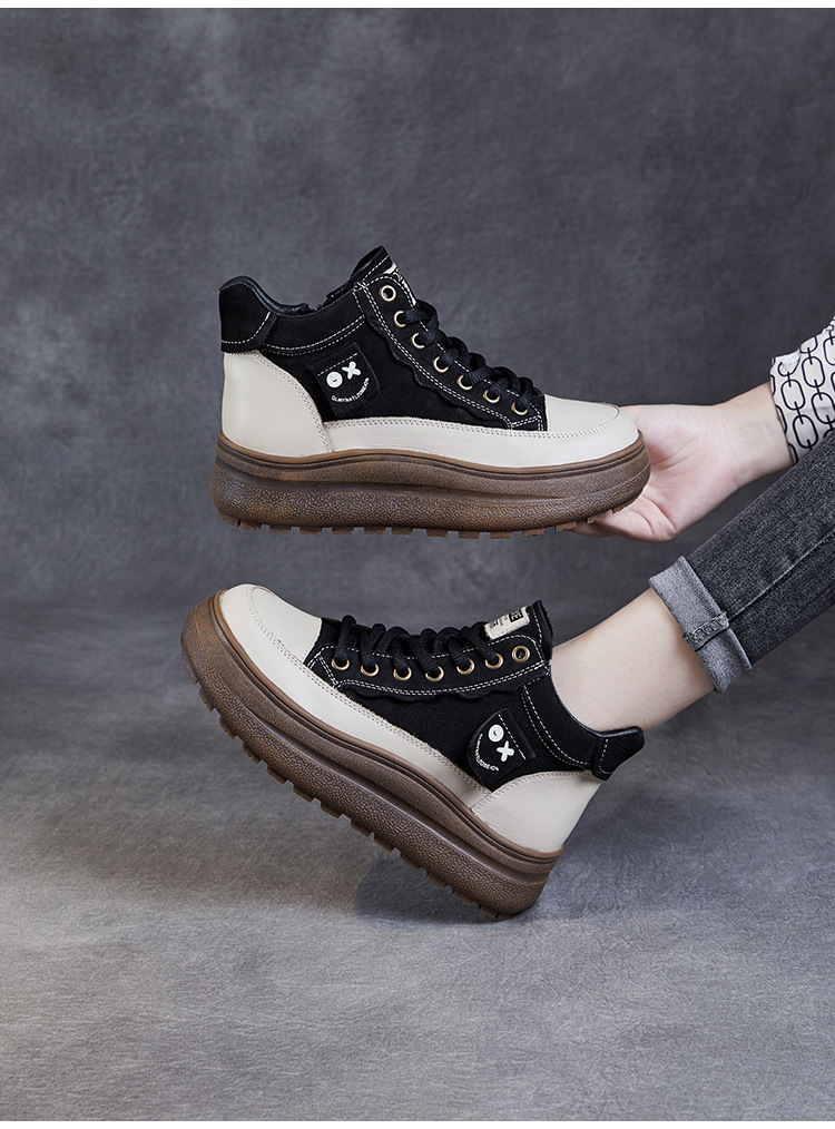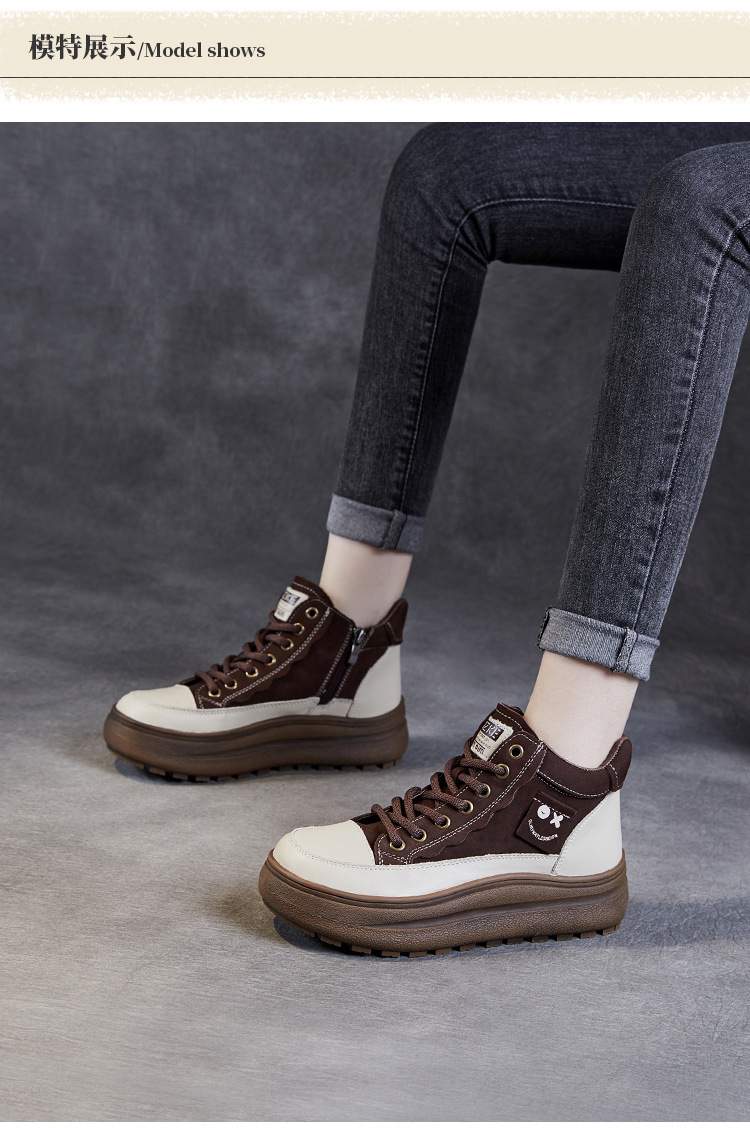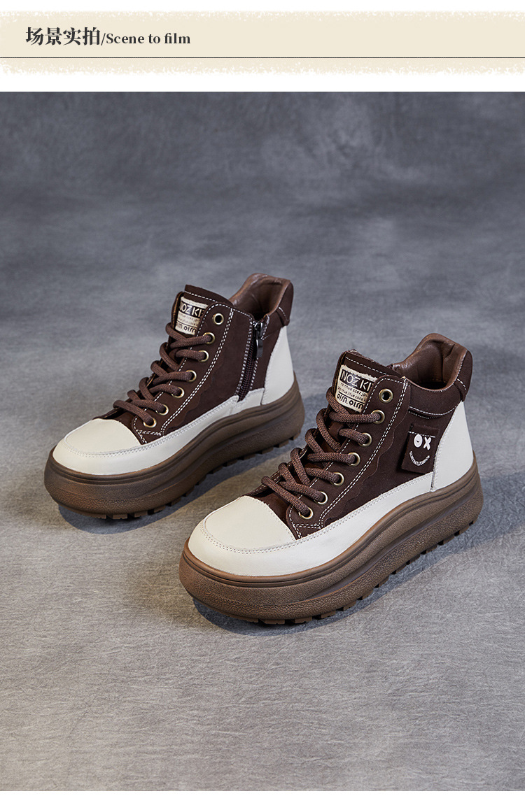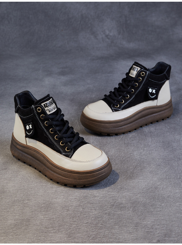 정품 가죽 여성 신발 탑 레이어 Cowhide 2024 새로운 스타일 신발 가을 및 겨울 두꺼운 단독 캐주얼 레이스 업 하이 탑 가죽 신발 마틴 발목 부츠