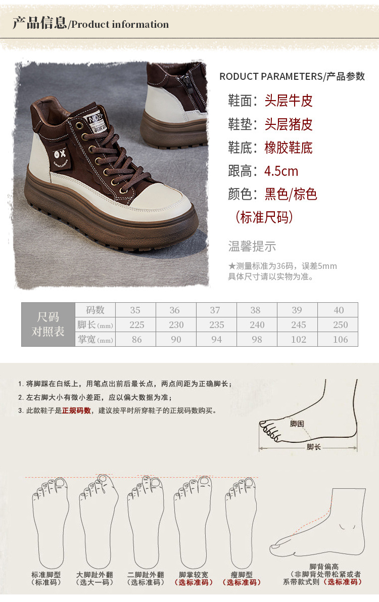 정품 가죽 여성 신발 탑 레이어 Cowhide 2024 새로운 스타일 신발 가을 및 겨울 두꺼운 단독 캐주얼 레이스 업 하이 탑 가죽 신발 마틴 발목 부츠스토어 가기