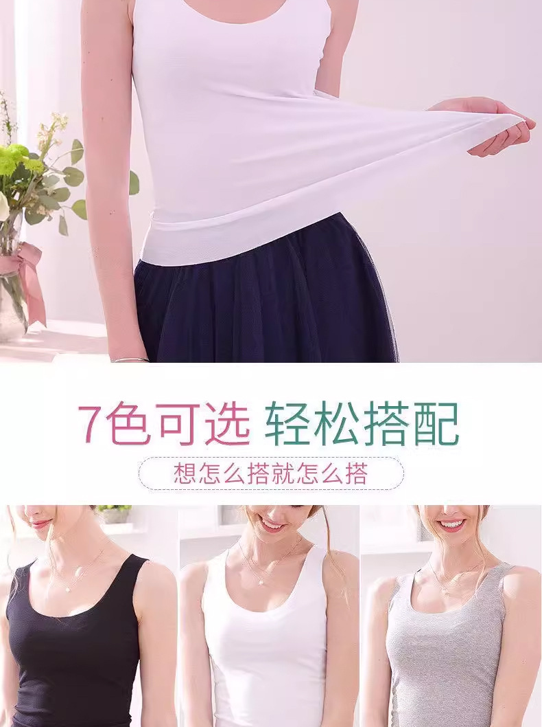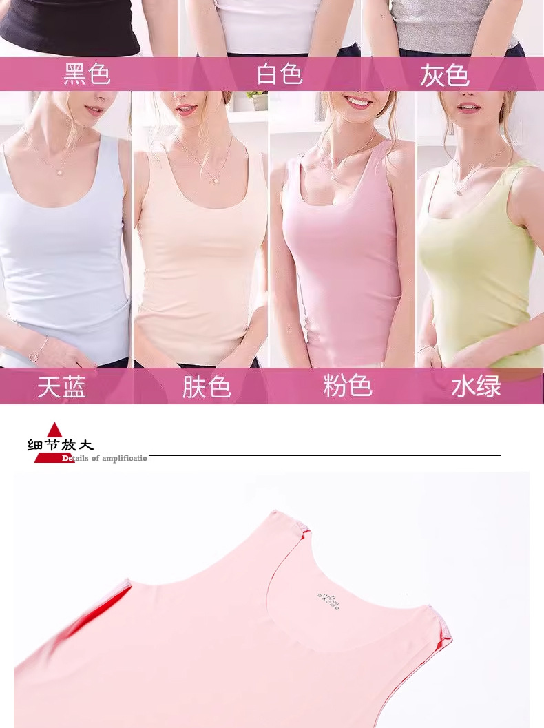 국경 간 새로운 여성 원활한 아이스 실크 솔리드 컬러 조끼 여성 내부 패션베이스 셔츠 슬링 여름 민소매 탑
