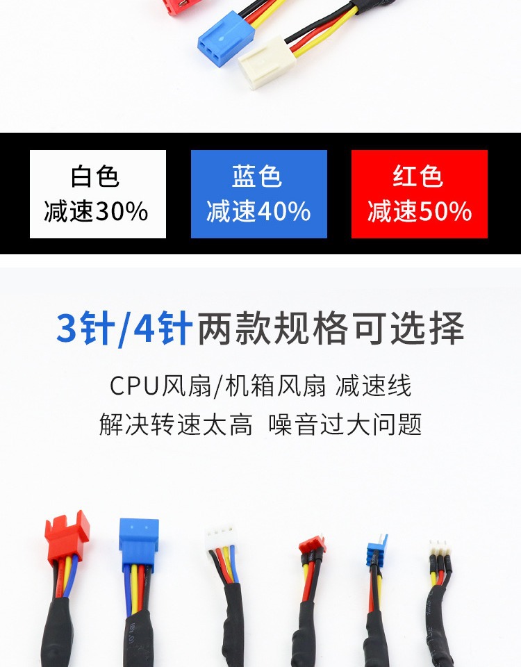 컴퓨터 섀시 팬 3 핀 4 핀 2.5p 그래픽 카드 팬 속도 감소 라인 속도를 줄이기 위해 속도 소음 4p 속도 감소 라인