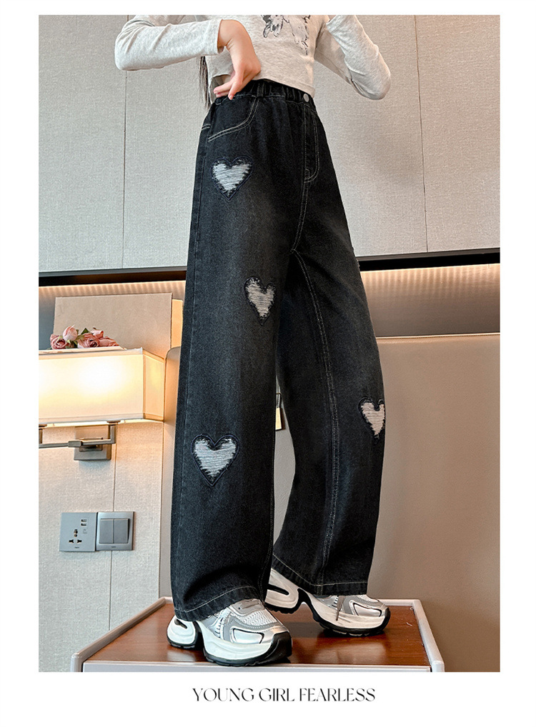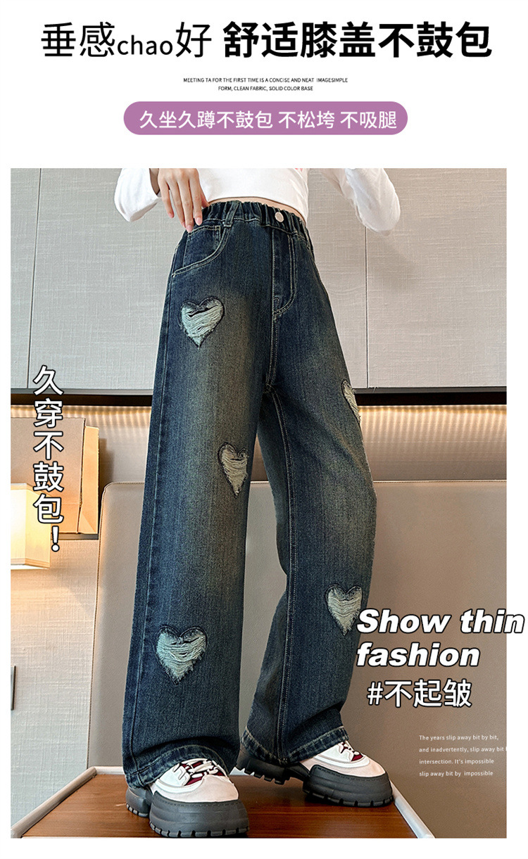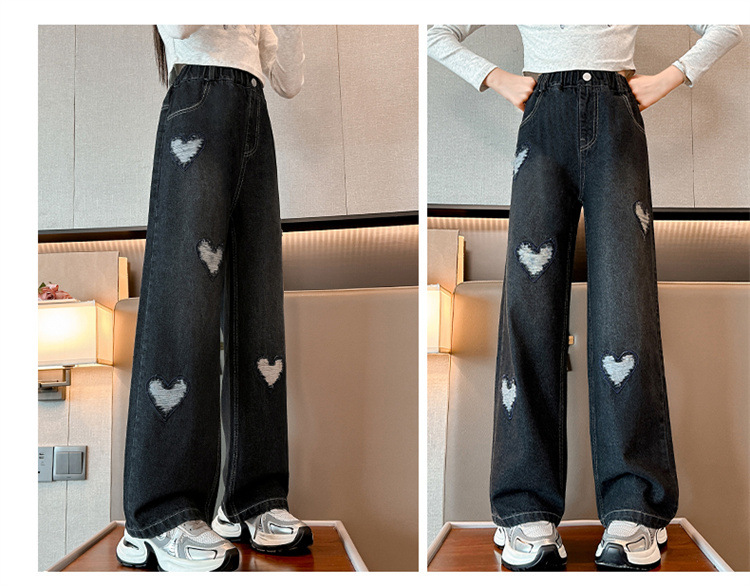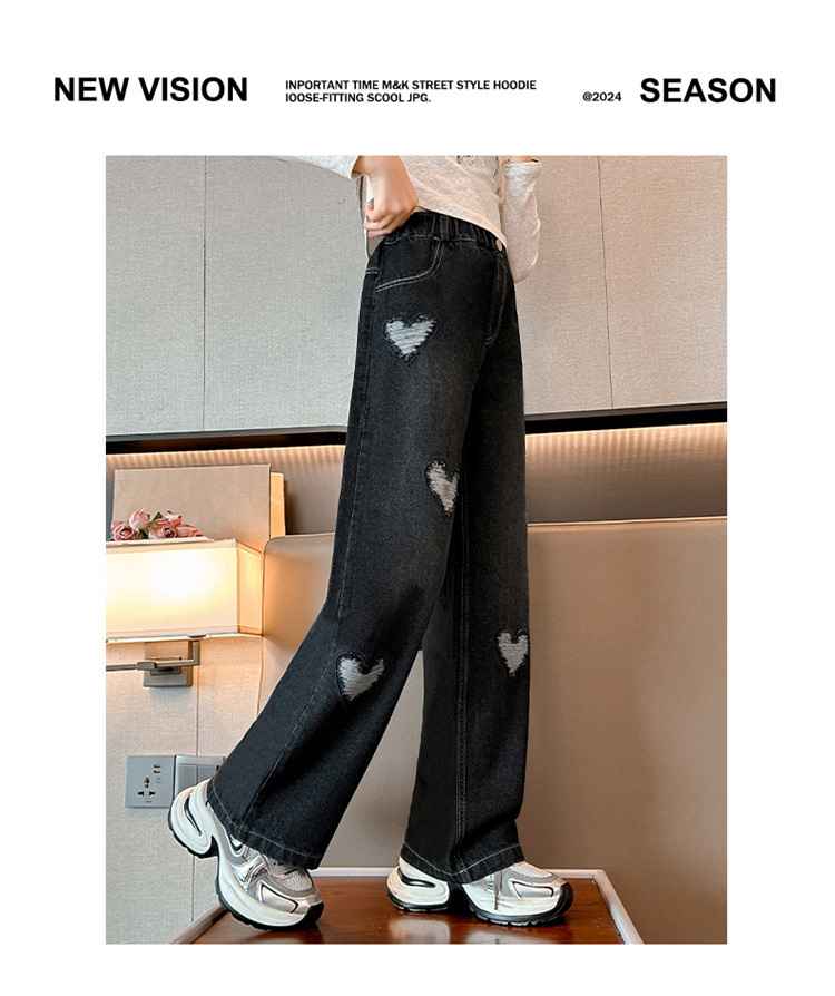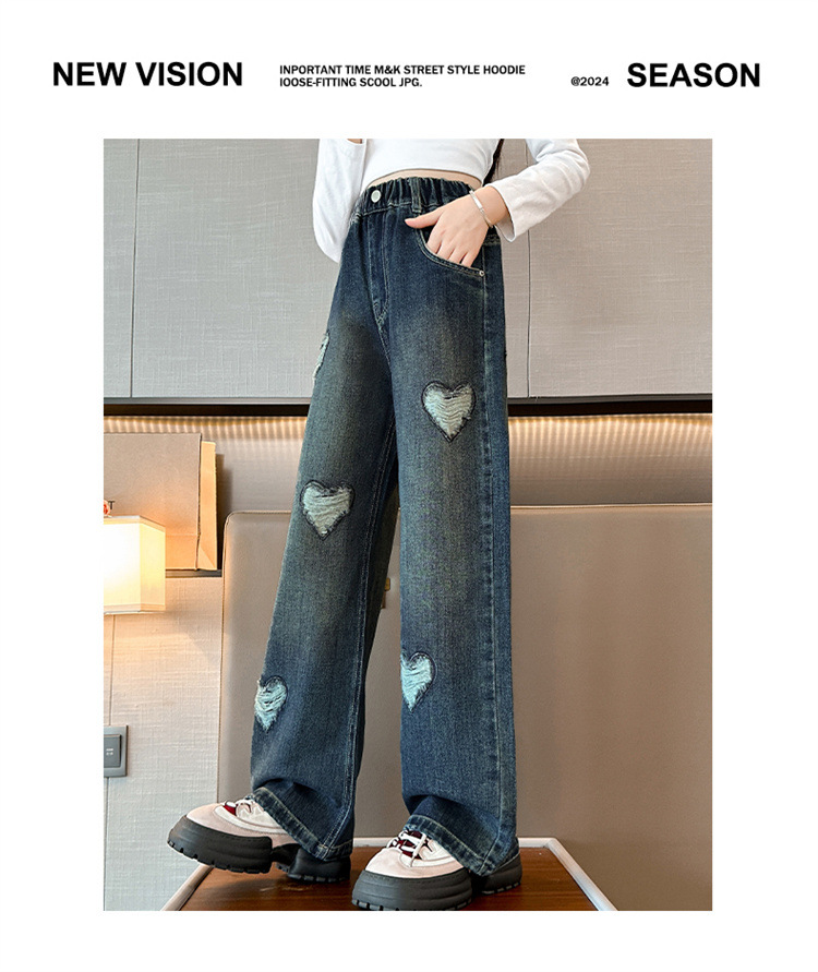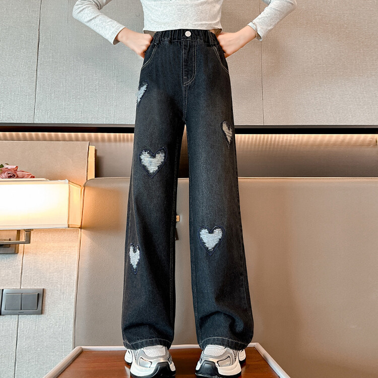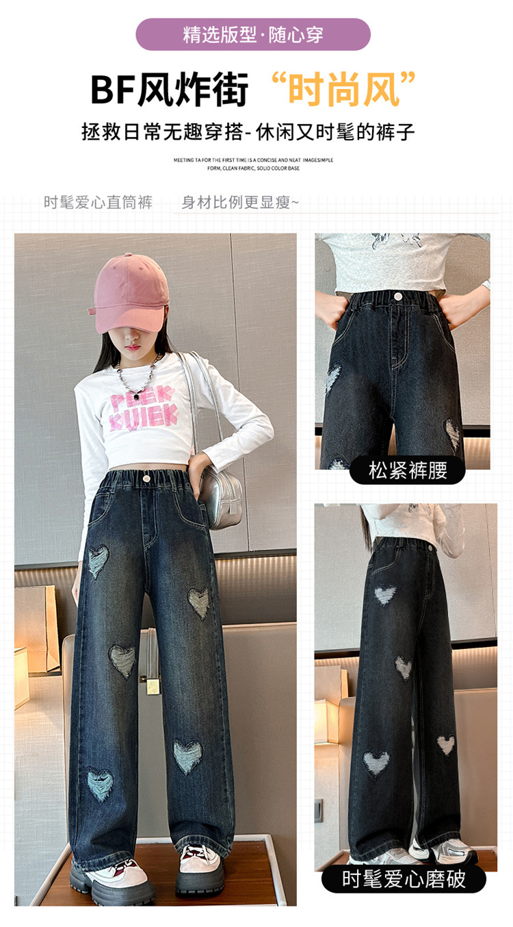 소녀 바지 봄과 가을 외부 착용 2024 새로운 봄 중대형 어린이 캐주얼 스트레이트 와이드 다리 봄 청바지스토어 가기