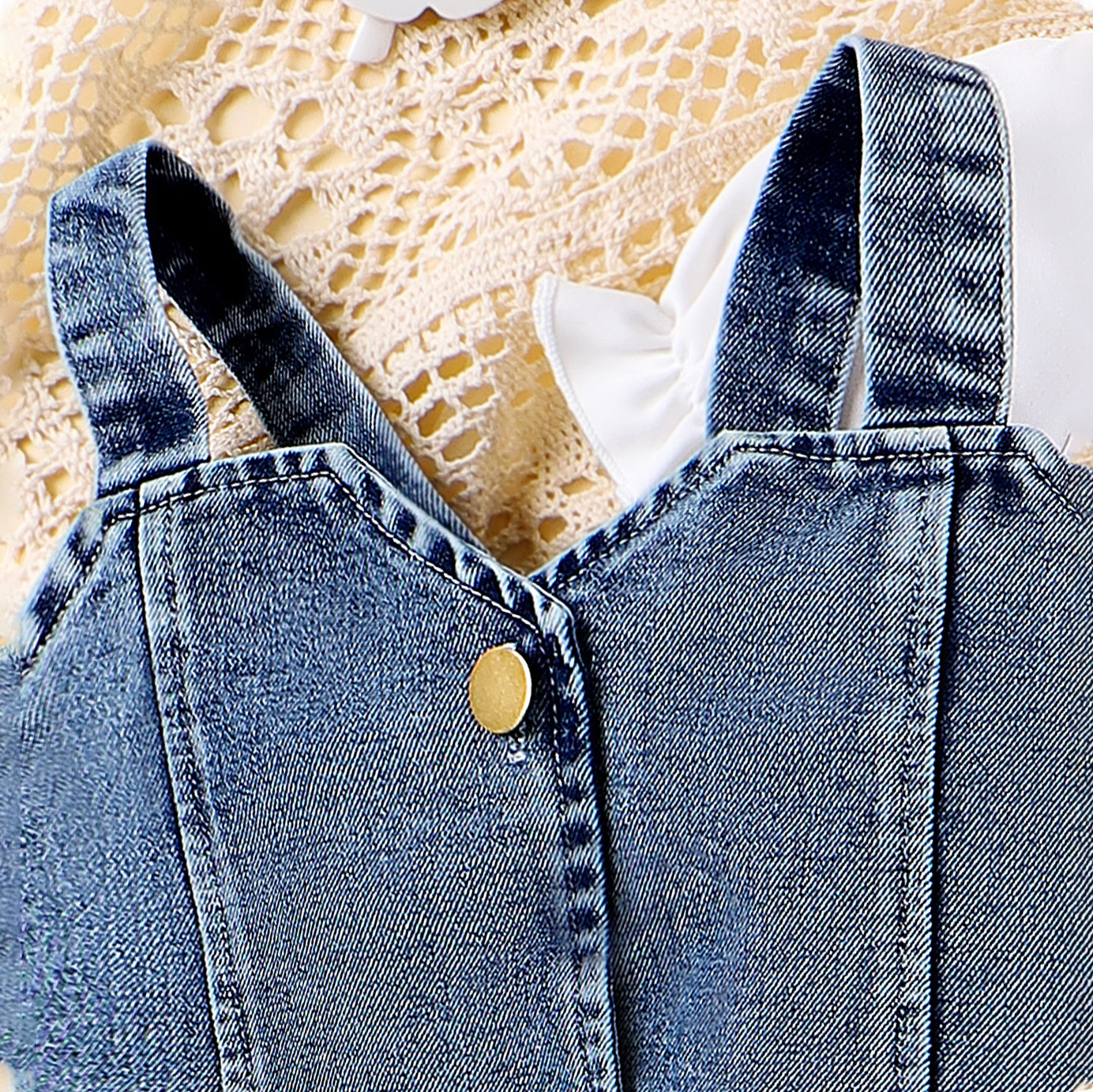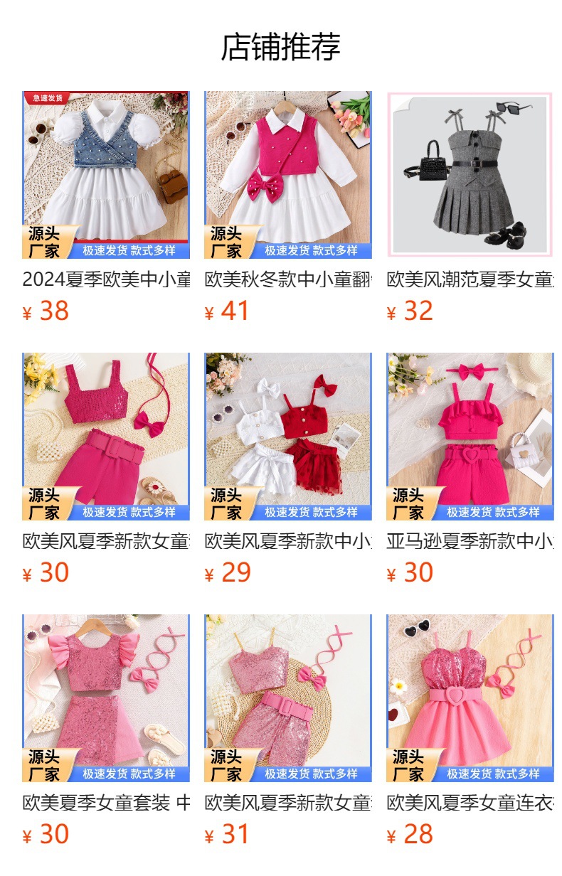 유럽과 미국의 패션 여름 어린이 스택 카미 솔 데님 조끼 반팔 셔츠 원피스 소녀 투피스 세트스토어 가기