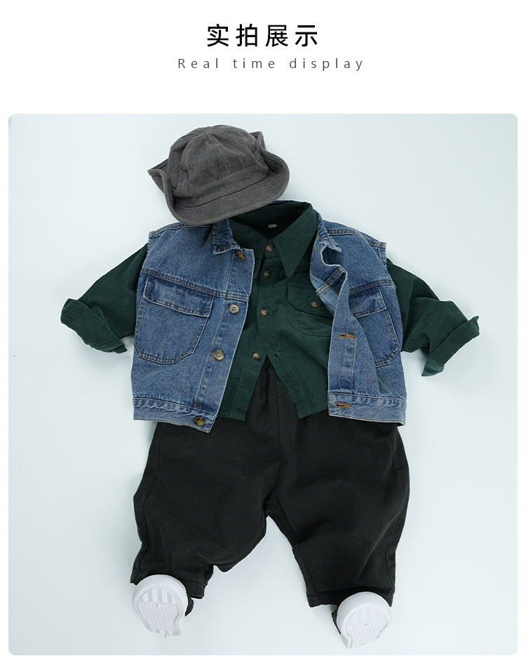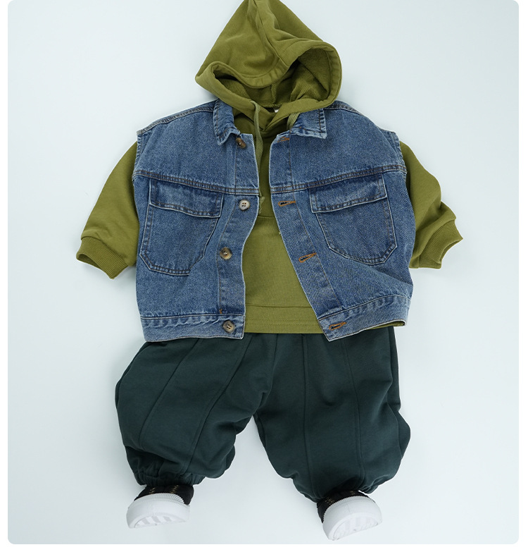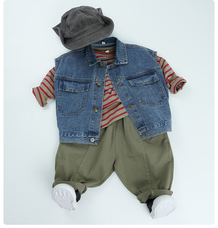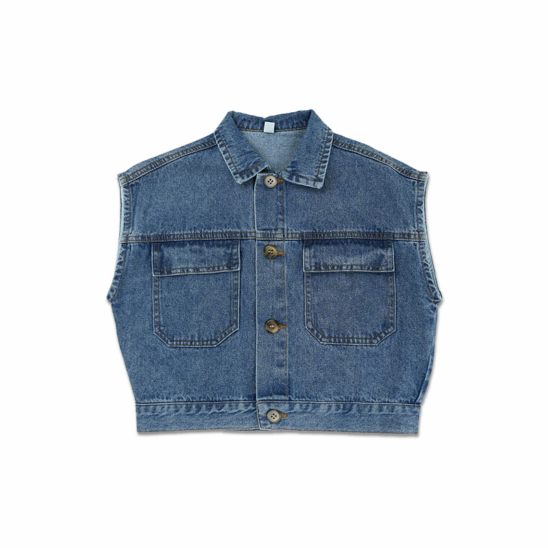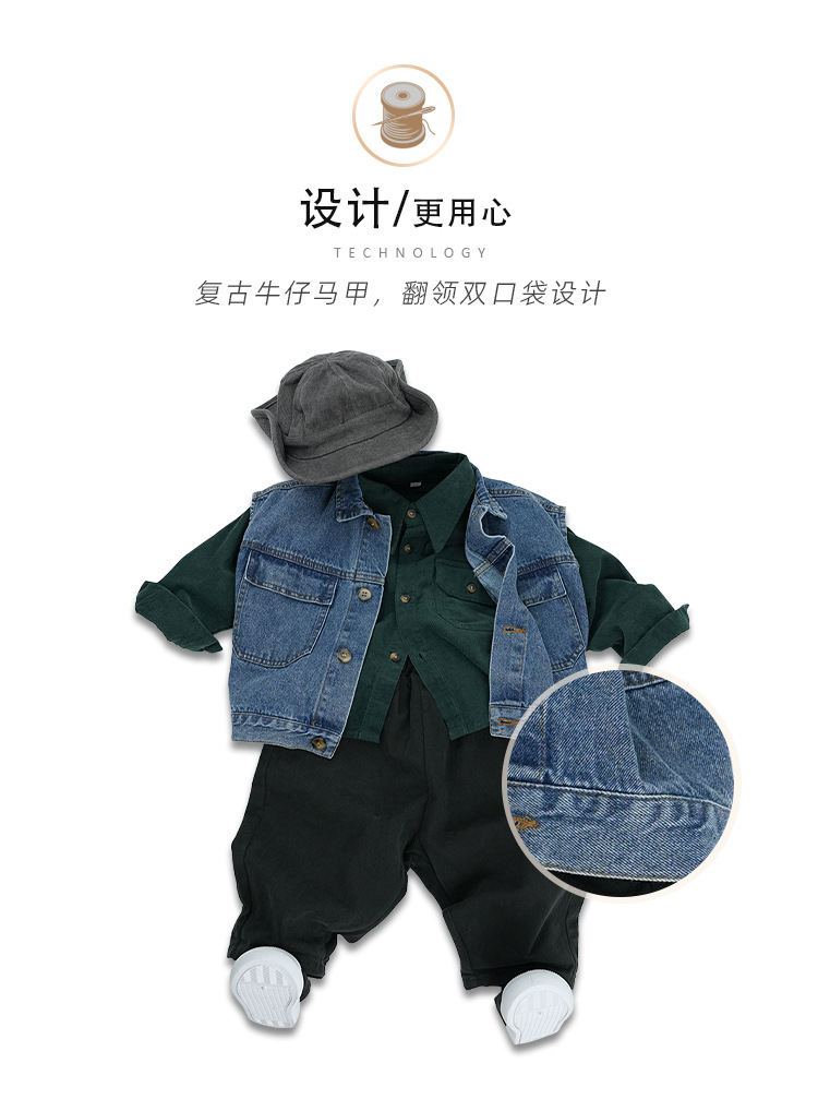 남아 조끼 봄 가을 아동 민소매 2025 신상 폴로 칼라 라펠 중소형 아동 데님 조끼 멋진 아동복스토어 가기
