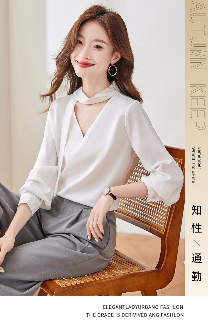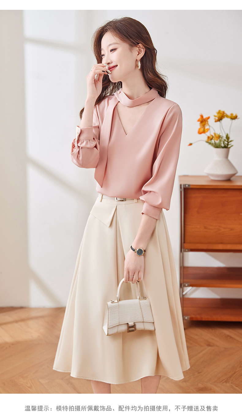 여신 스타일 우아한 V 넥 핑크 셔츠 가을 새로운 느슨한 슬리밍 OL 달콤한 한국 쉬폰 긴 소매 셔츠스토어 가기