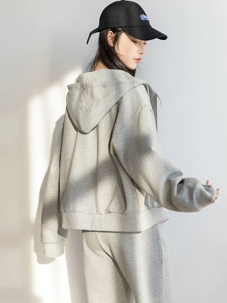 남성과 여성을위한 카디건 후디 캐주얼 스포츠 세트 후드 자켓 2024 봄과 가을 느슨한 러닝 투피스 세트