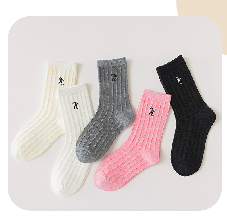 소녀 양말 달콤한 활 중간 길이 양말 슈퍼 쿨 어린이 양말 봄 가을 한국 스타일 소녀 면 양말 중간 크기 어린이 양말