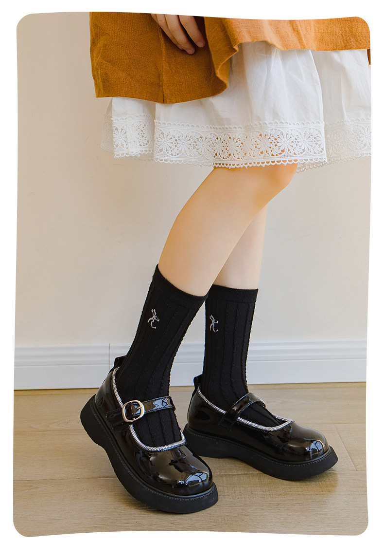 minliu女童袜子批发春秋复古纯色中筒袜珍珠蝴蝶结儿童袜秋冬棉袜
