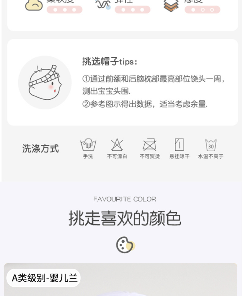 • 권장 0-6개월 머리 둘레 34--43cm