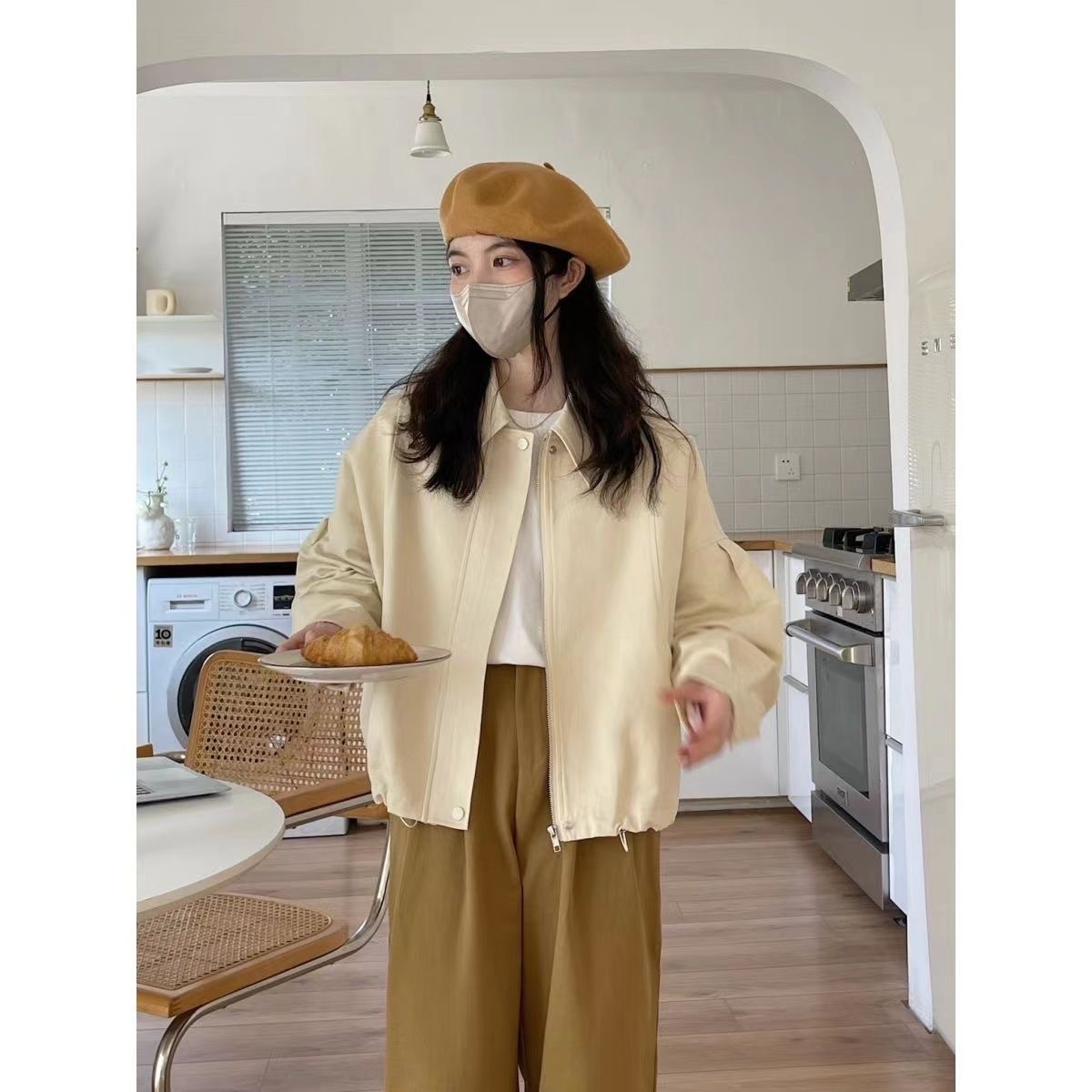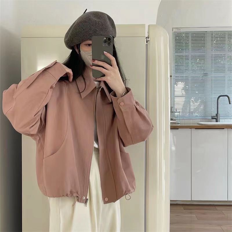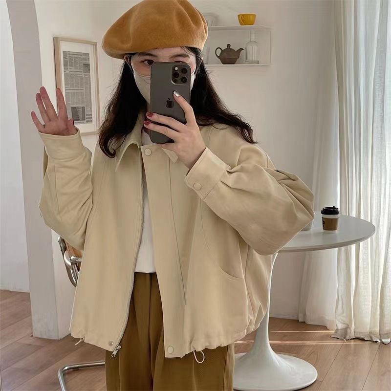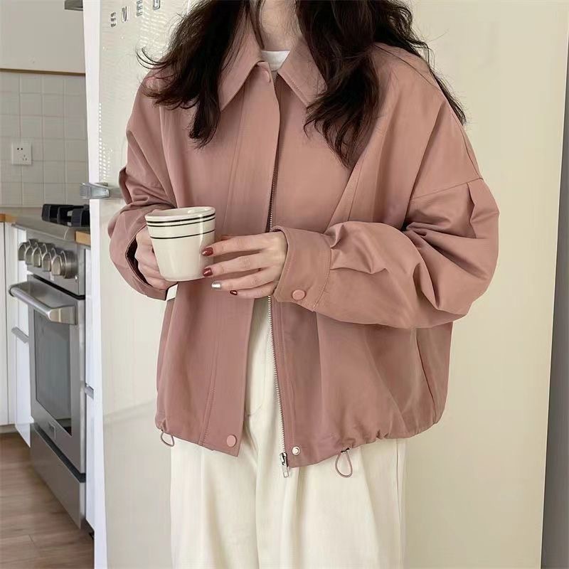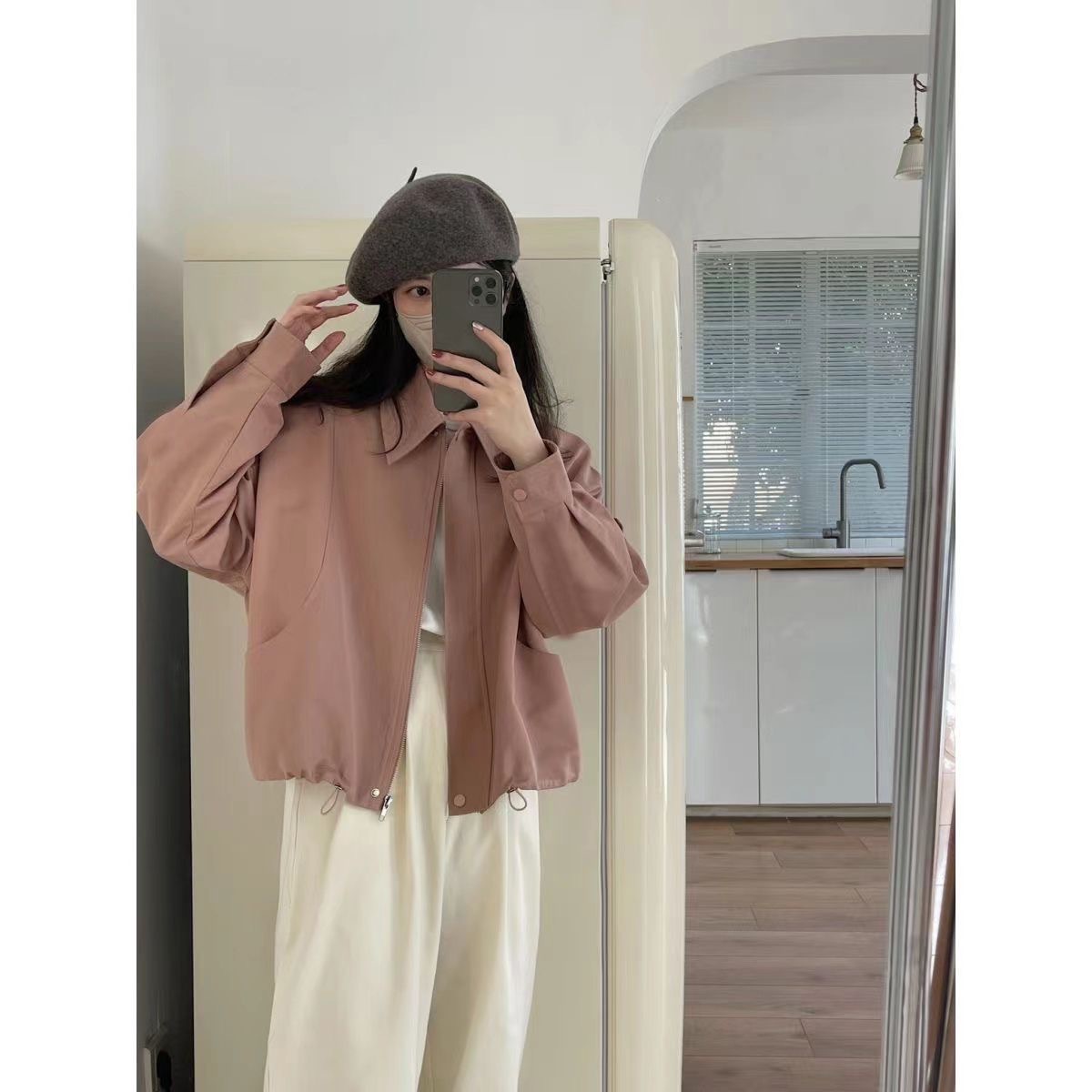 한국 새로운 봄과 가을 동대문 캐주얼 단순 드로우 레트로 랩 느슨한 얇은 재킷 솔리드 컬러 코트스토어 가기