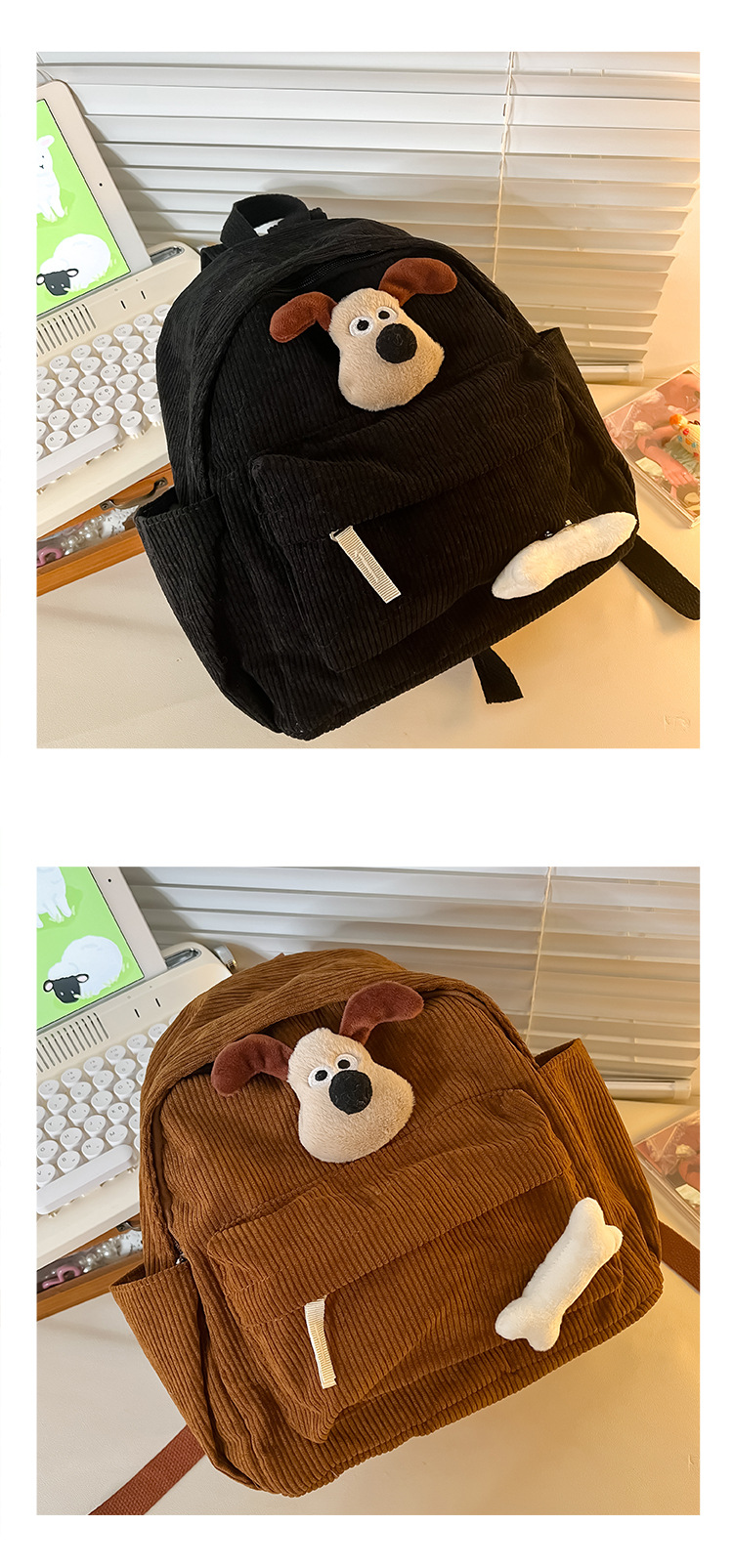 만화 어린이 배낭 일본 귀여운 강아지 유치원 유치원 다목적 복고풍 코듀로이 학교 가방