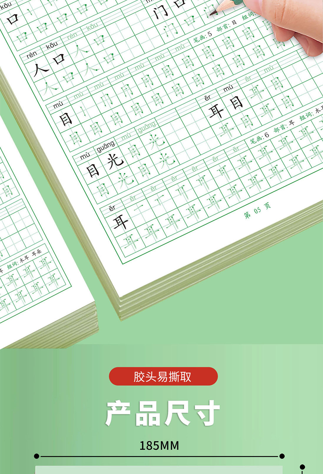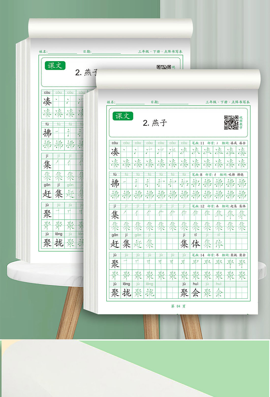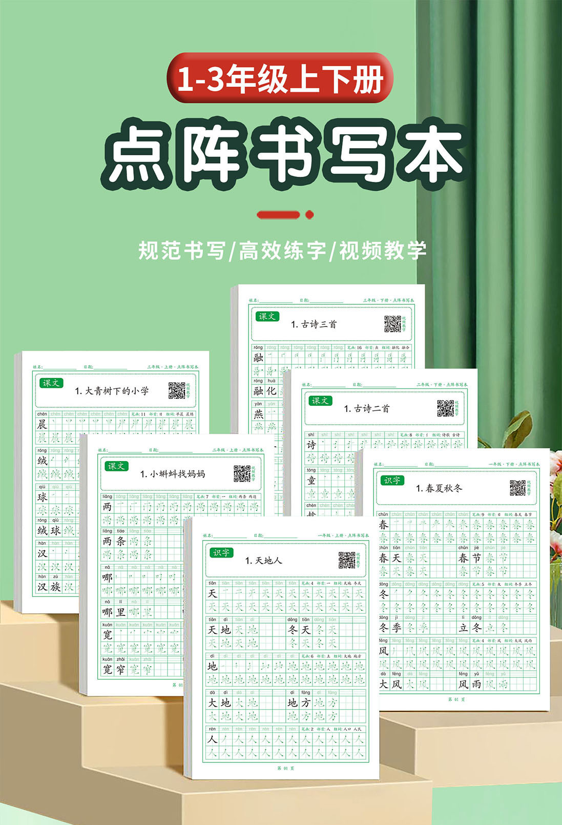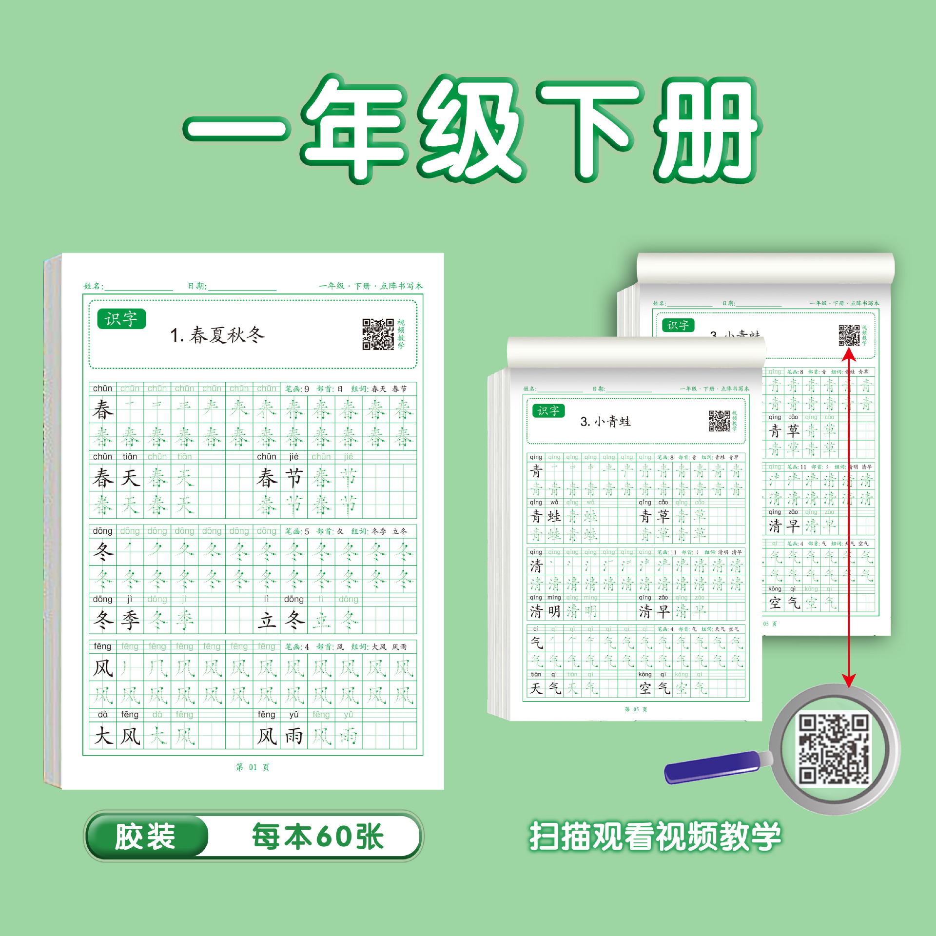 1 학년 동기 연습 카피 북, 2 학년 및 3 학년, 중국 인민 교육 판, 초등학생을위한 도트 매트릭스 추적 붉은 서예 책