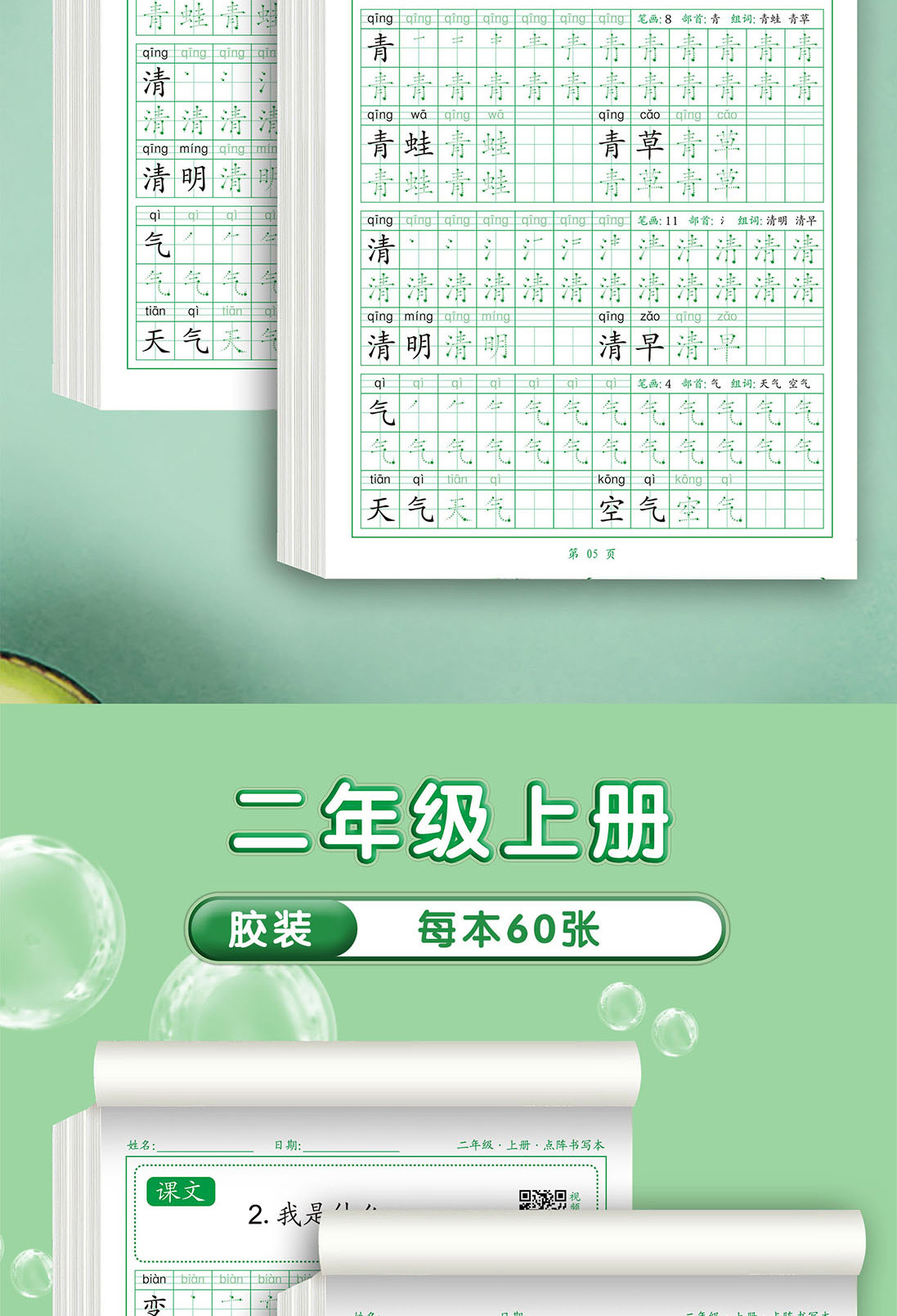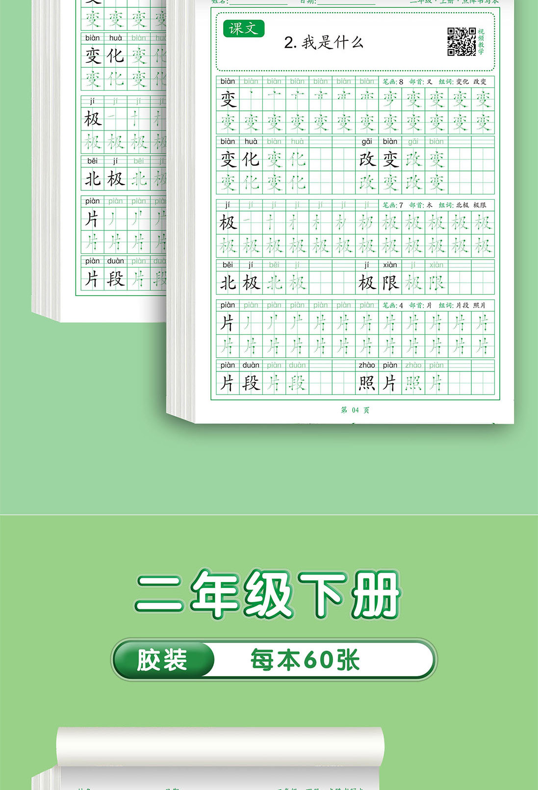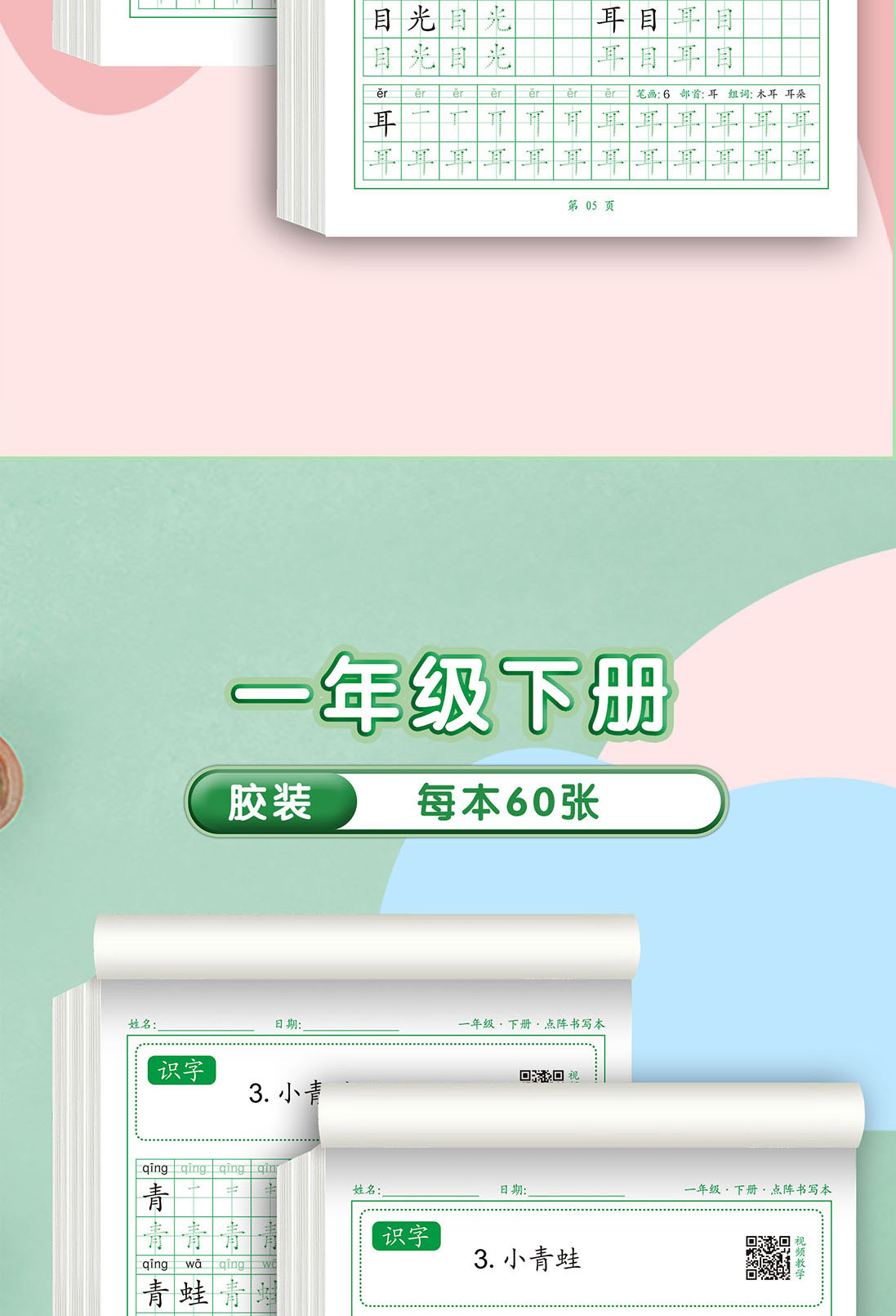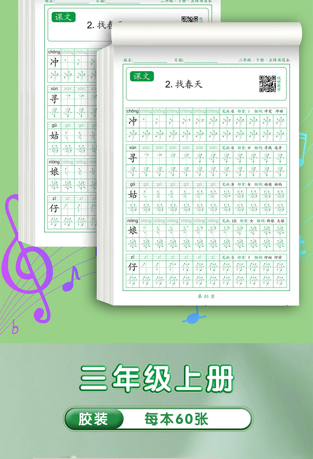1 학년 동기 연습 카피 북, 2 학년 및 3 학년, 중국 인민 교육 판, 초등학생을위한 도트 매트릭스 추적 붉은 서예 책