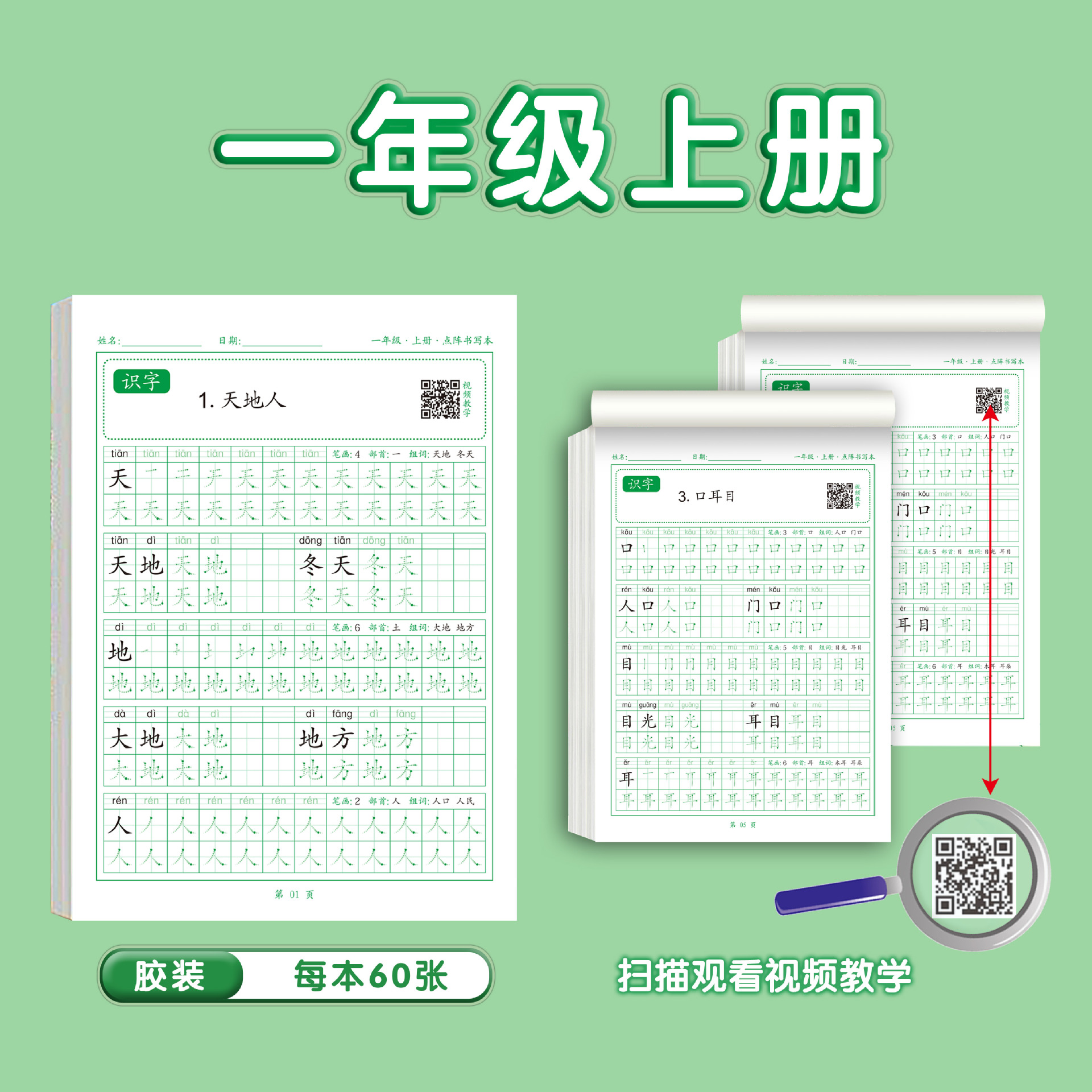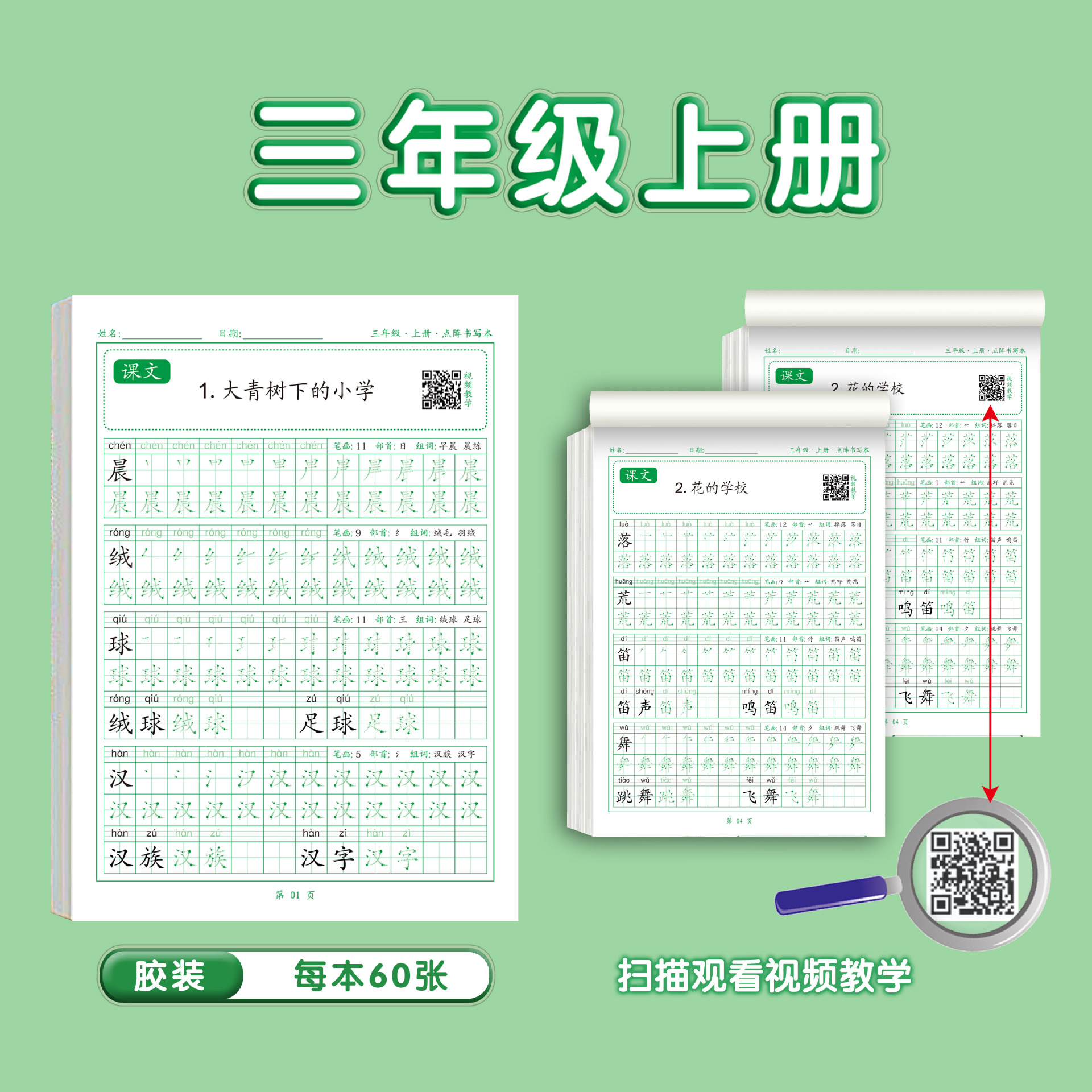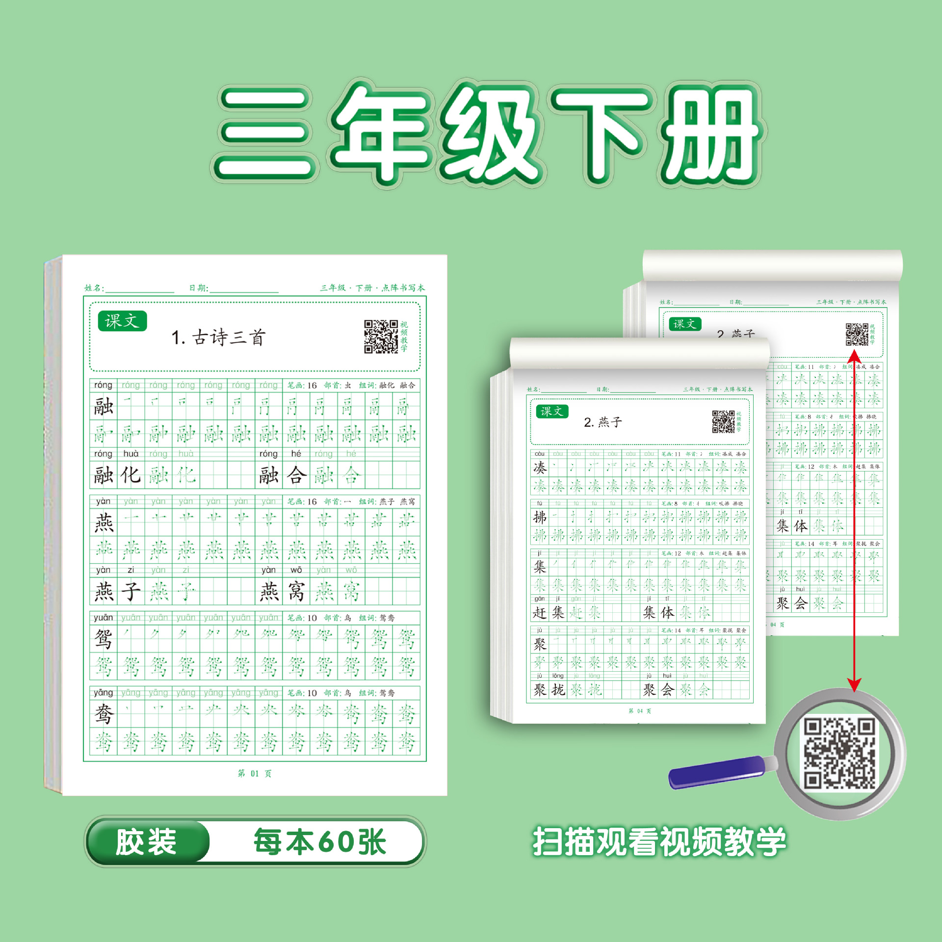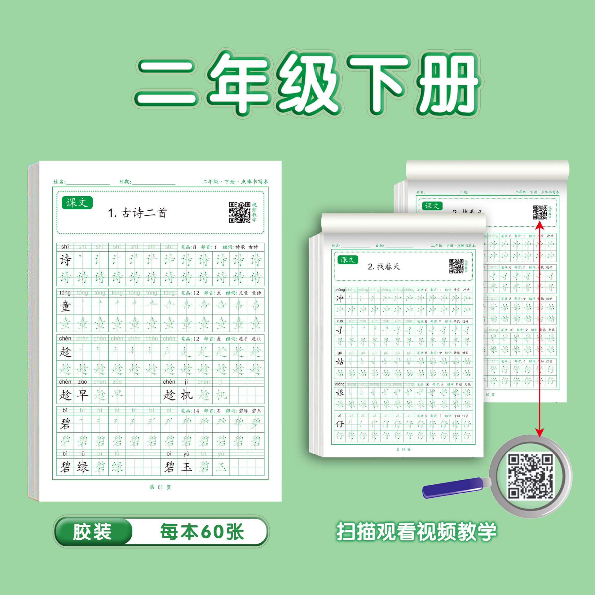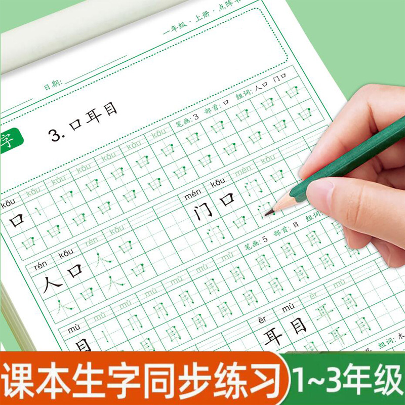 1 학년 동기 연습 카피 북, 2 학년 및 3 학년, 중국 인민 교육 판, 초등학생을위한 도트 매트릭스 추적 붉은 서예 책스토어 가기
