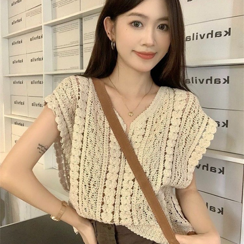 니트 자수 풀오버 할로우 크로 셰 뜨개질 외부 조끼 보헤미안 민족 스타일 여성 풀오버 탑