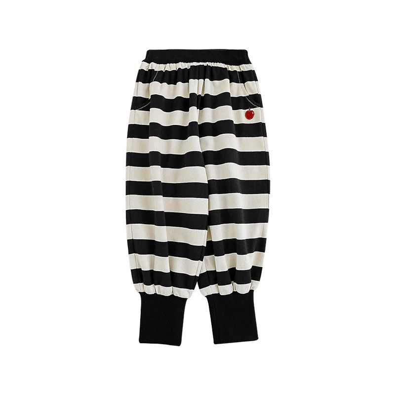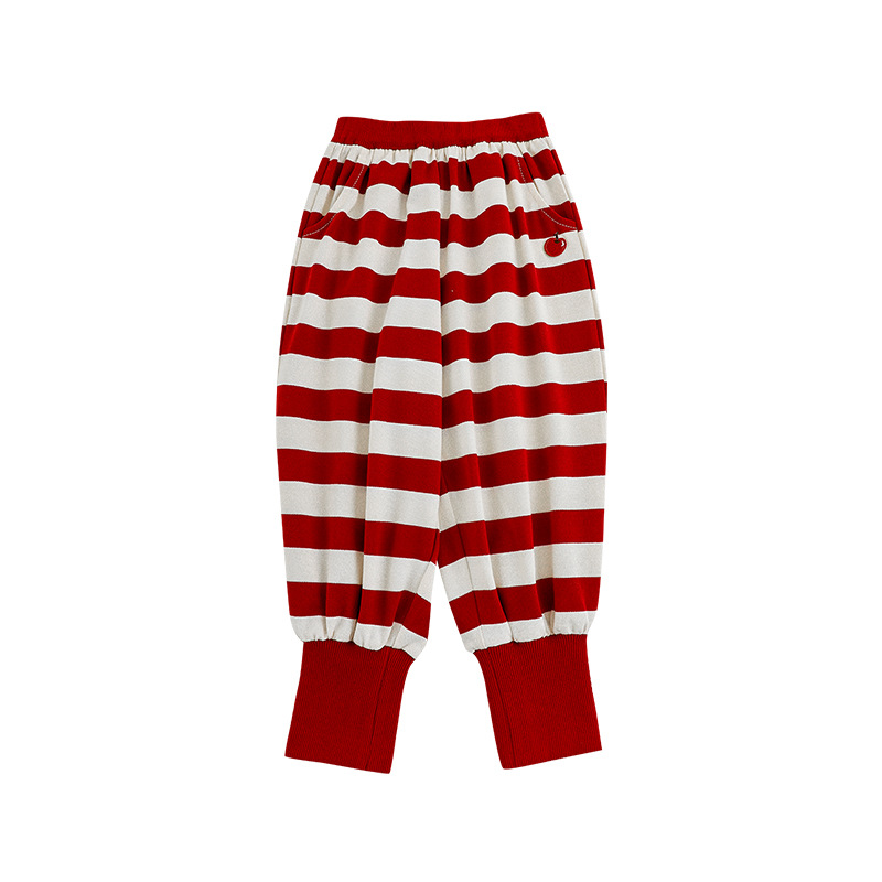 Qiu Duomeng 소녀 줄무늬 니트 바지 2024 가을 새로운 어린이 패션 캐주얼 바지 아기 발 바지