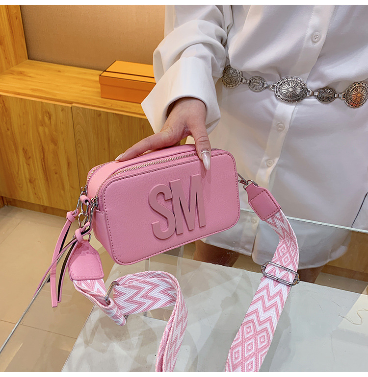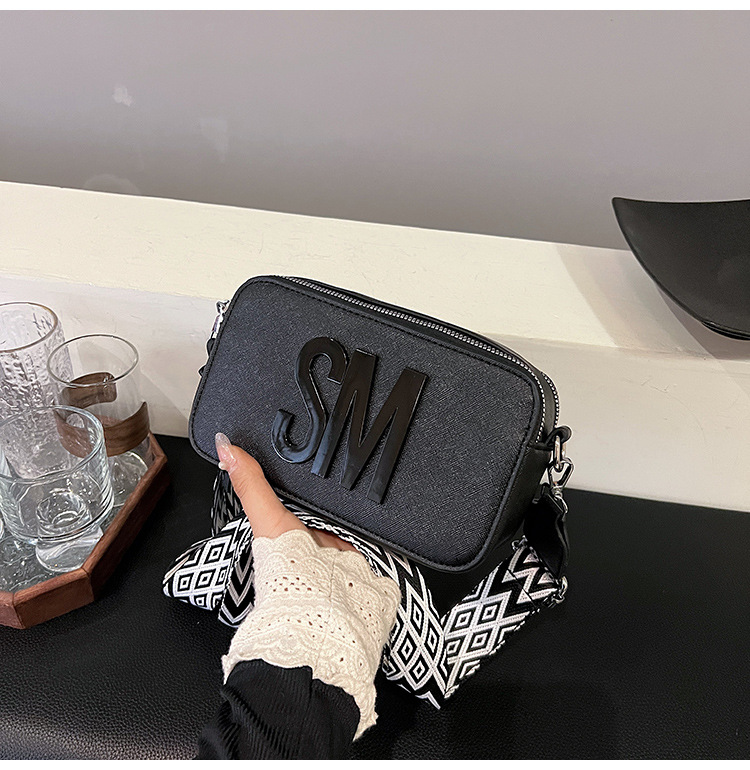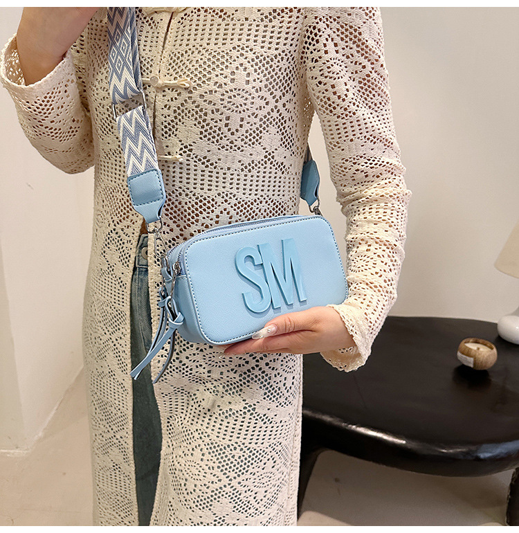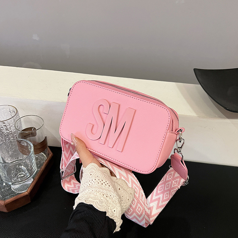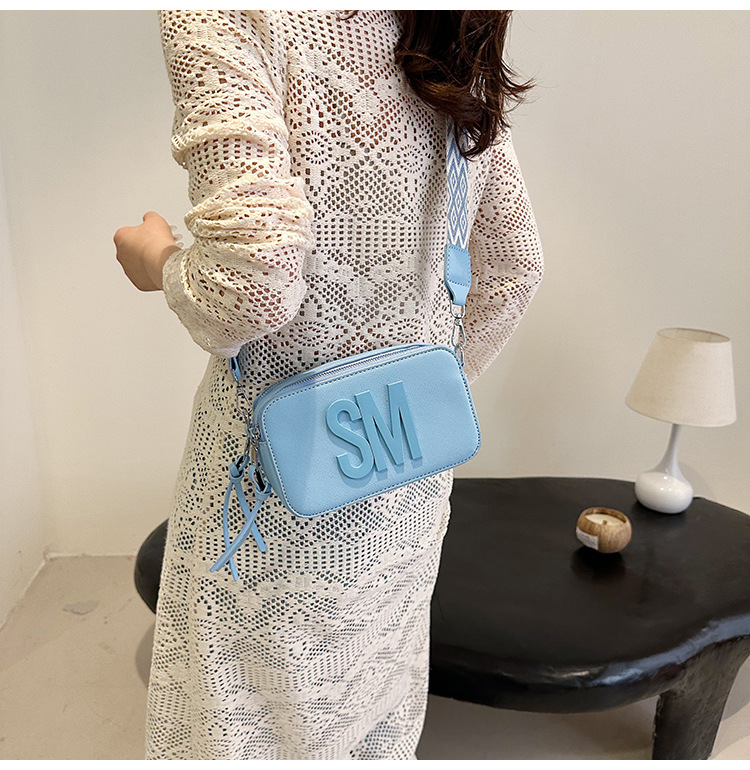 유행 올 매치 여자 가방 텍스처 작은 스퀘어 가방 캐주얼 어깨 가방 라이트 럭셔리 크로스 바디 백 와이드 어깨 스트랩 레터 여성용 가방