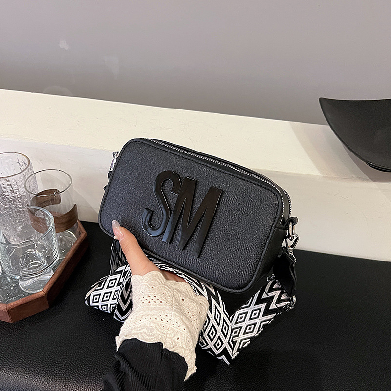 유행 올 매치 여자 가방 텍스처 작은 스퀘어 가방 캐주얼 어깨 가방 라이트 럭셔리 크로스 바디 백 와이드 어깨 스트랩 레터 여성용 가방스토어 가기