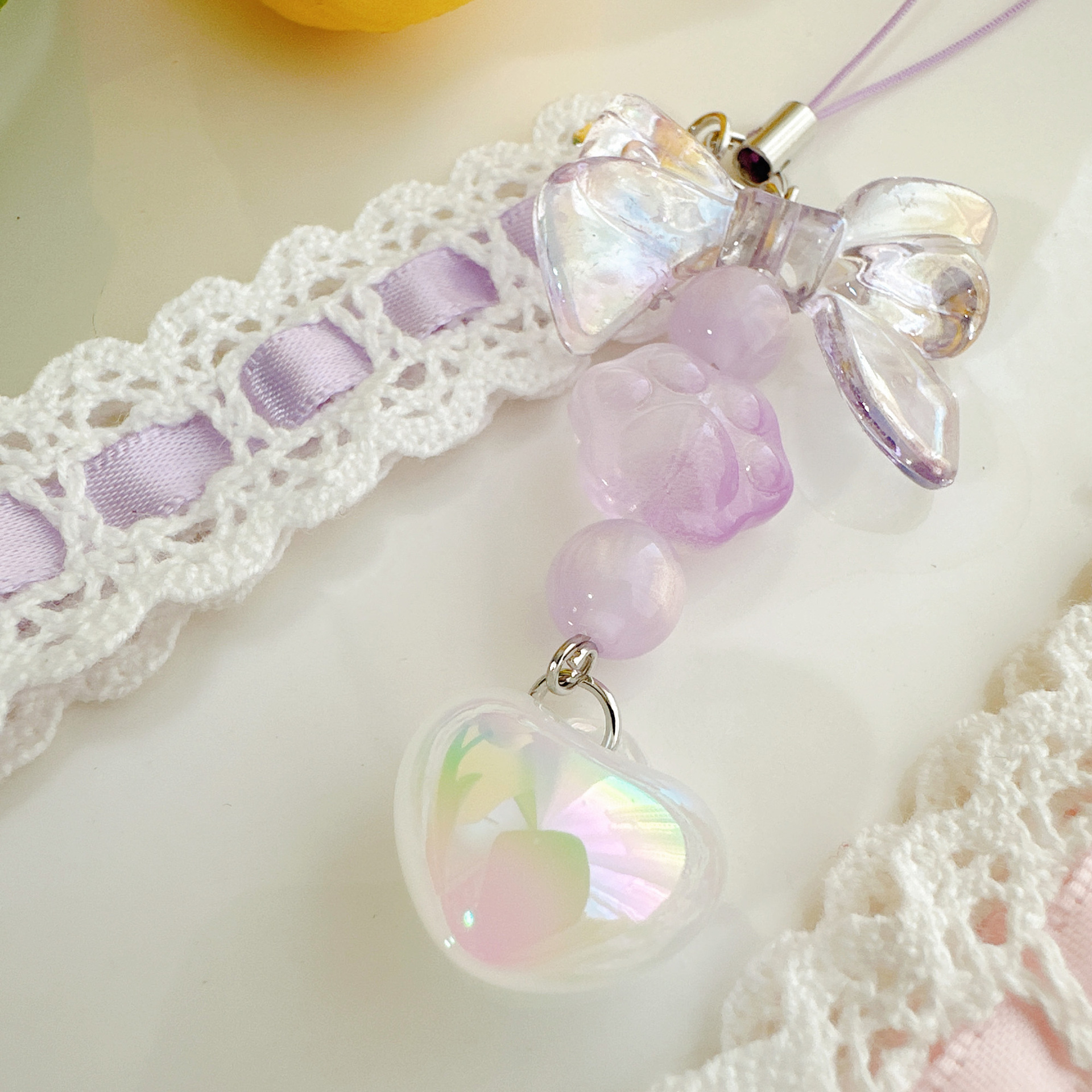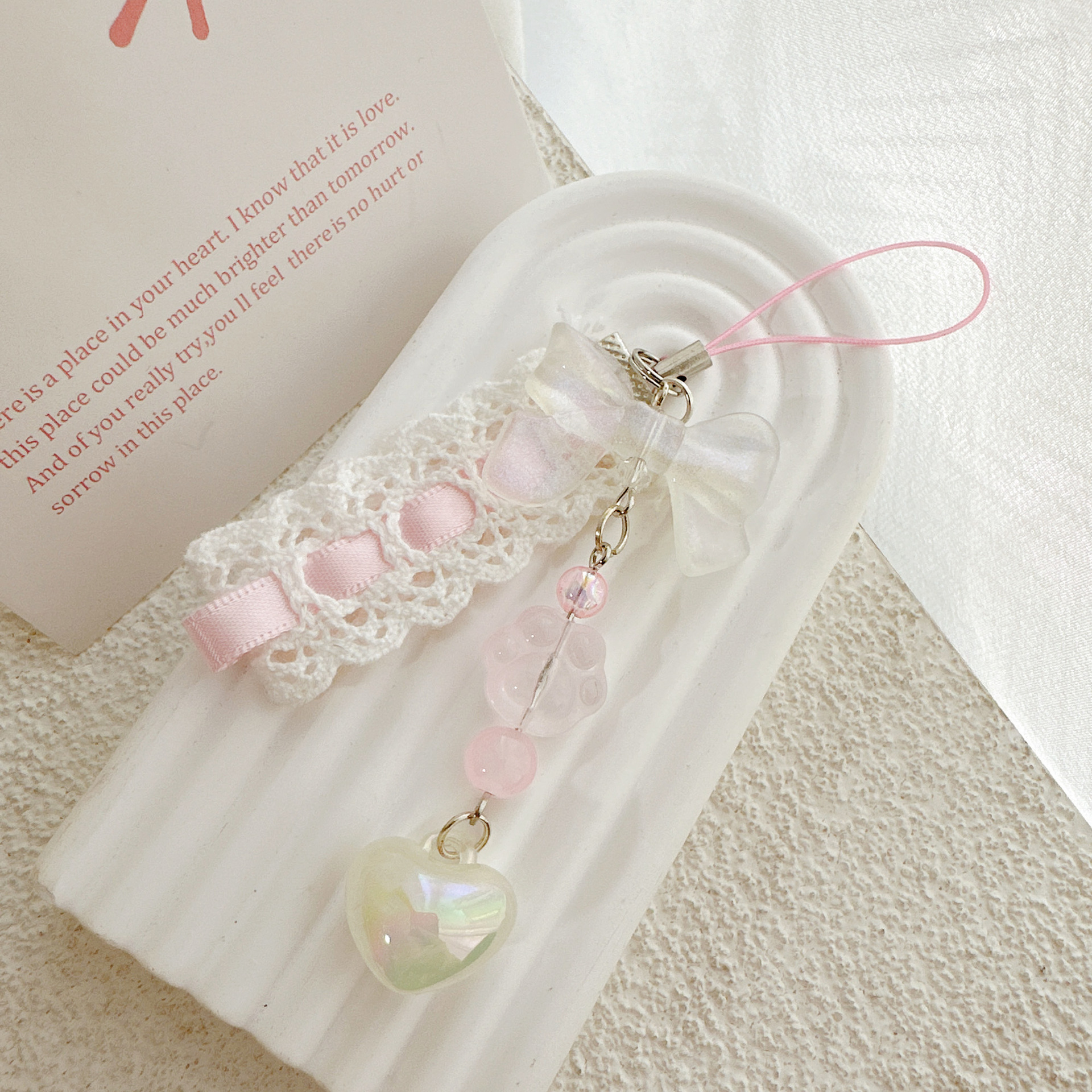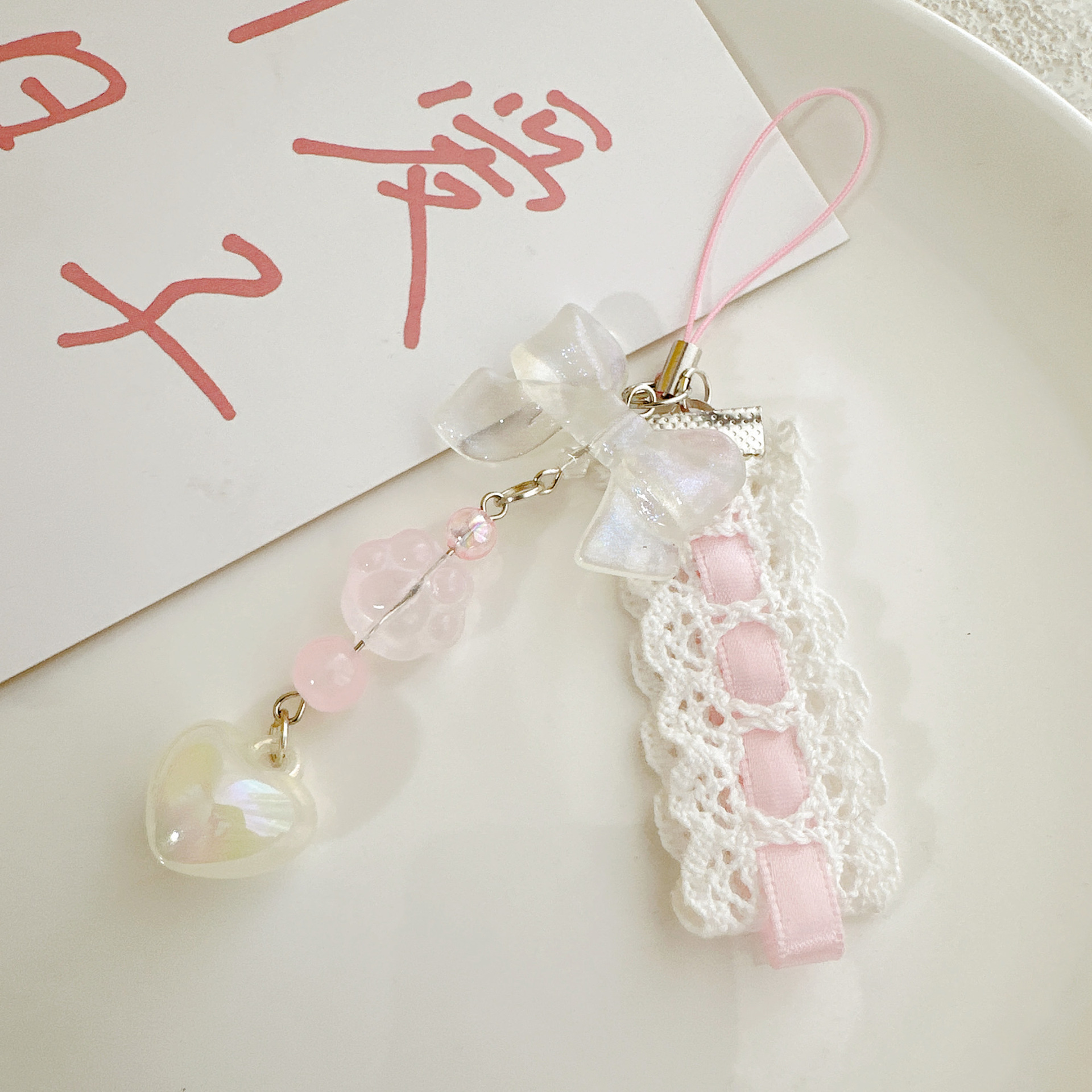 귀여운 소녀 리본 고양이 발톱 사랑 전화 케이스 체인 수제 카드 책 펜던트 카메라 장식 펜던트