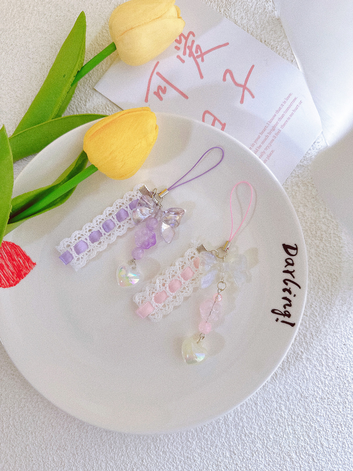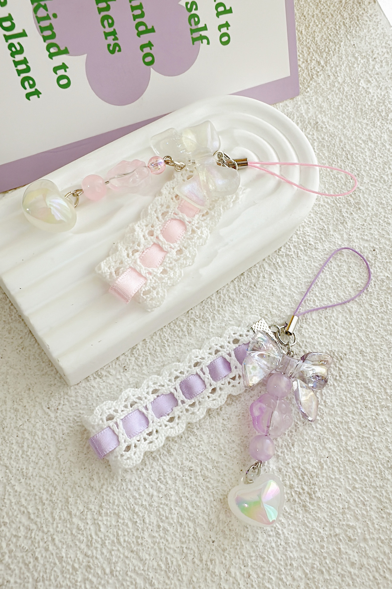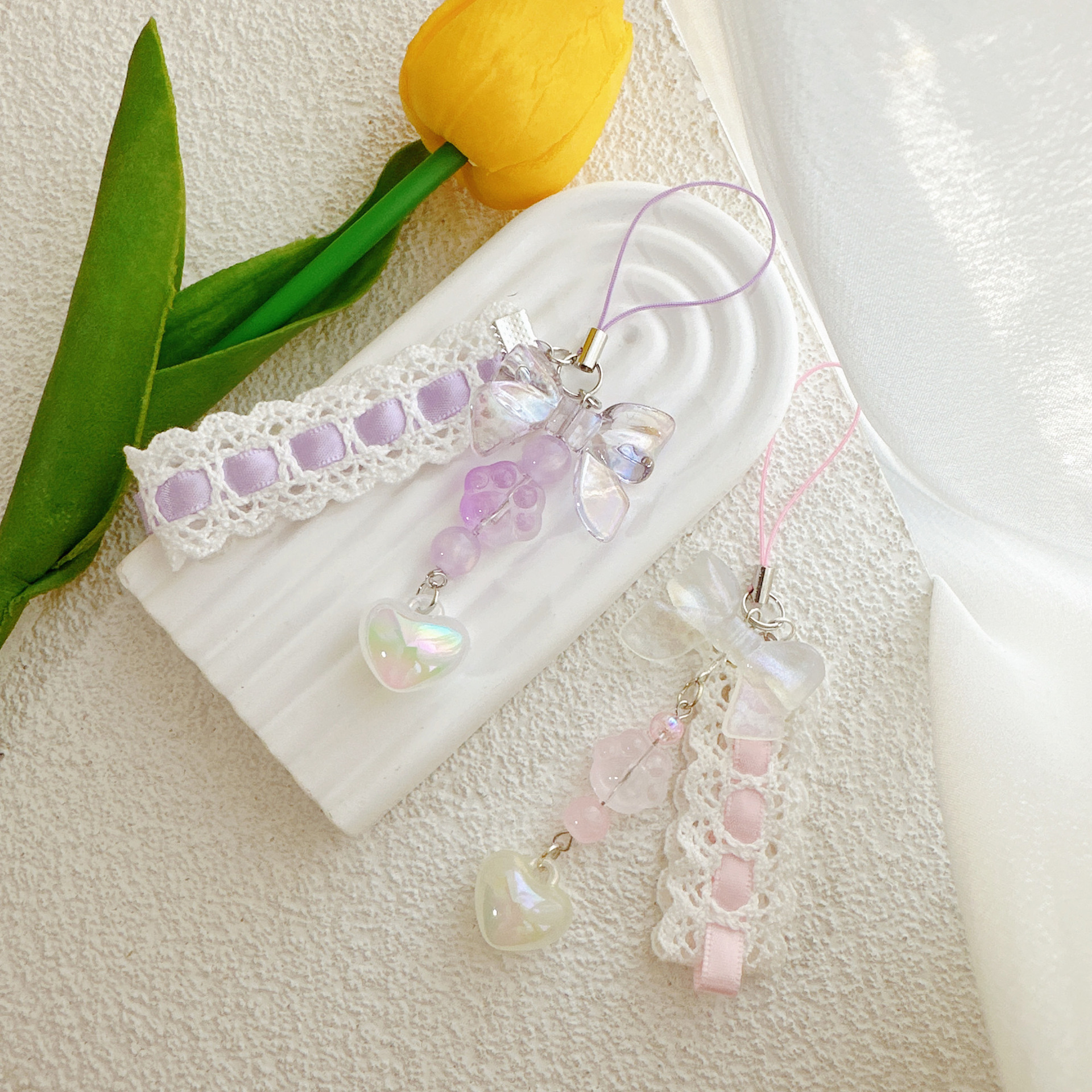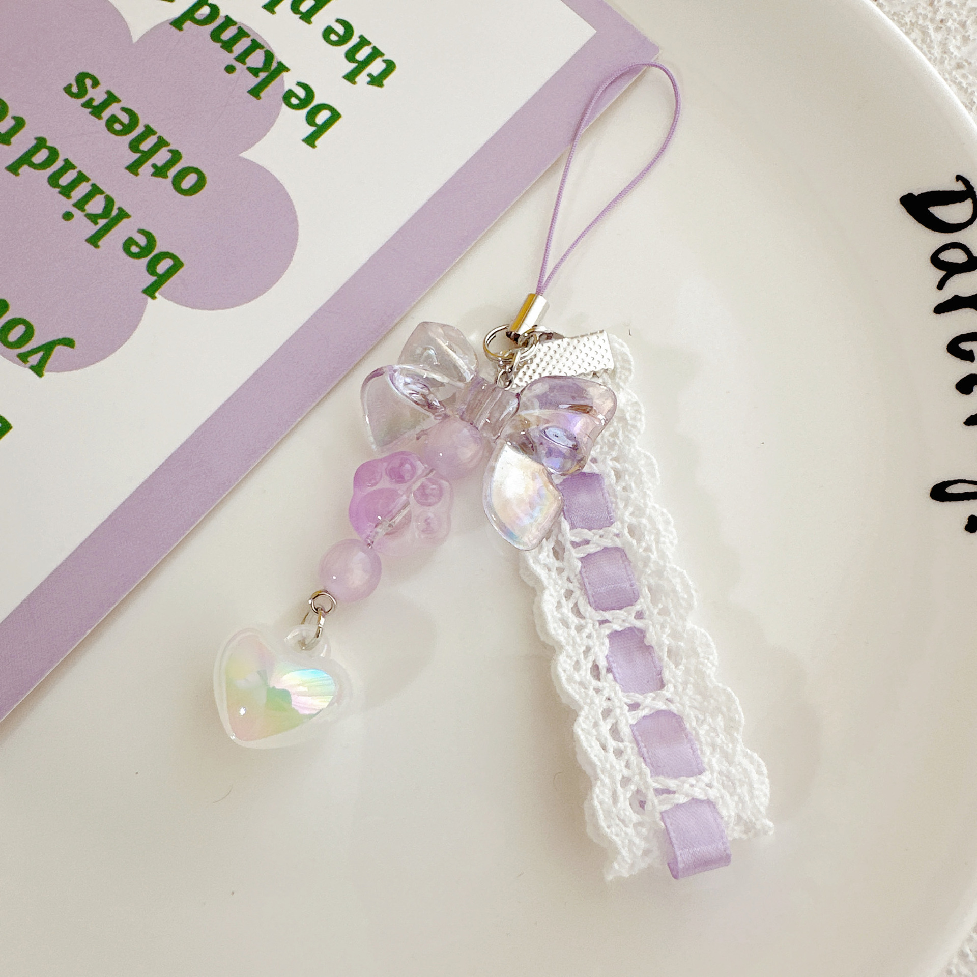 귀여운 소녀 리본 고양이 발톱 사랑 전화 케이스 체인 수제 카드 책 펜던트 카메라 장식 펜던트