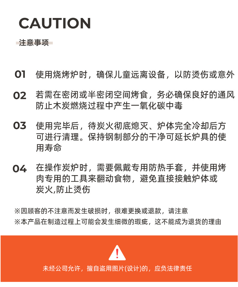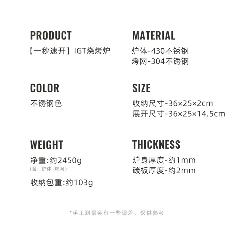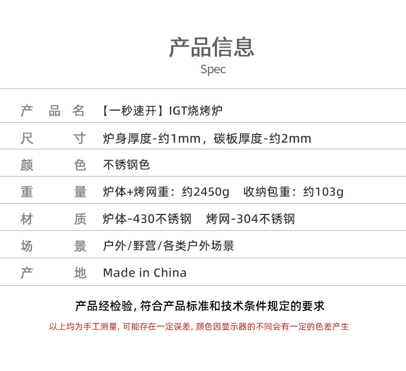 材质:炉体-430不锈钢 烤网-304不锈钢
