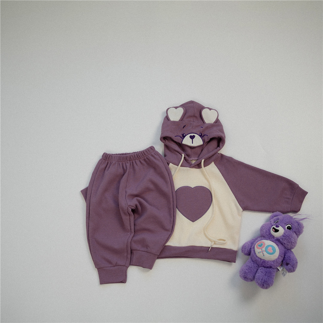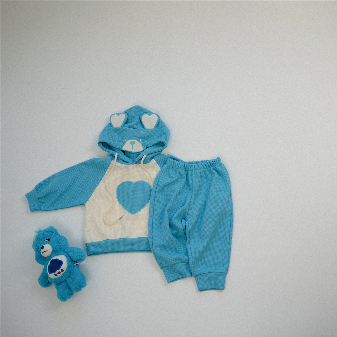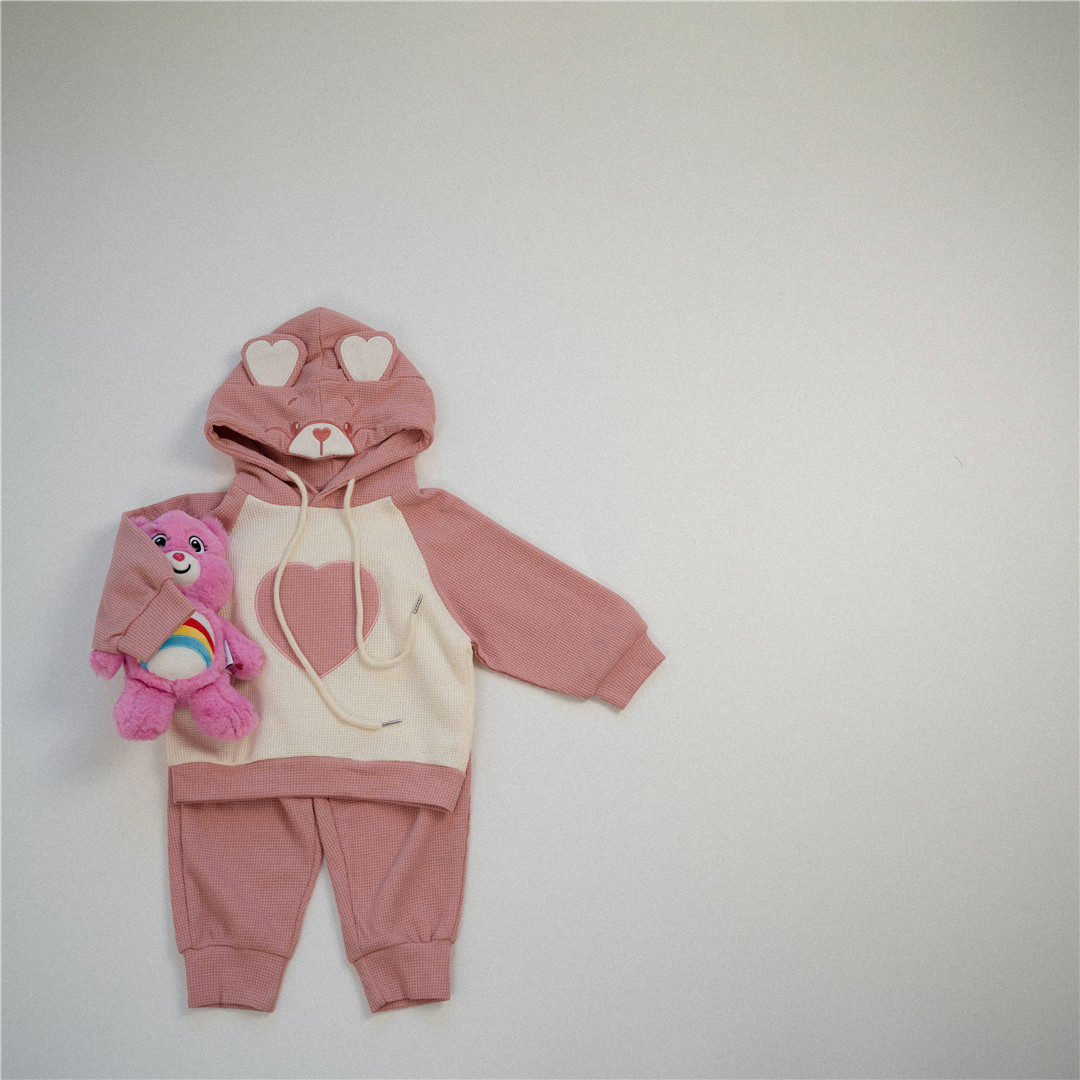 수보 중소 어린이 만화 후드 스웨터 세트 2024 년 아동복 가을 한국 자수 투피스 아동복스토어 가기