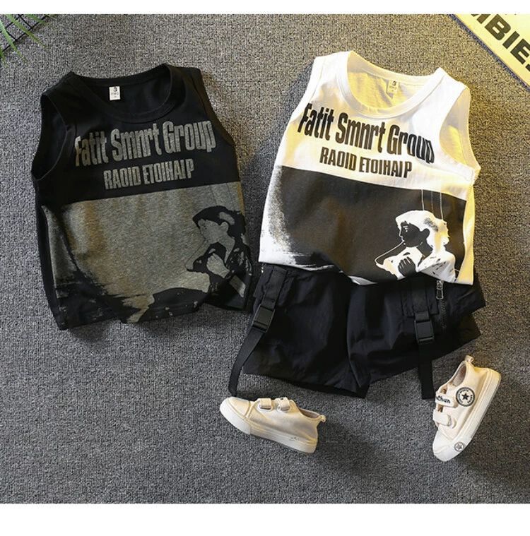 남학생 여름 세트 2024 년 새 어린이 여름 민소매 복고조끼 한국식 올매치 쿨 투피스 세트스토어 가기
