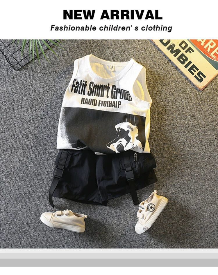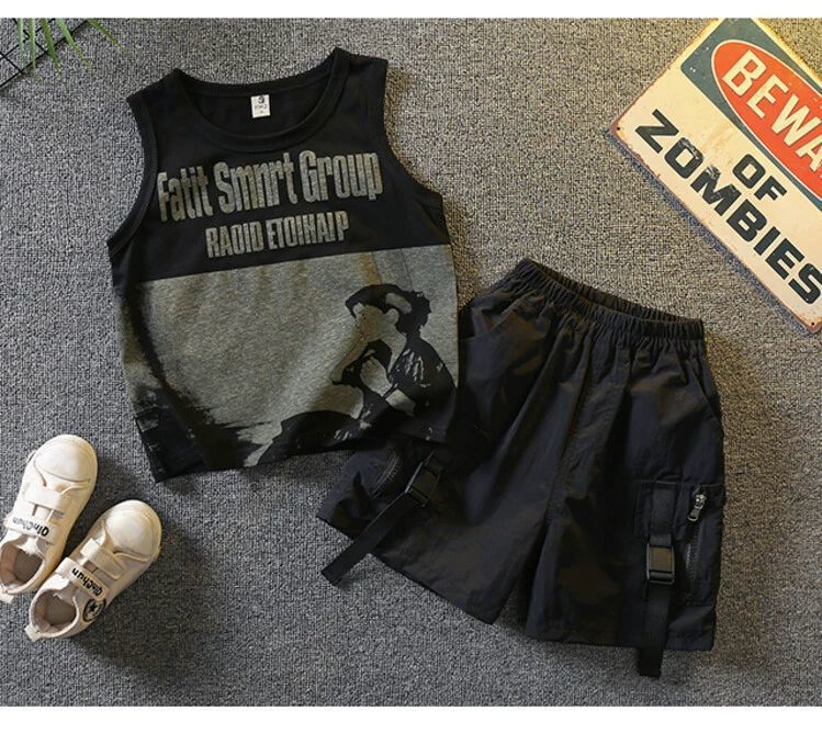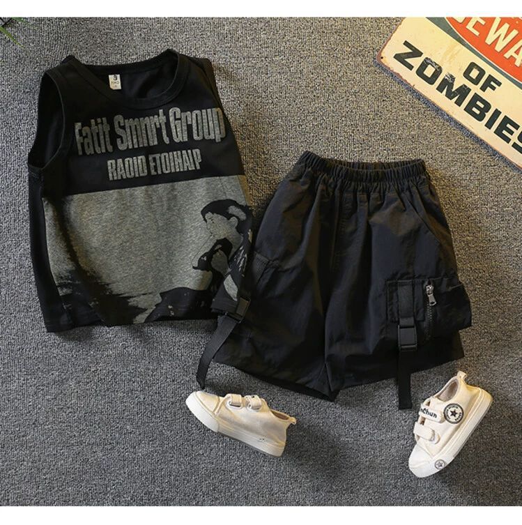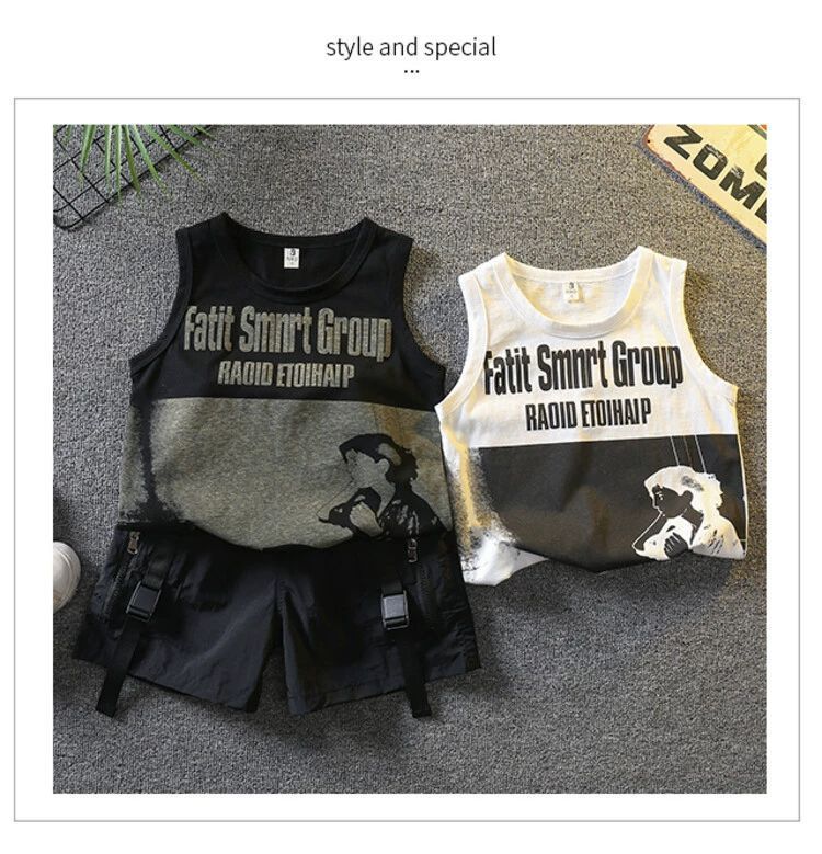 남학생 여름 세트 2024 년 새 어린이 여름 민소매 복고조끼 한국식 올매치 쿨 투피스 세트
