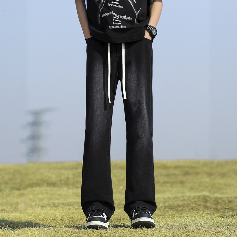 공장 도매 여름 얇은 바지 미국 하이 스트리트 조커 느슨한 마이크로 청바지 남성용 블랙 캐주얼 바지스토어 가기
