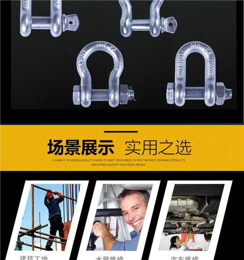미국 활 모양의 걸쇠 고강도 D 자형 U 링 스냅 잠금 후크 말굽 리프팅 국가 표준 리프팅 도구 연결스토어 가기