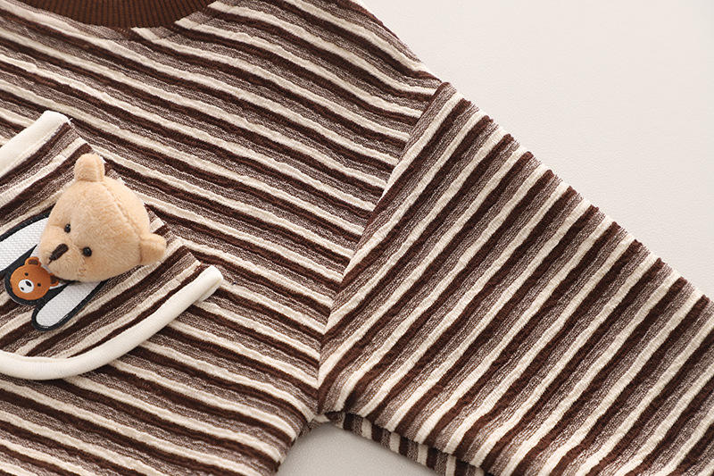 어린이 봄 옷 세트 2024 새 소년 아기 봄과 가을 줄무늬 포켓 곰 스웨터 투피스 세트