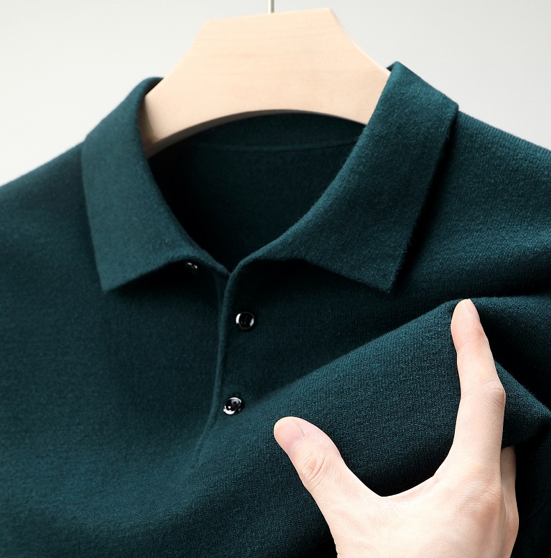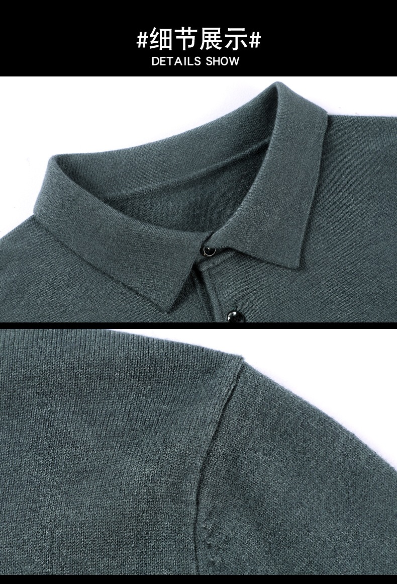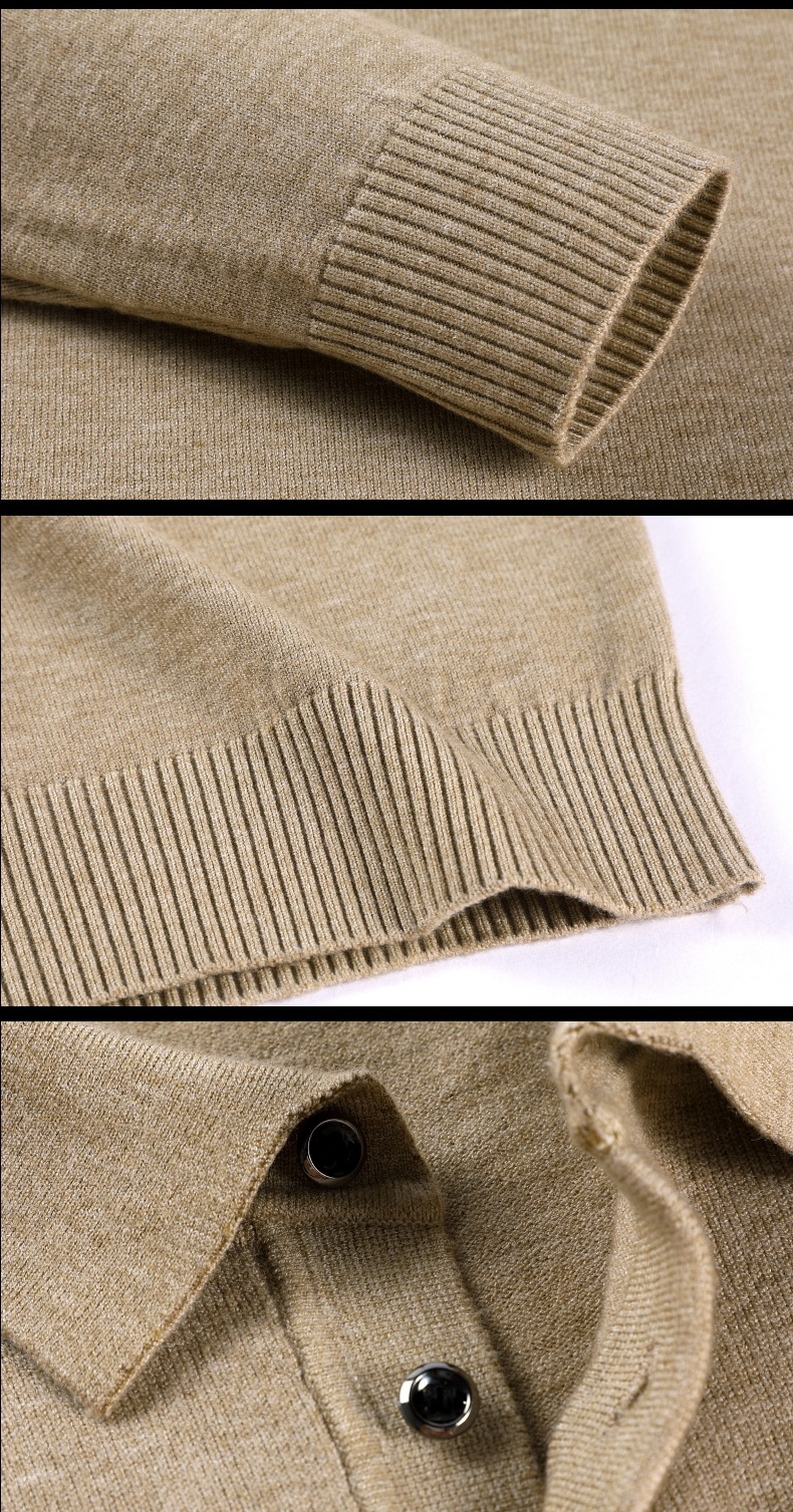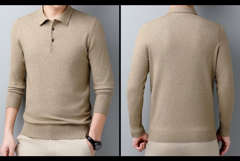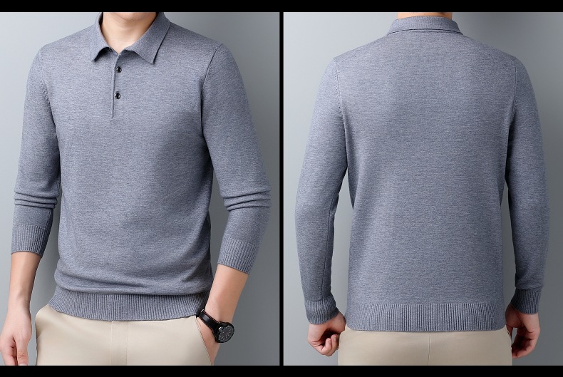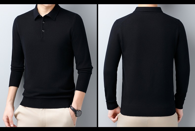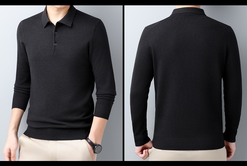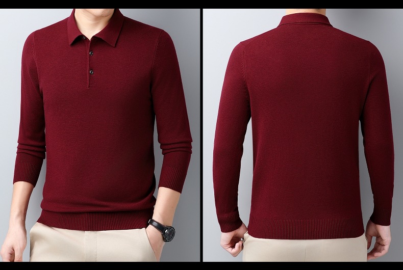 가을, 겨울 신작 남성 솔리드 컬러 스웨터 라펠 풀오버 긴팔 티셔츠 캐주얼 중년 폴로 셔츠 칼라 니트 스웨터