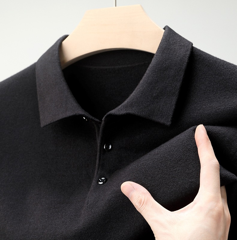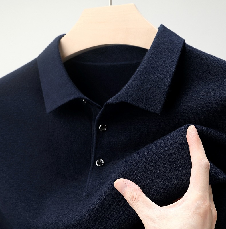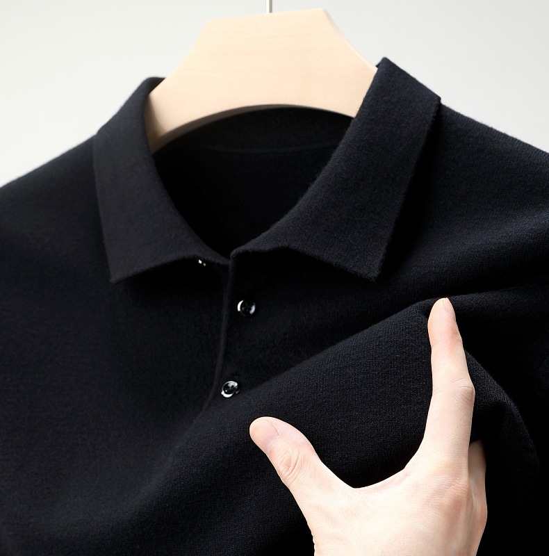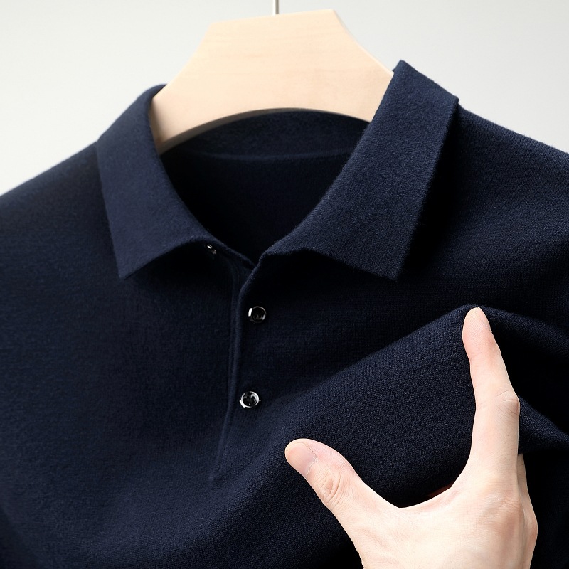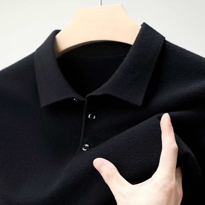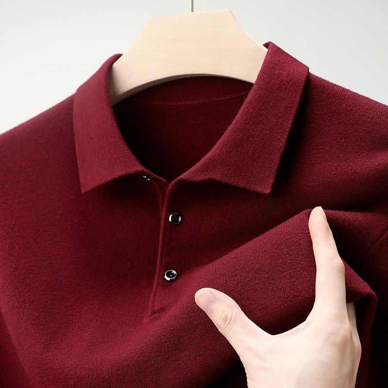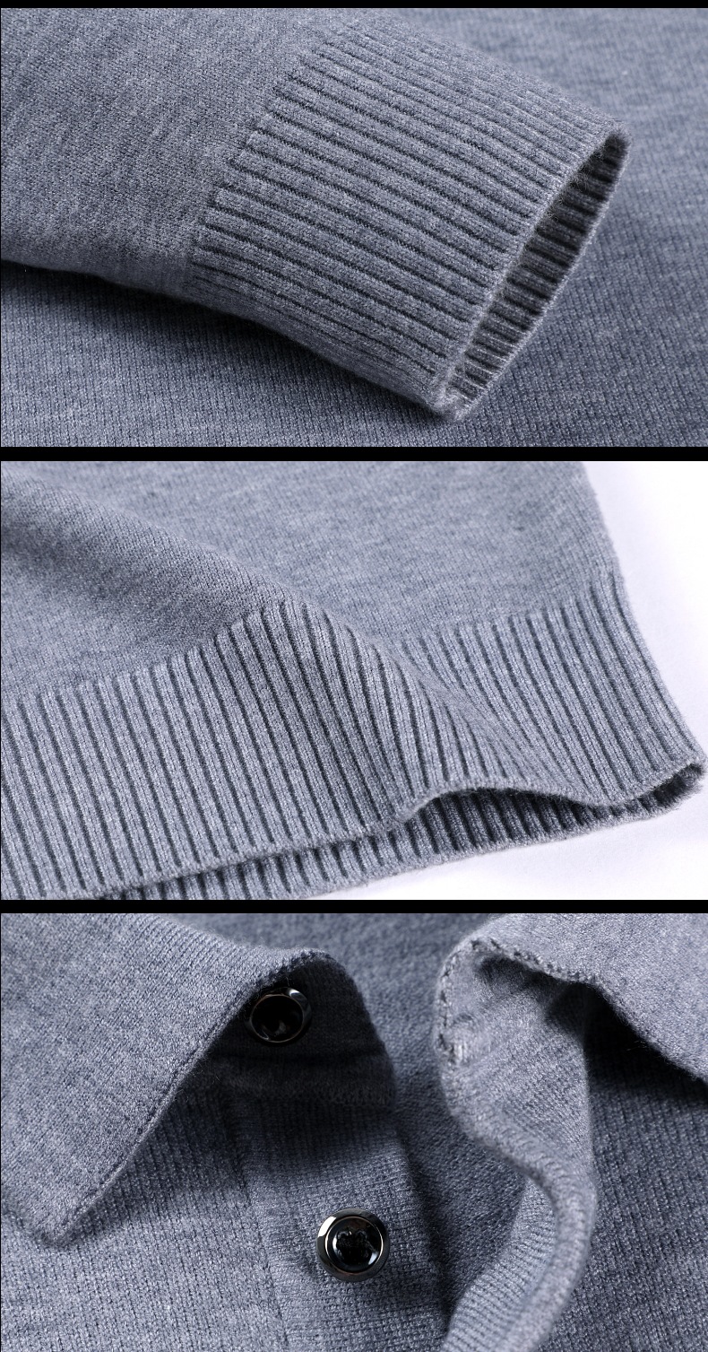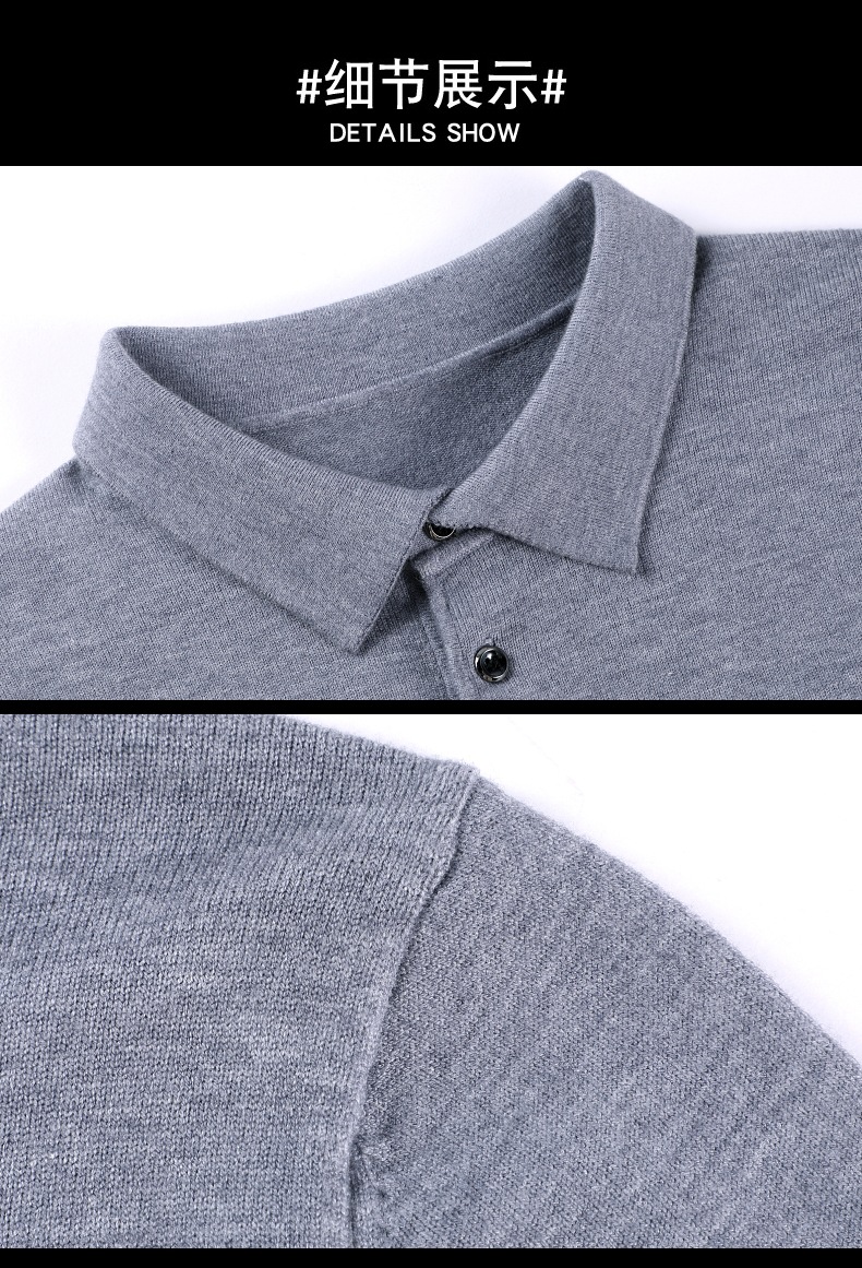 가을, 겨울 신작 남성 솔리드 컬러 스웨터 라펠 풀오버 긴팔 티셔츠 캐주얼 중년 폴로 셔츠 칼라 니트 스웨터
