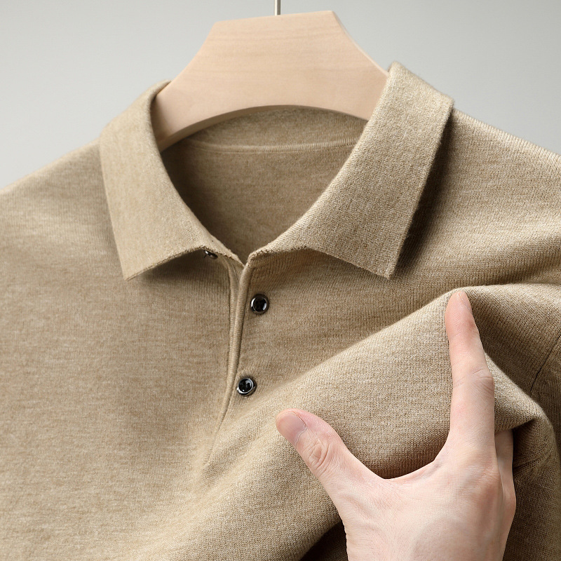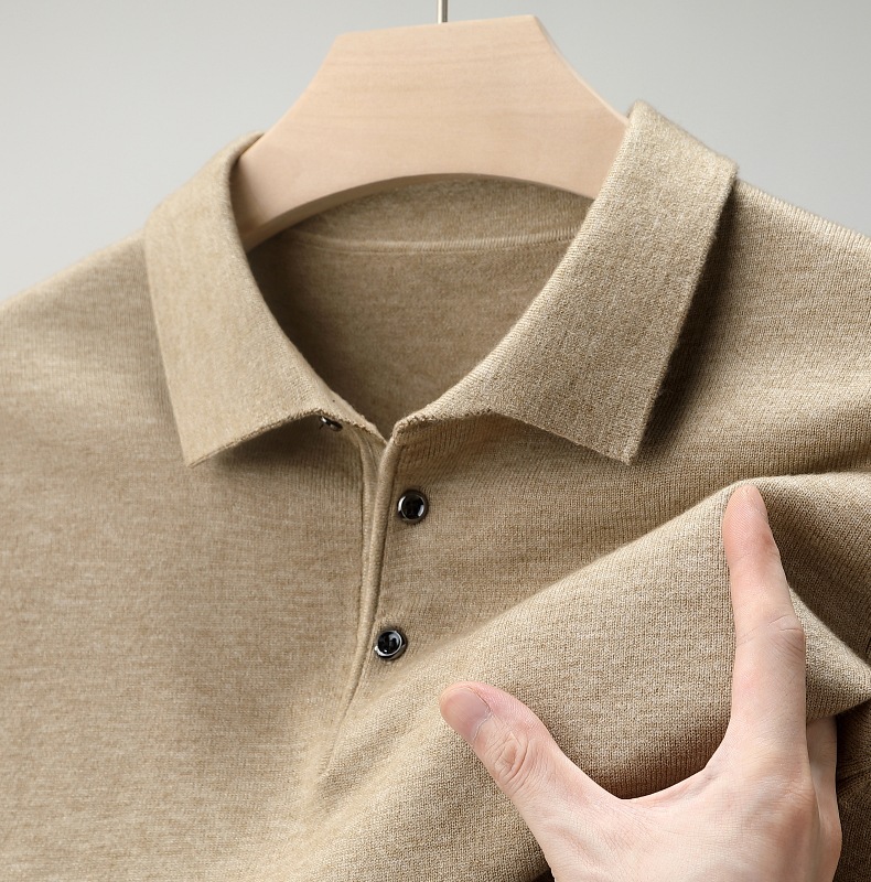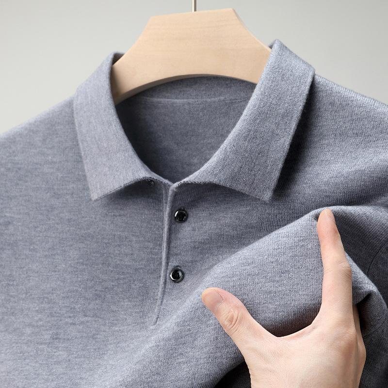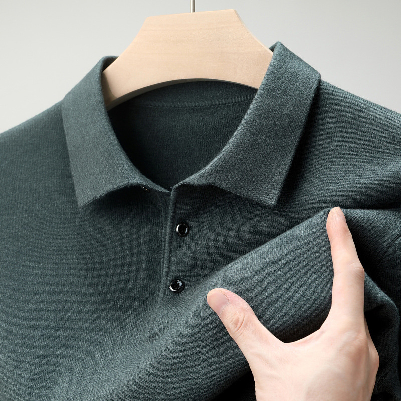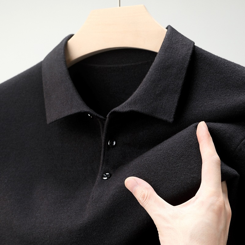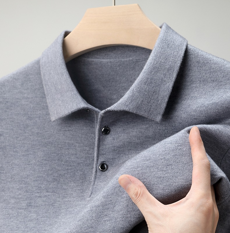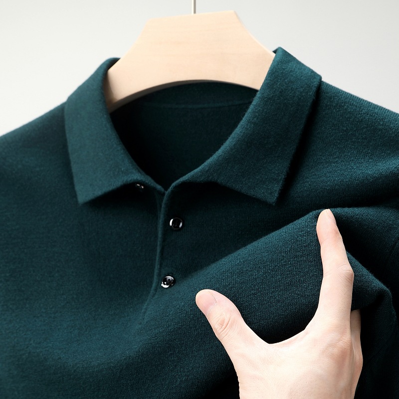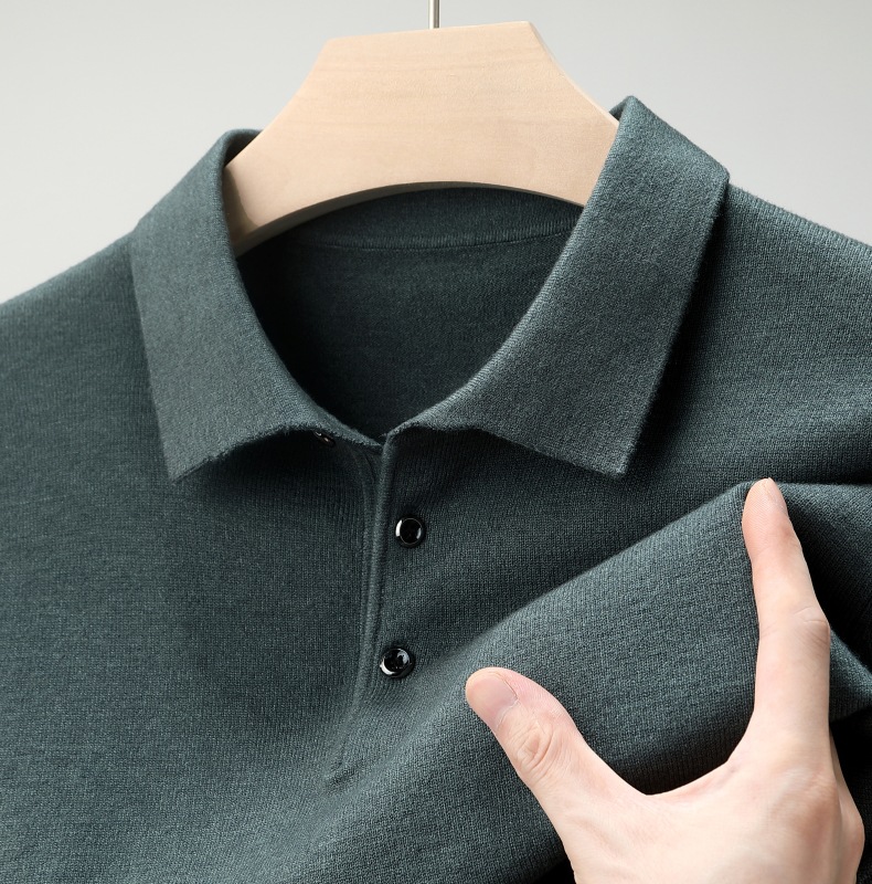 가을, 겨울 신작 남성 솔리드 컬러 스웨터 라펠 풀오버 긴팔 티셔츠 캐주얼 중년 폴로 셔츠 칼라 니트 스웨터