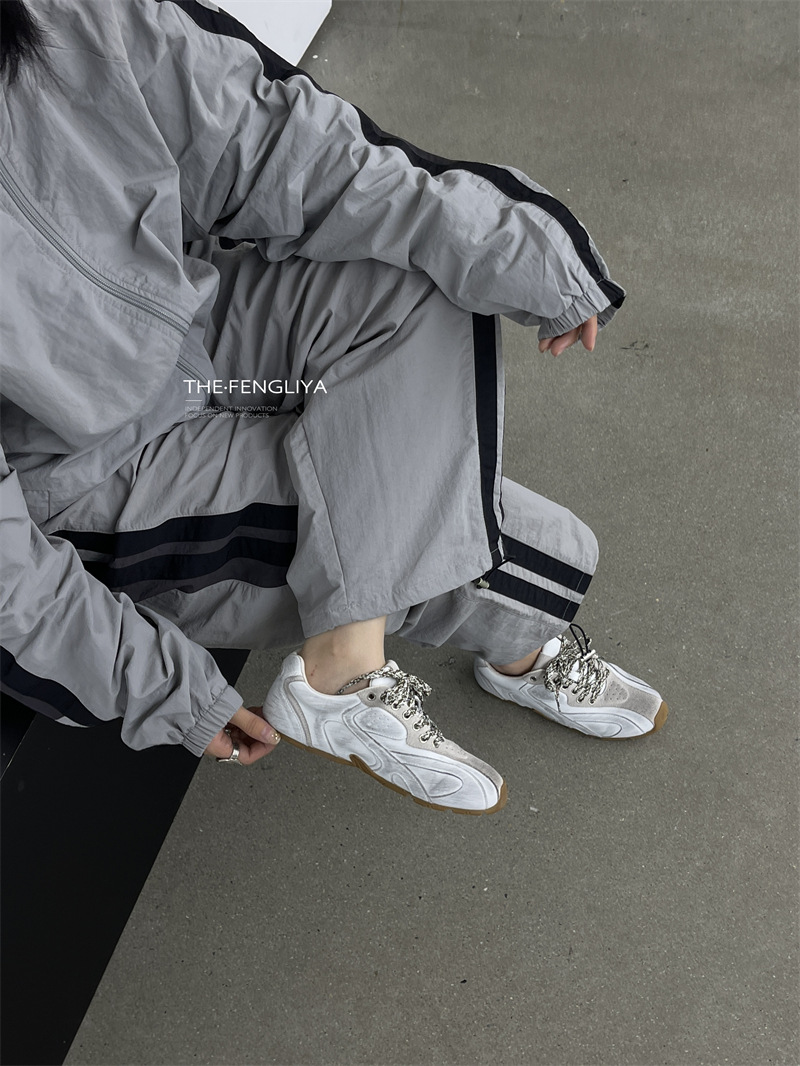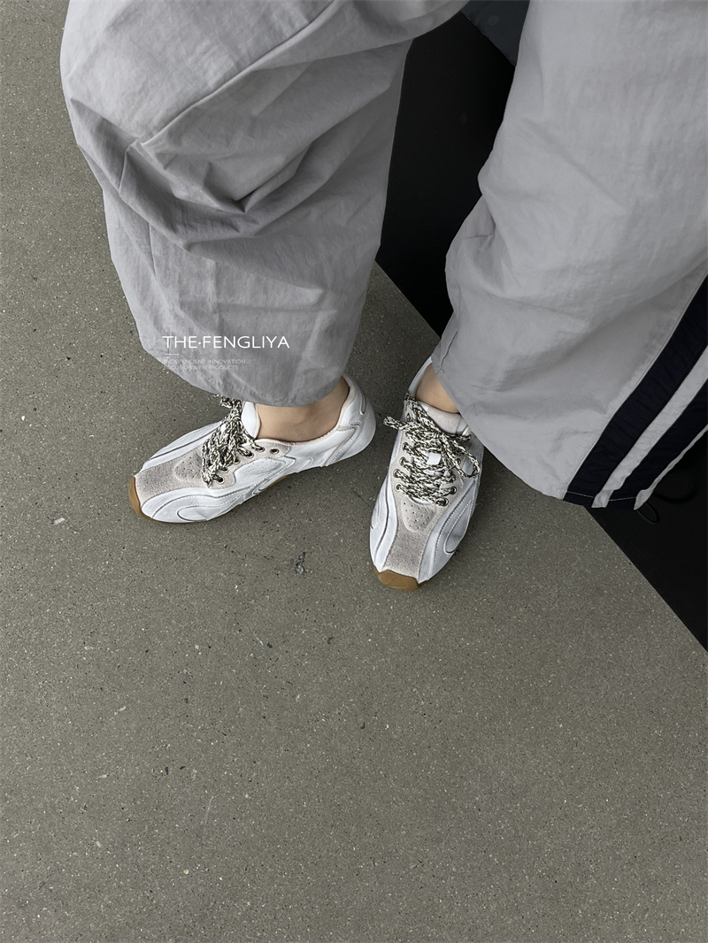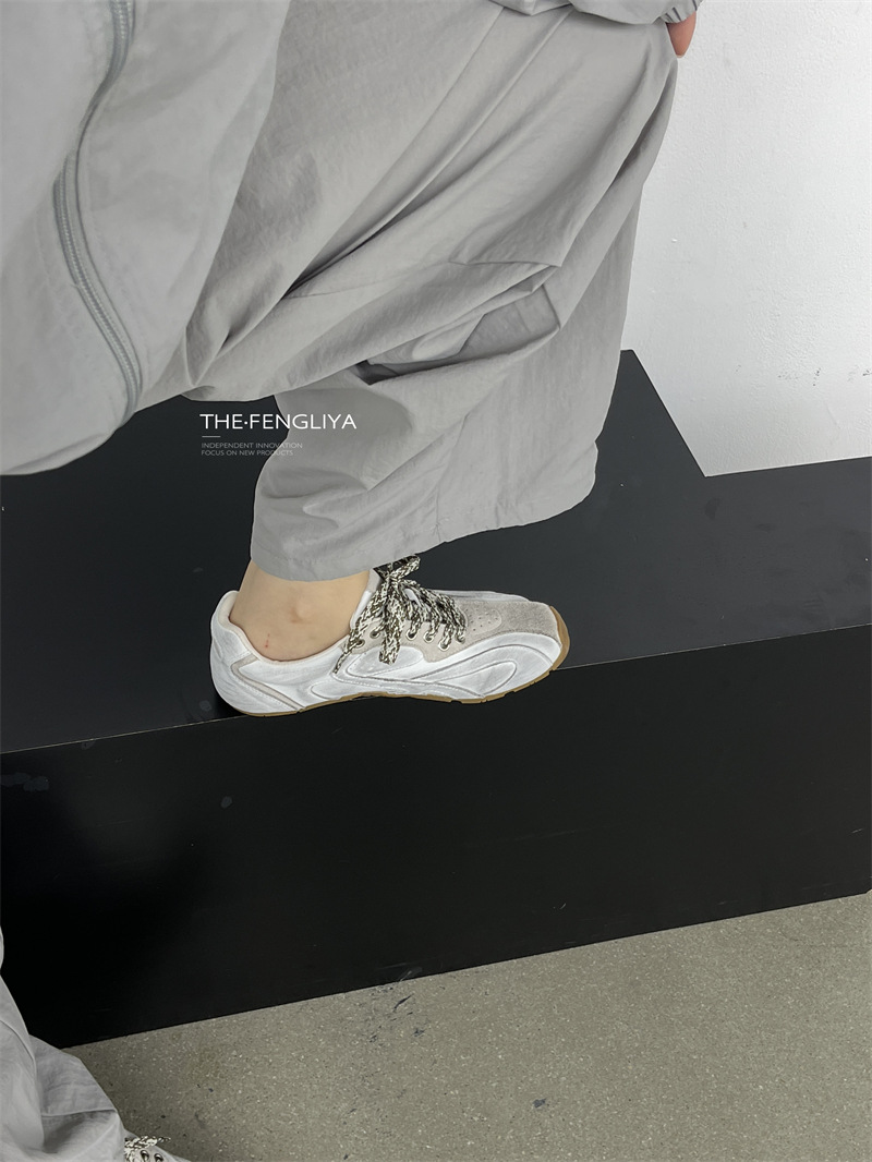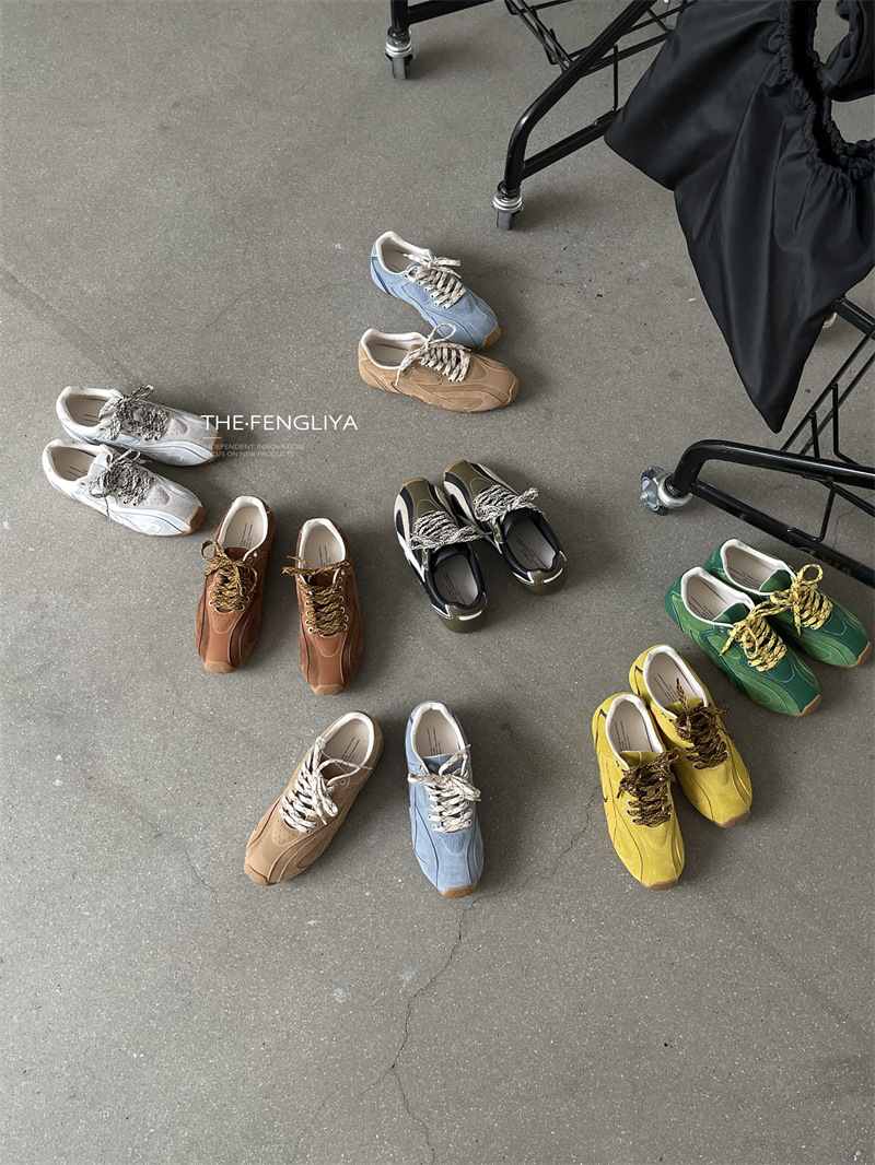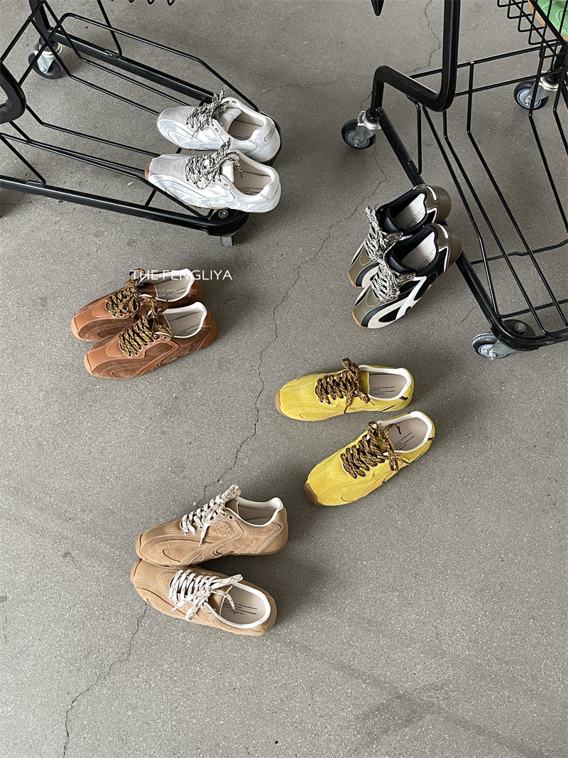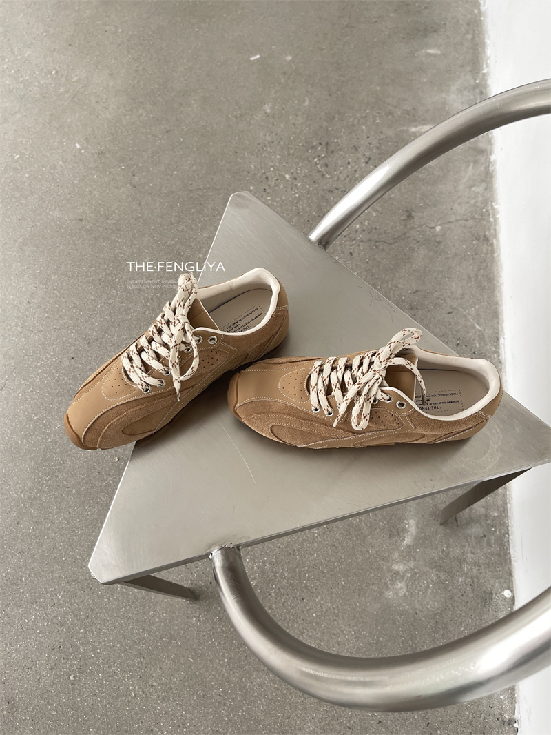 Fengliya 두꺼운 밑창 독일 훈련 신발 여성 여름 2024 새로운 스포츠 캐주얼 신발 강화 보드 신발 레트로 화이트 신발스토어 가기