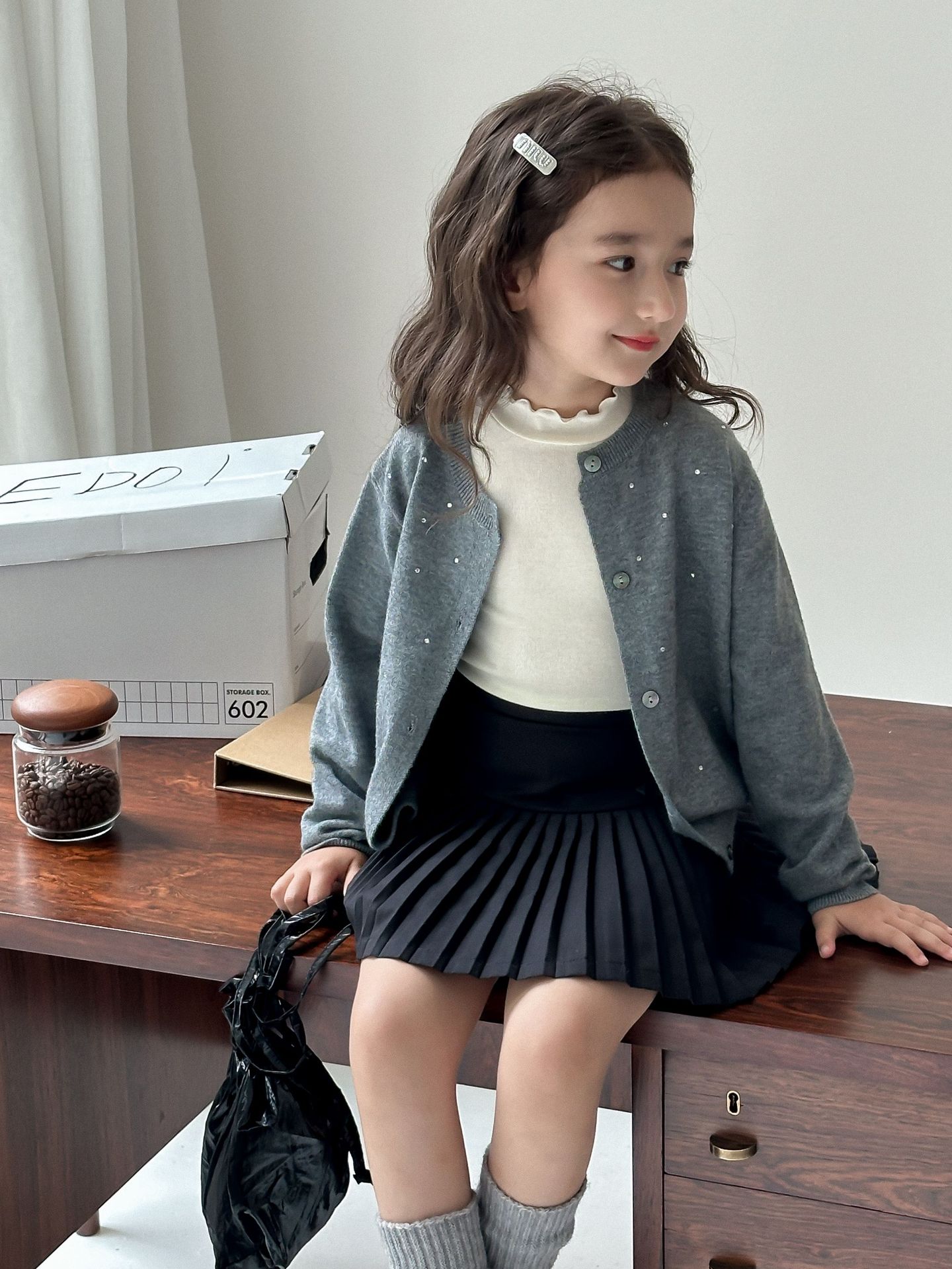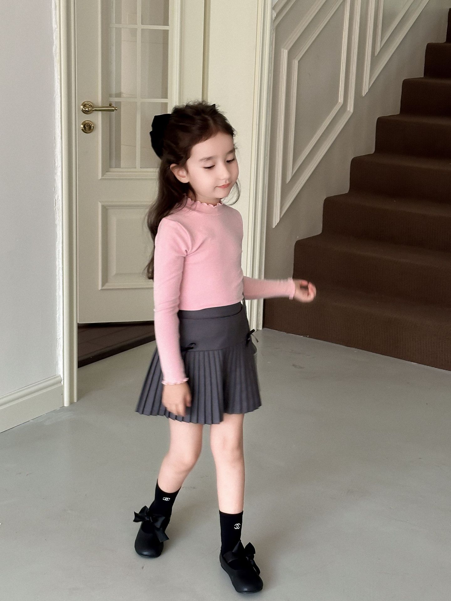 소녀 치마 2024 가을 새로운 간단한 올 매치 스커트 어린이 활 높은 허리 안티 눈부심 주름 치마스토어 가기
