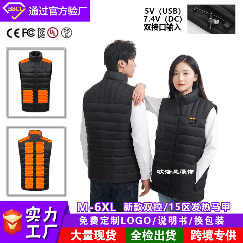 가을, 겨울 난방 조끼 크로스 보더 스탠드 칼라 새로운 5V7.4V 듀얼 인터페이스 전기 난방 패션 따뜻한 전기 난방 조끼