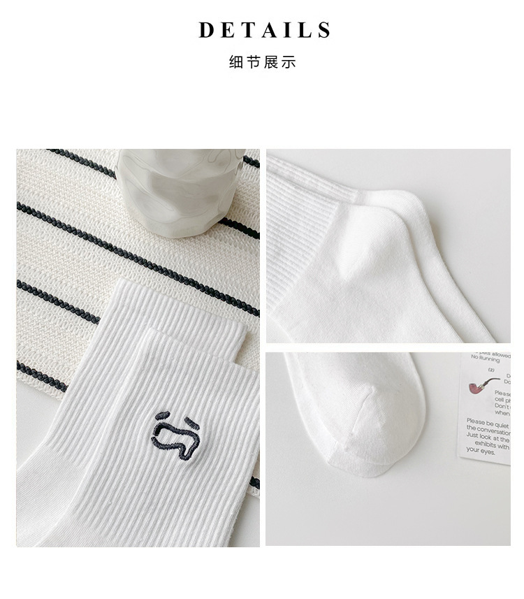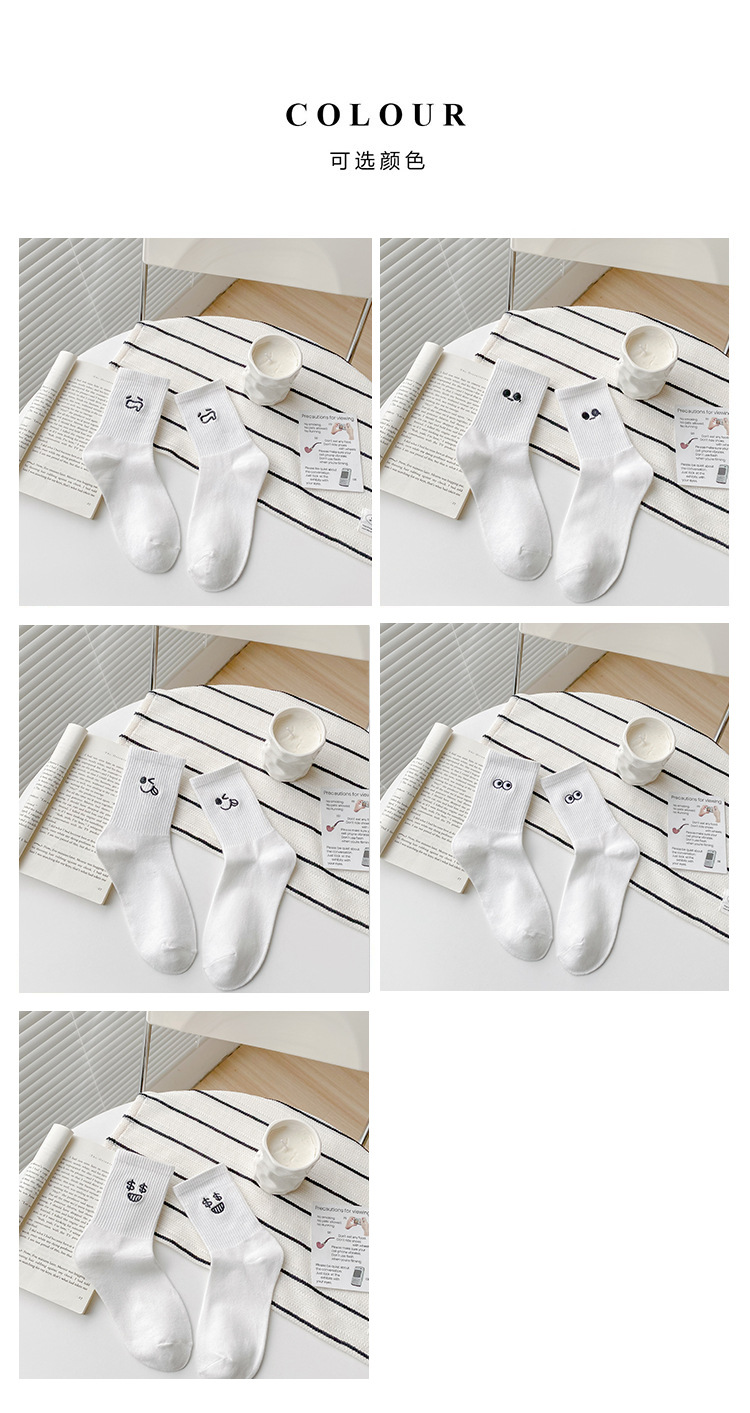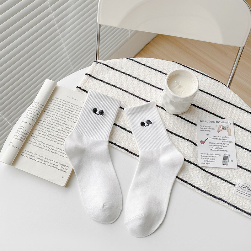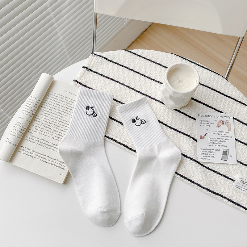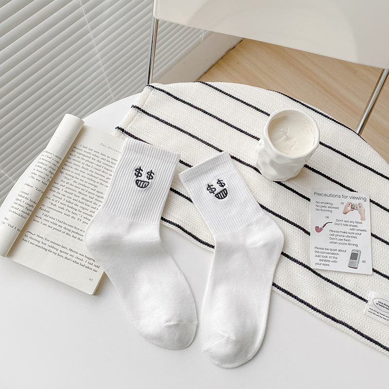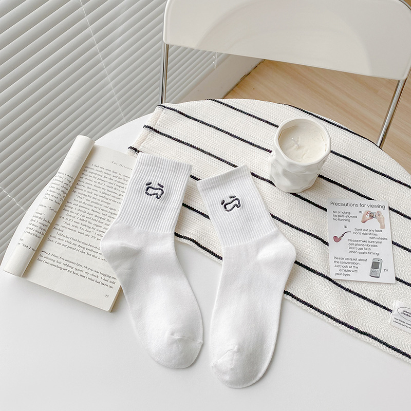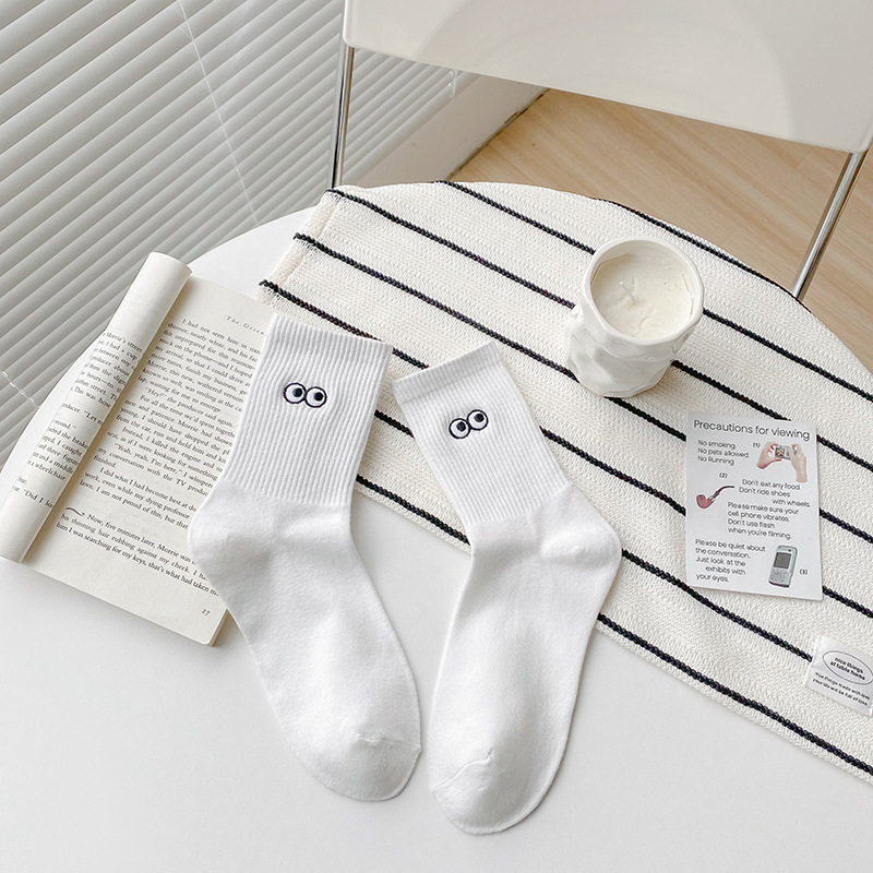 재미있는 자수 양말 어린이 가을과 겨울 높은 고무 가닥 중간 튜브 양말 메쉬 적외선 착용 연인 양말 흰색 끈 스타킹