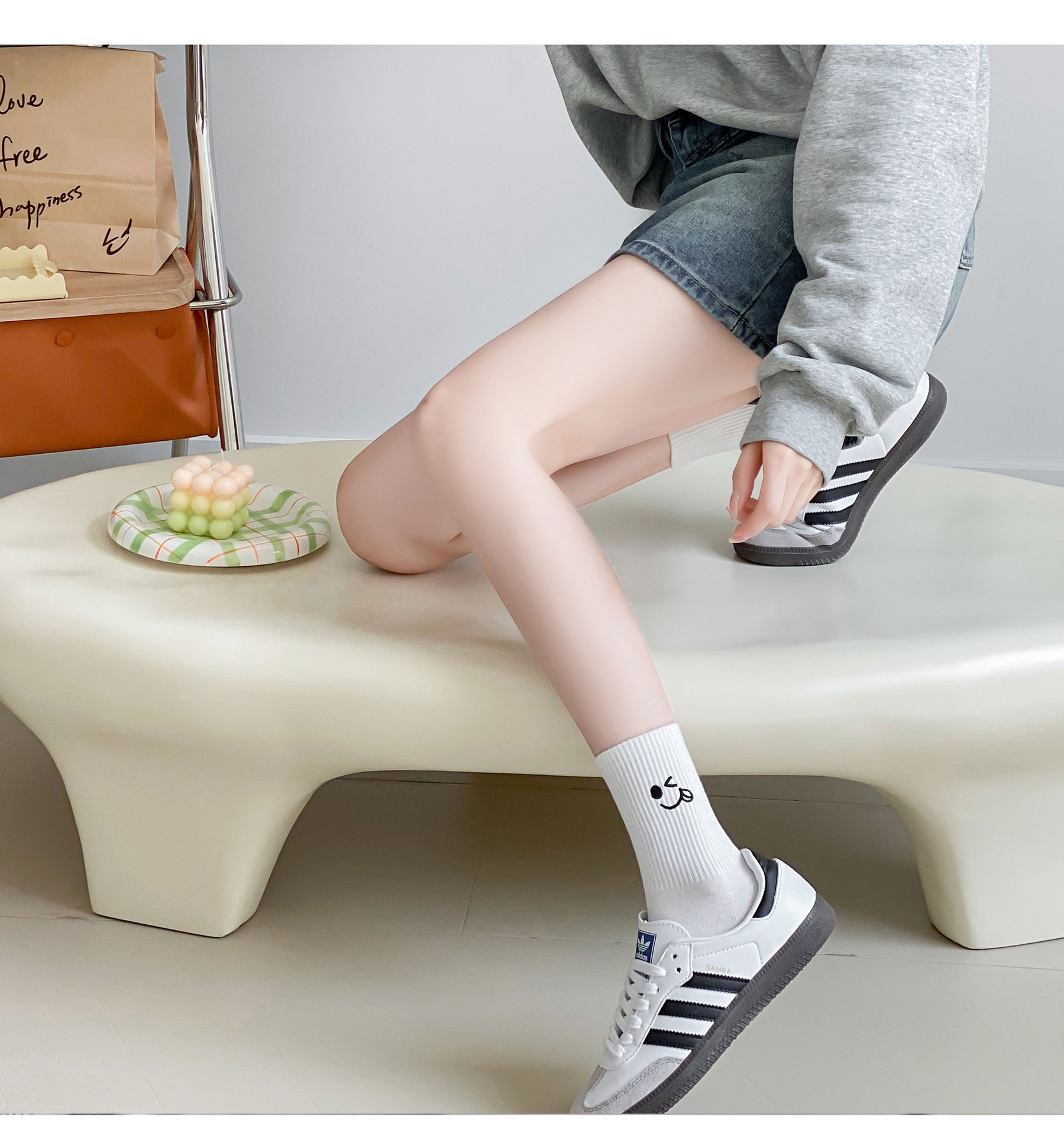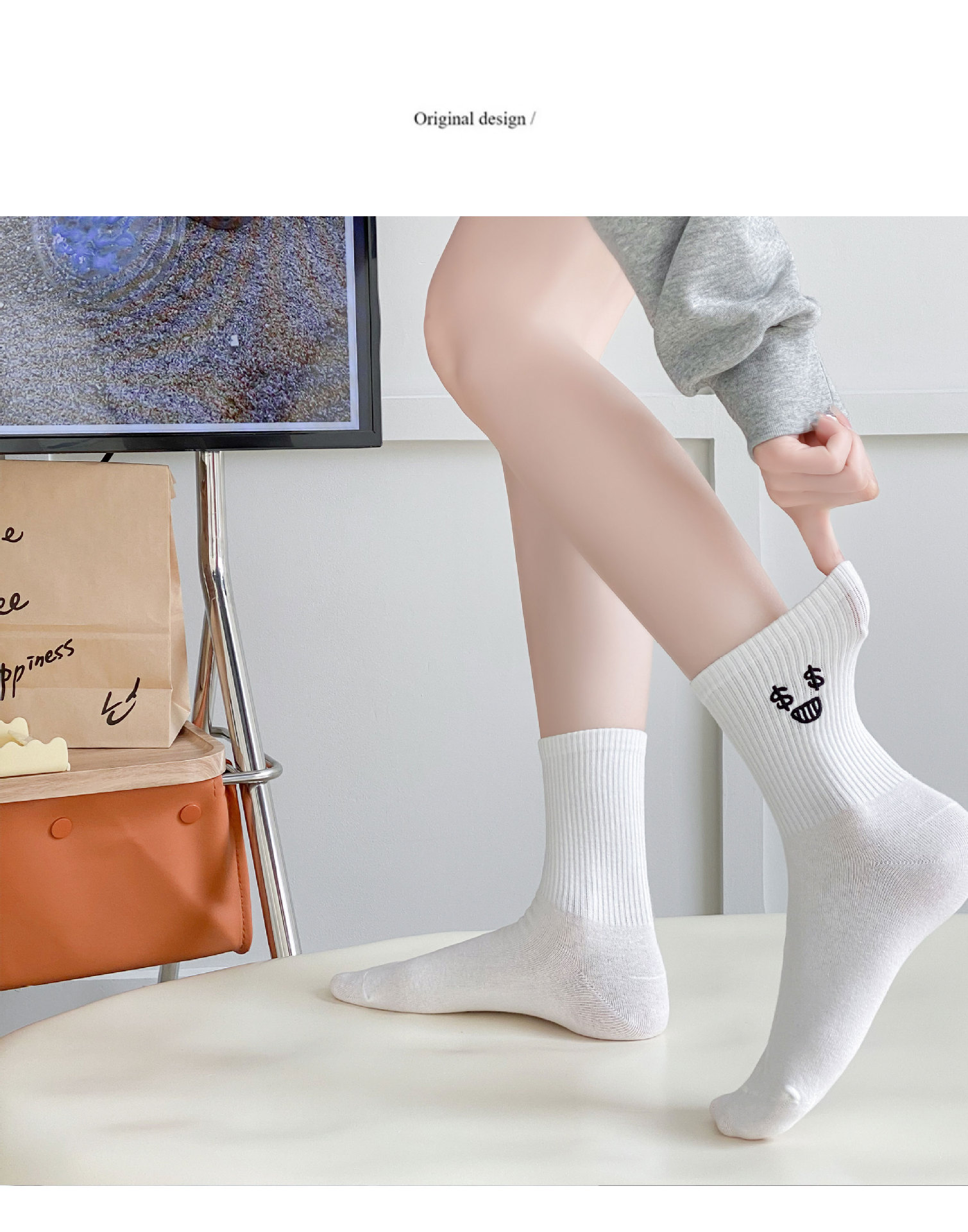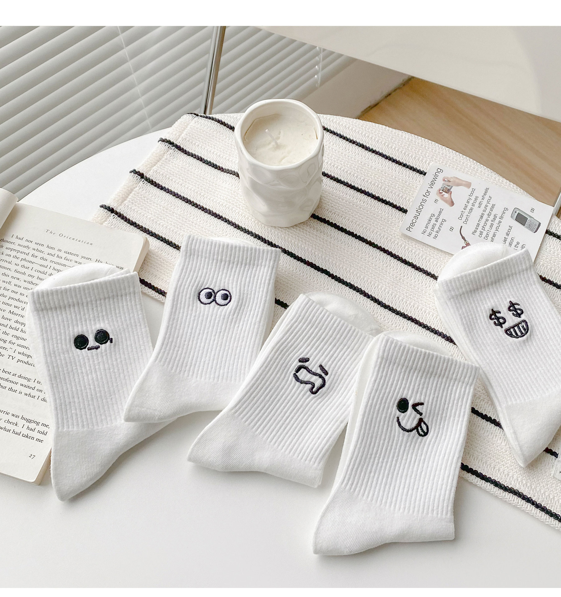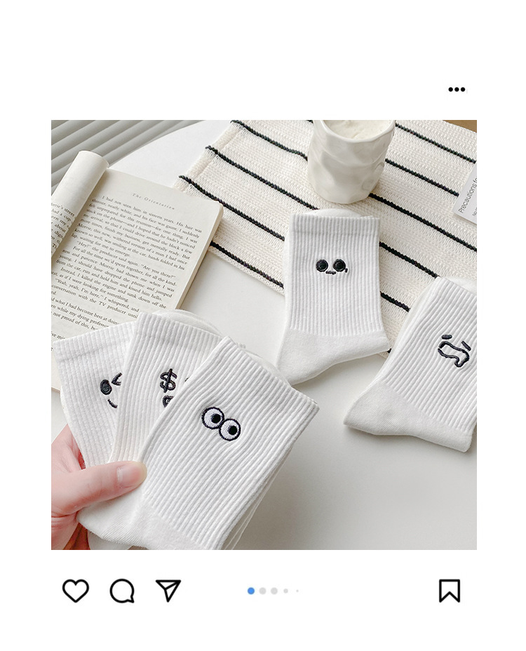 재미있는 자수 양말 어린이 가을과 겨울 높은 고무 가닥 중간 튜브 양말 메쉬 적외선 착용 연인 양말 흰색 끈 스타킹