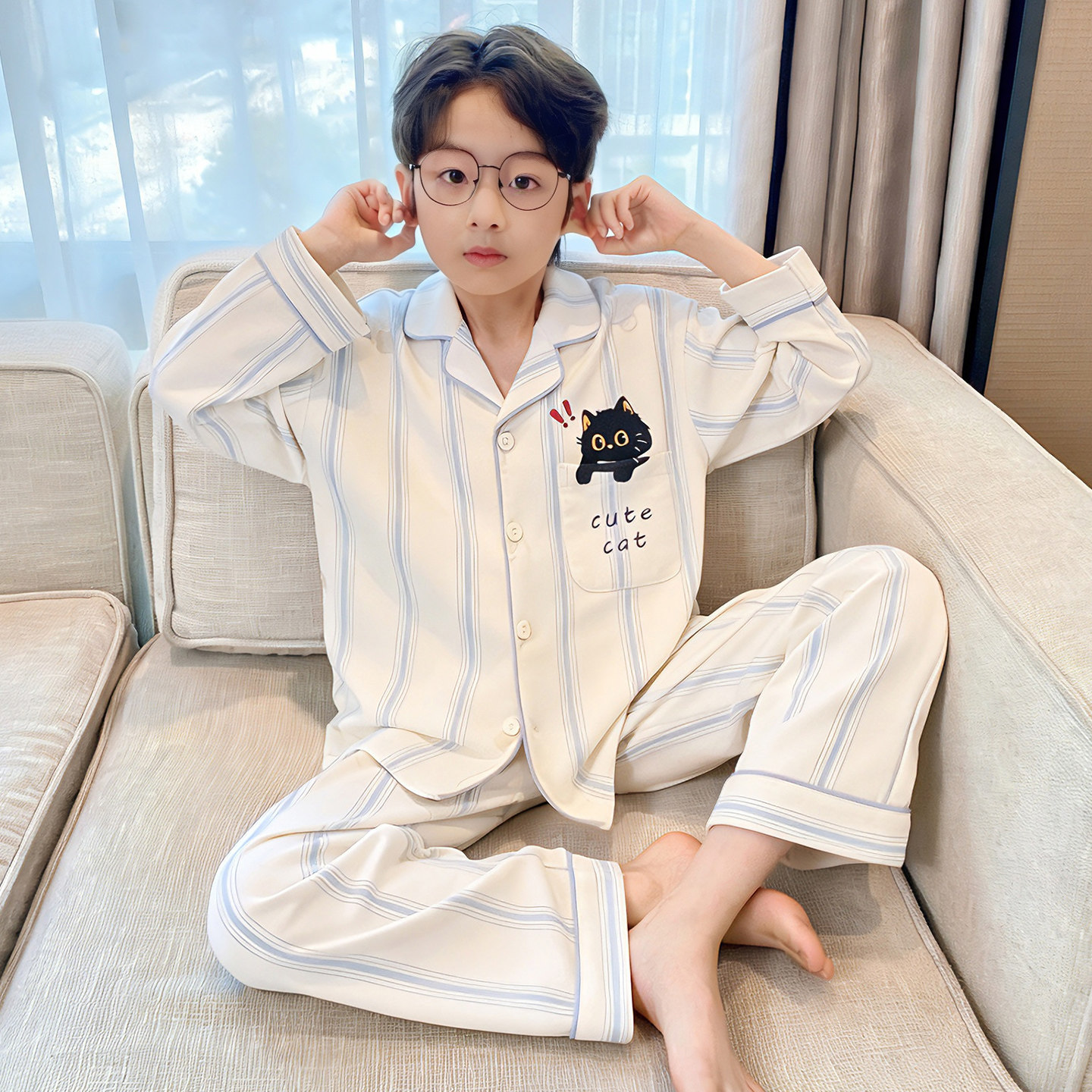 남아 잠옷 봄, 가을 순면 긴팔 아동 및 청소년용 홈웨어 여름 모델 2026년 신상품