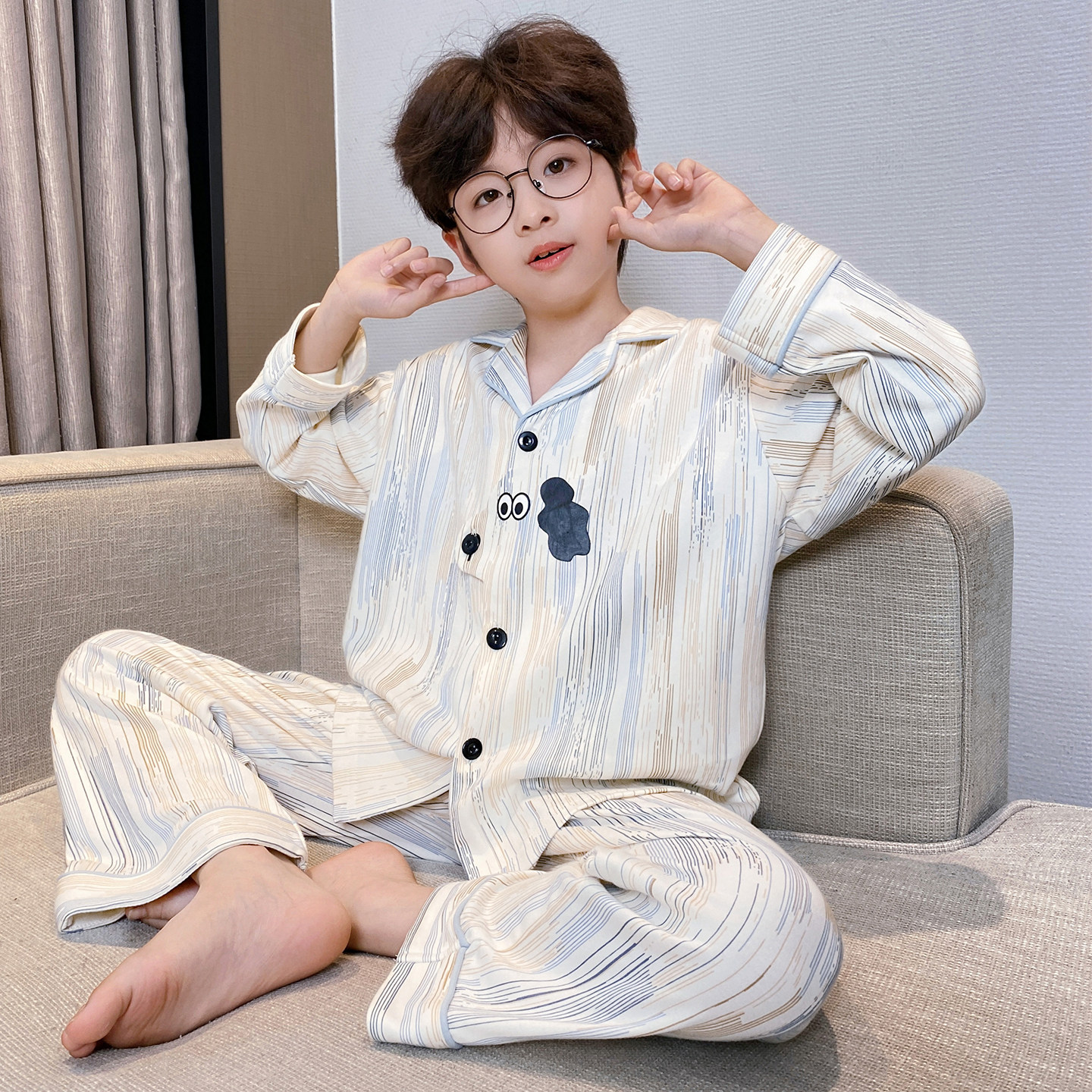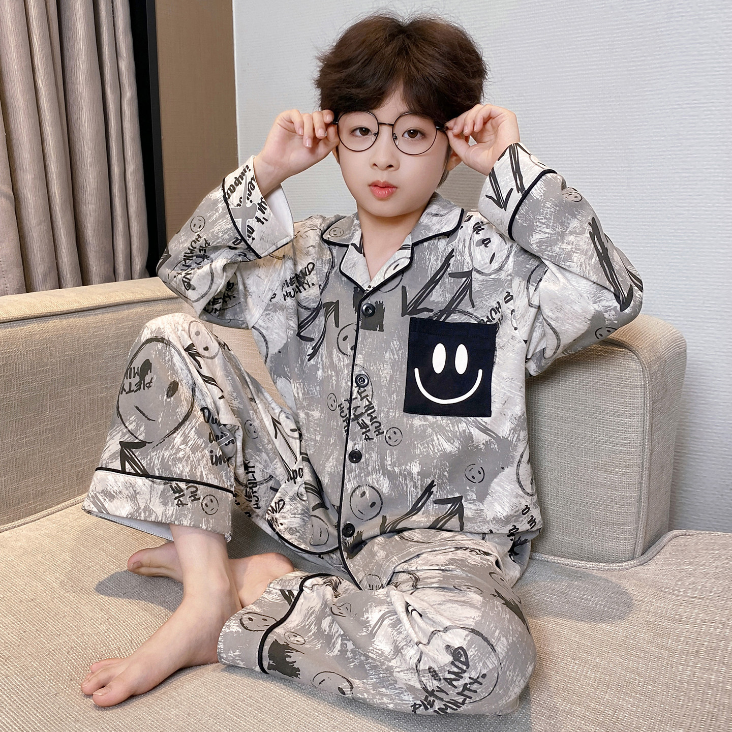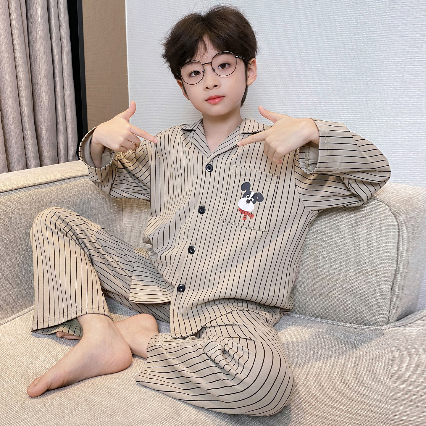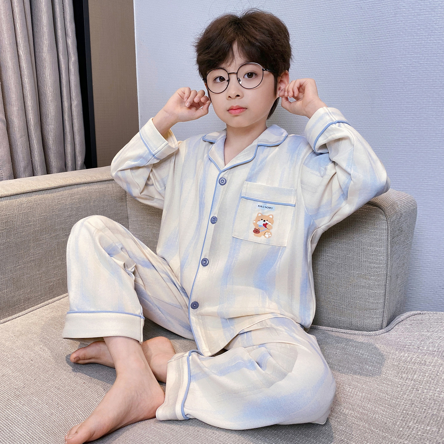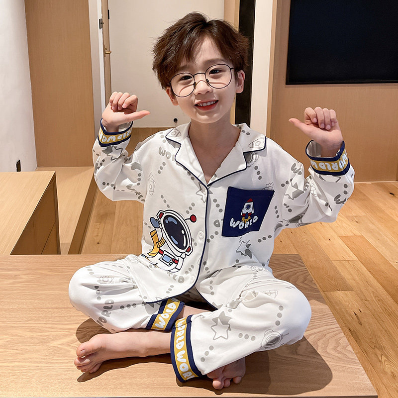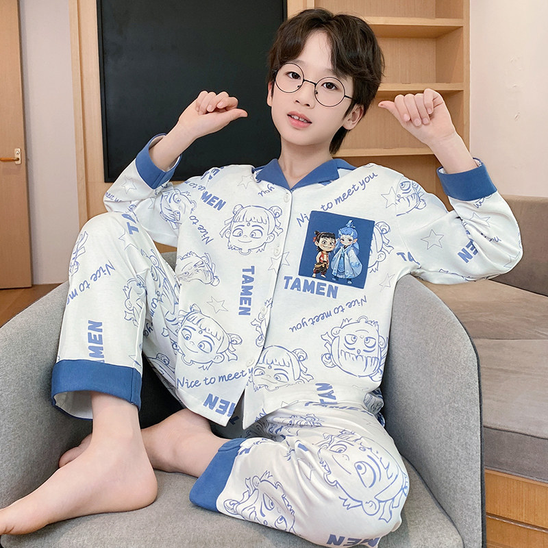 남아 잠옷 봄, 가을 순면 긴팔 아동 및 청소년용 홈웨어 여름 모델 2026년 신상품스토어 가기