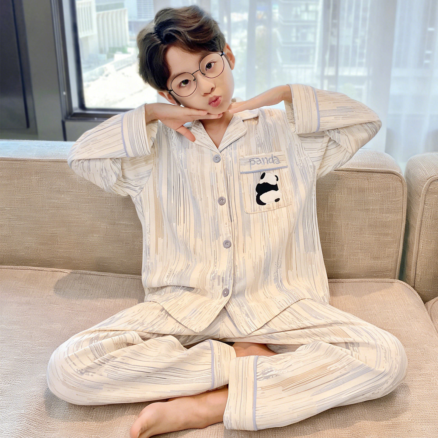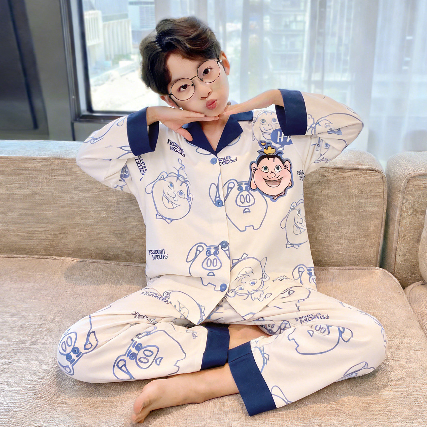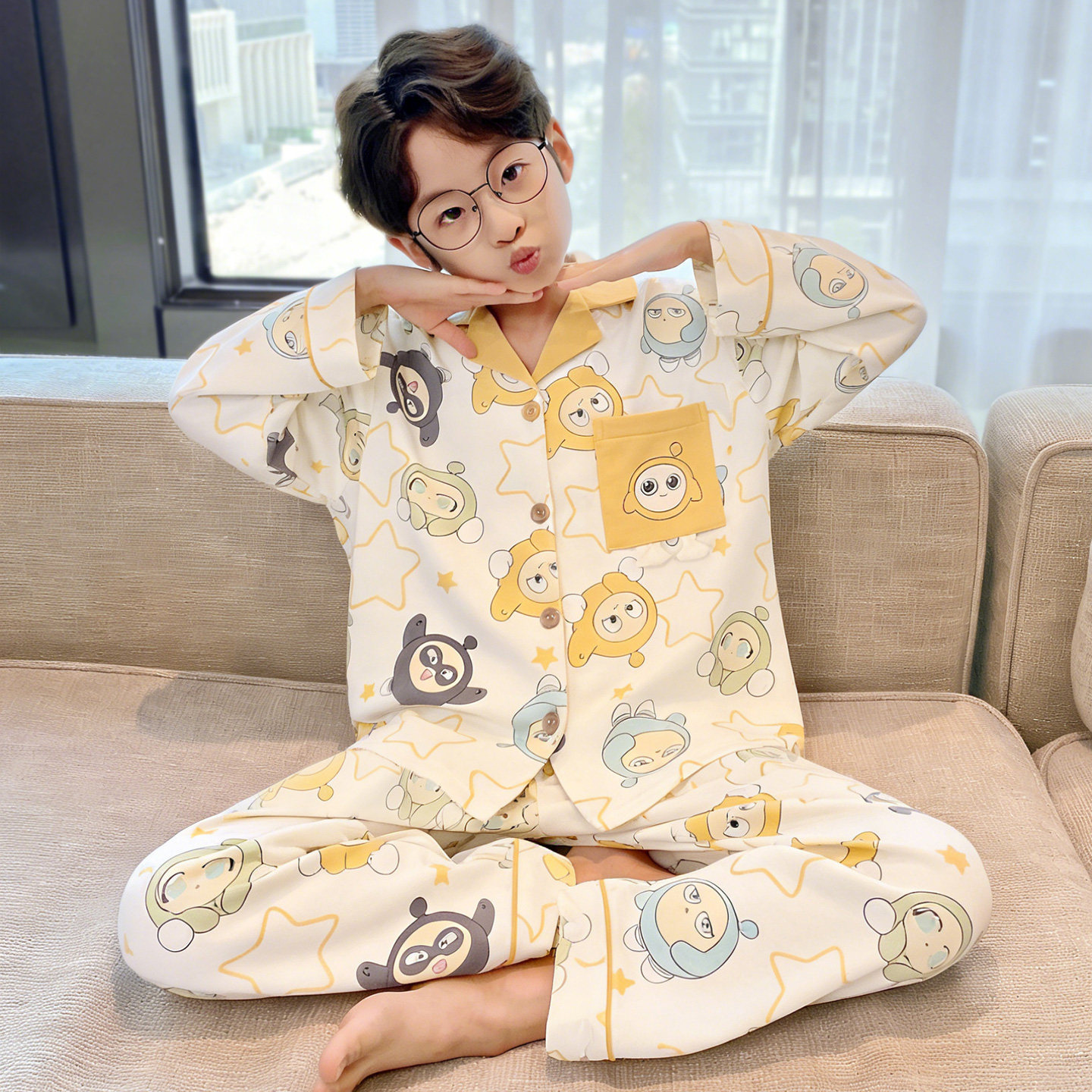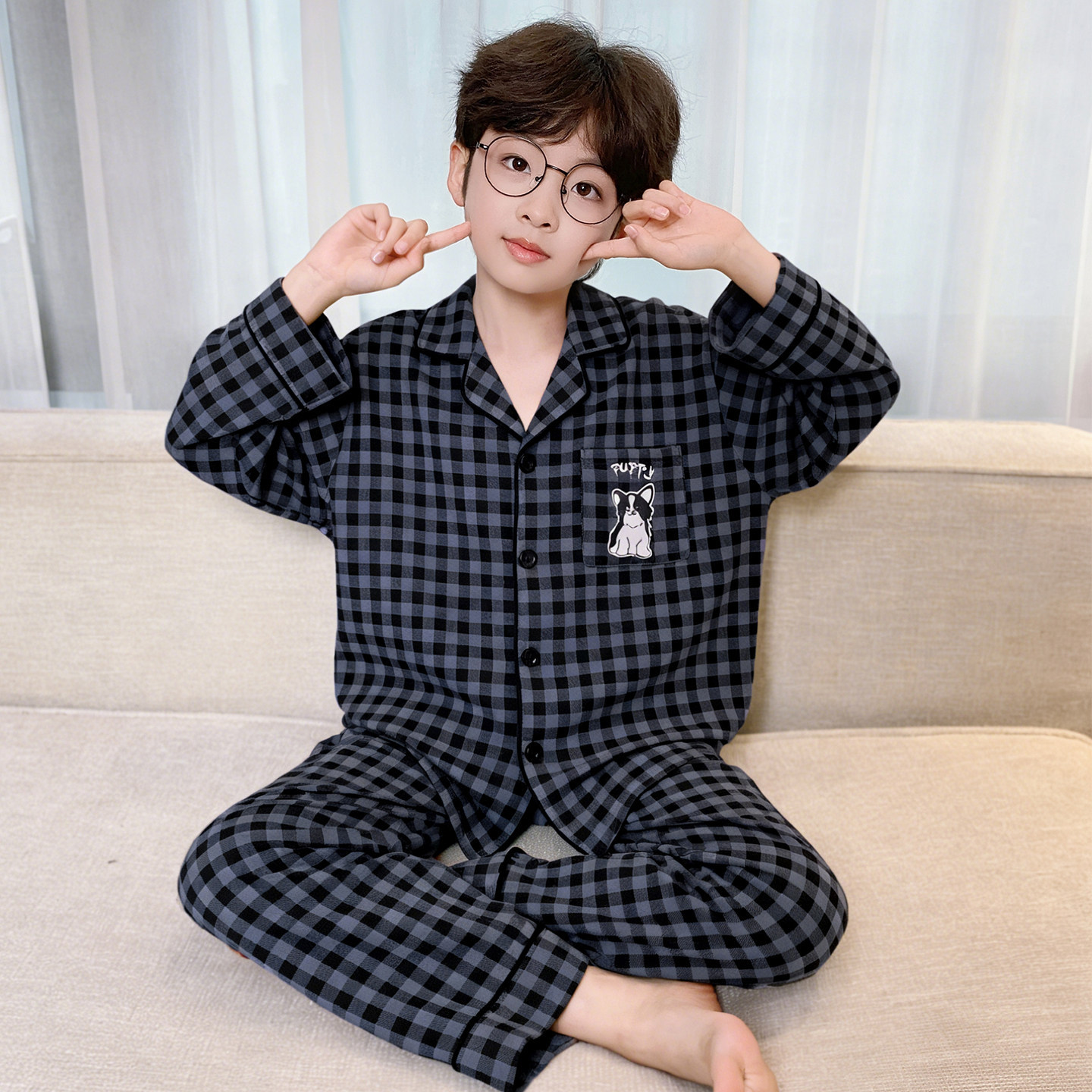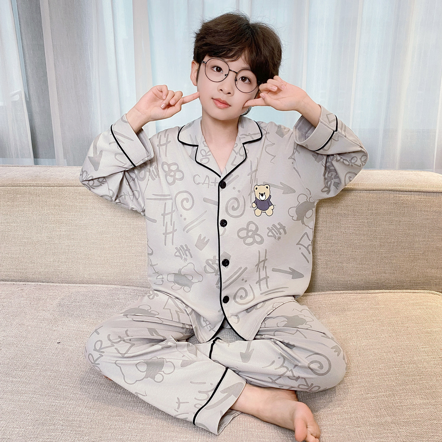 남아 잠옷 봄, 가을 순면 긴팔 아동 및 청소년용 홈웨어 여름 모델 2026년 신상품스토어 가기